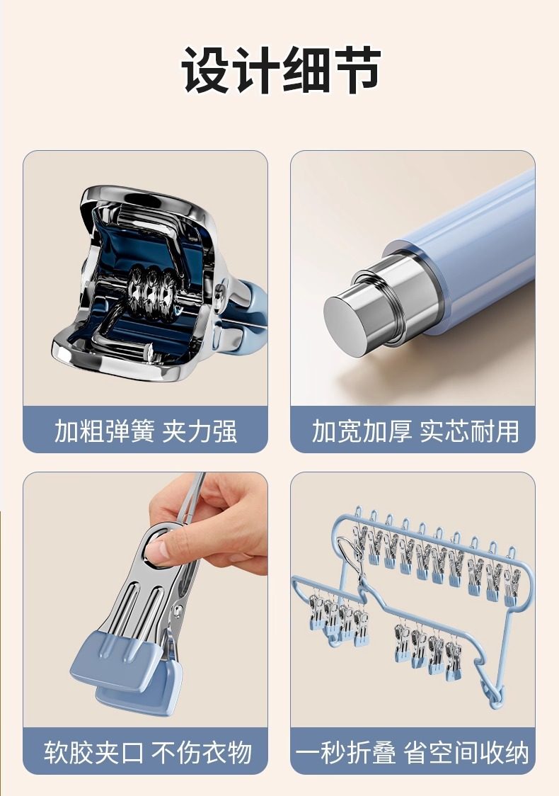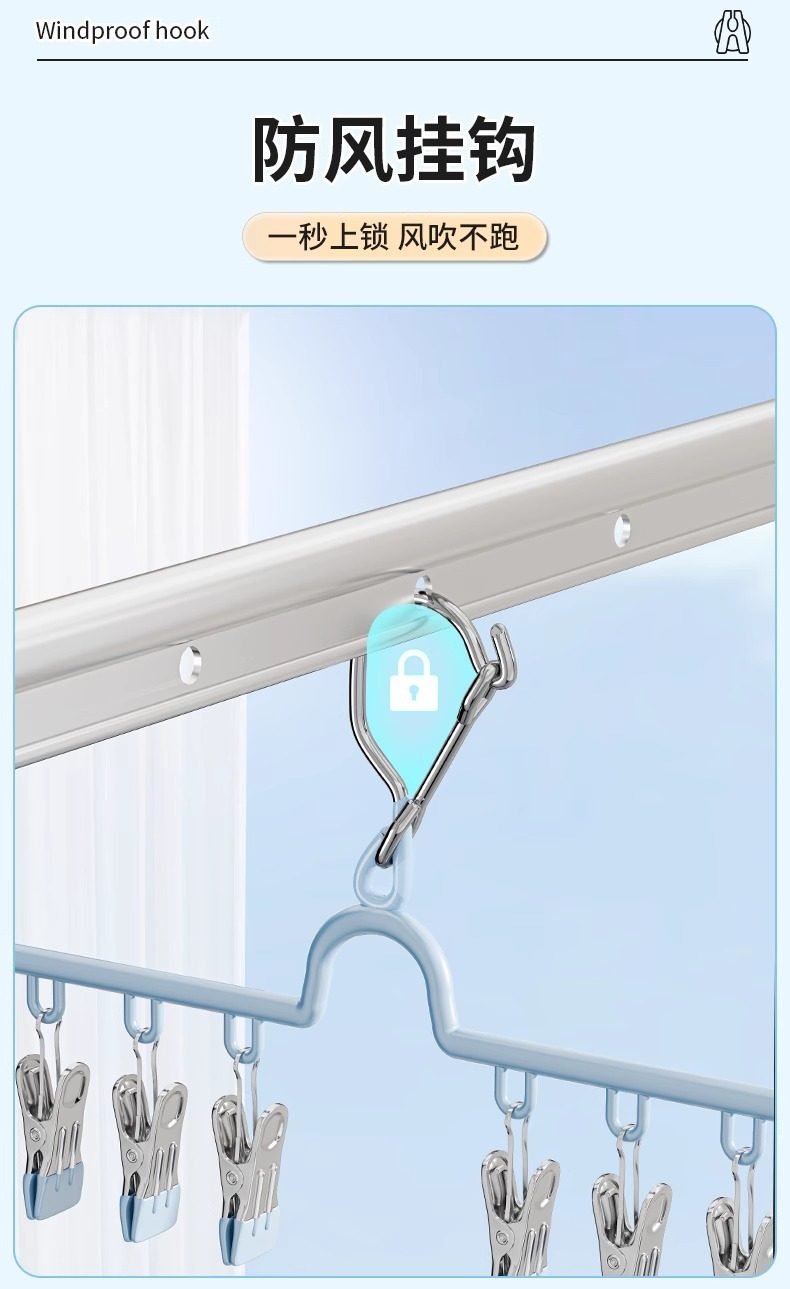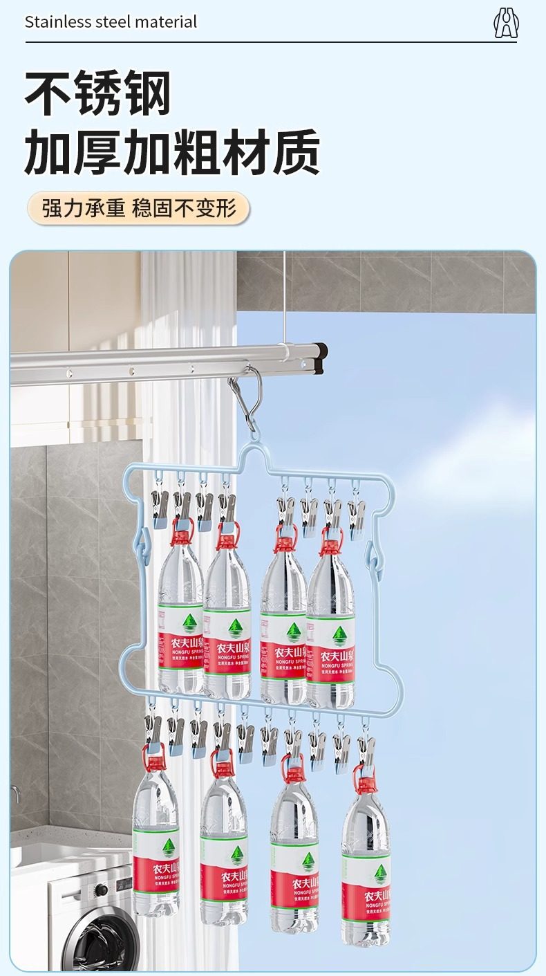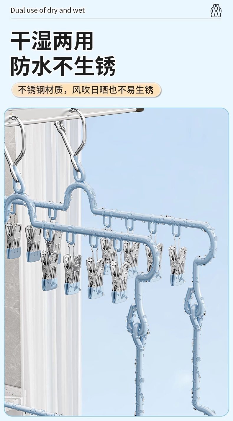 Sock Drying Rack Folding Clothes Hanger with Multiple Clips Stainless Steel Drying Rack for Underwear Multifunctional Balcony Sock Clip