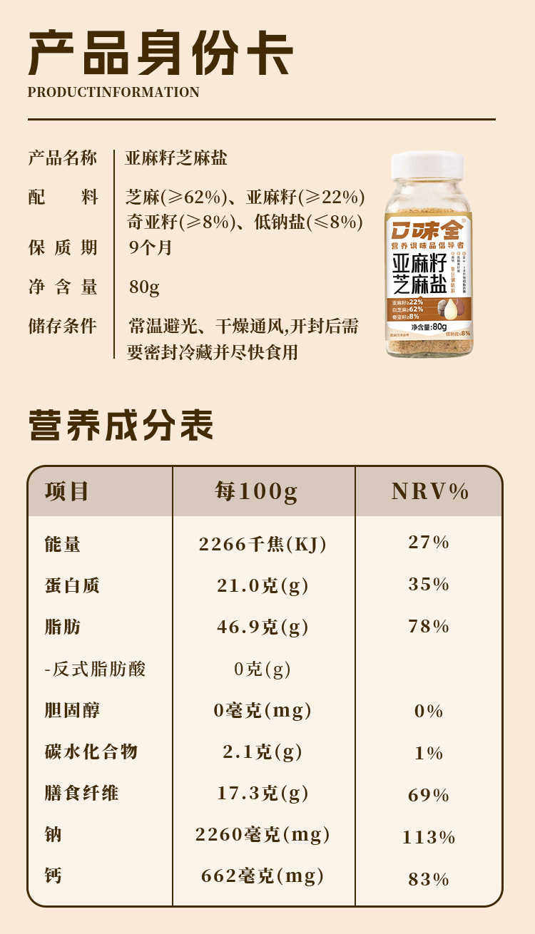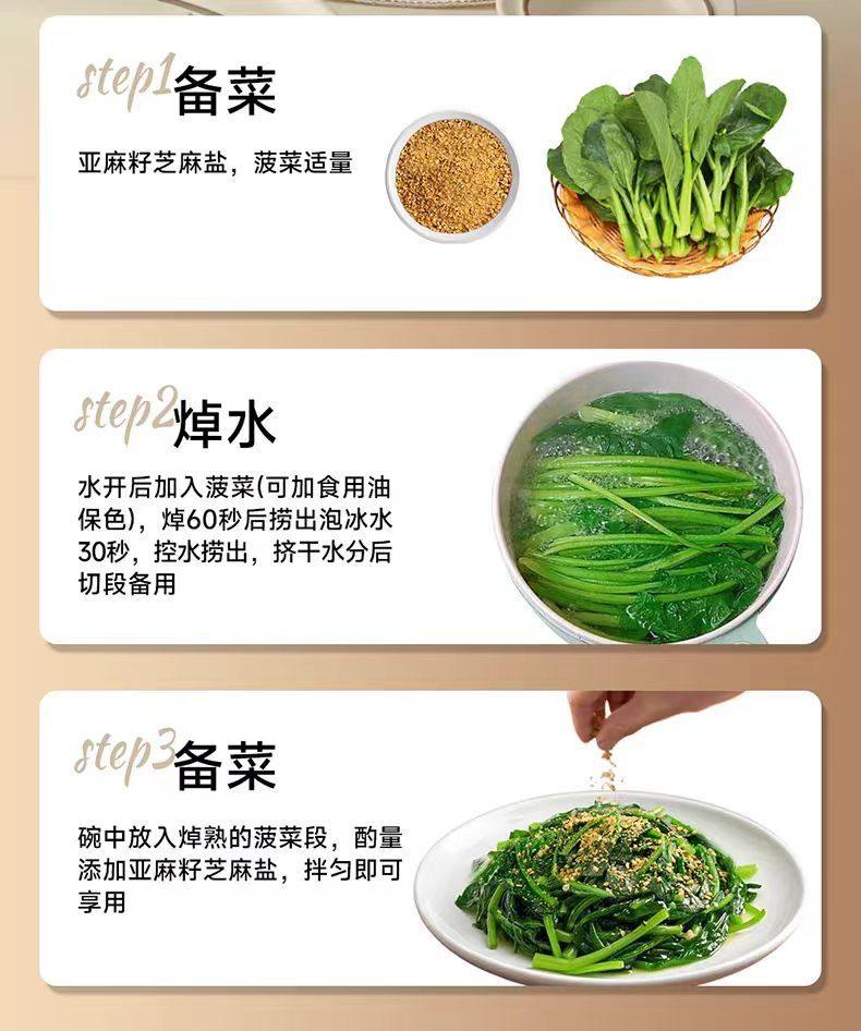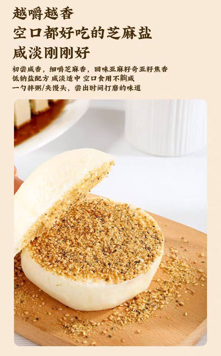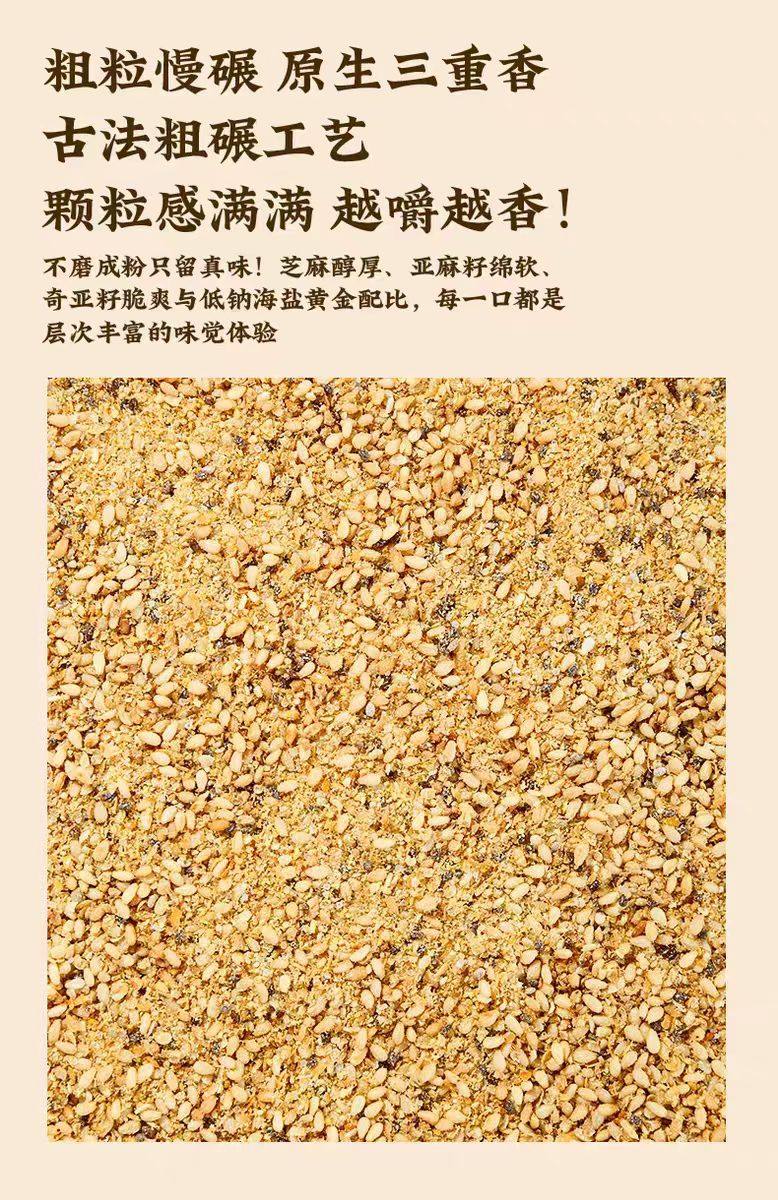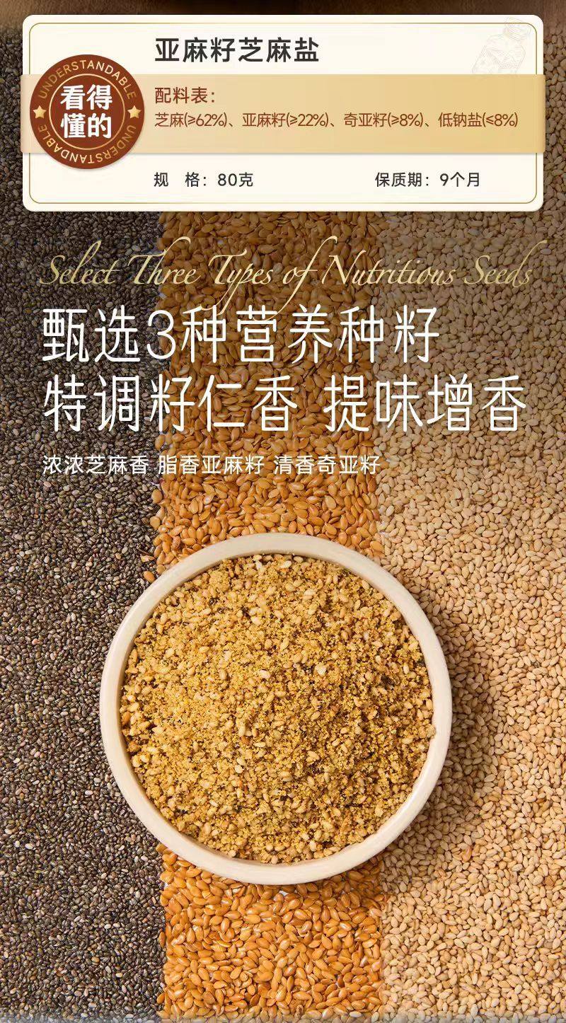 | Specifications | Flaxseed sesame salt 80g*1 bottle,Flaxseed sesame salt 80g*2 bottles,Flaxseed sesame salt 80g*3 bottles |