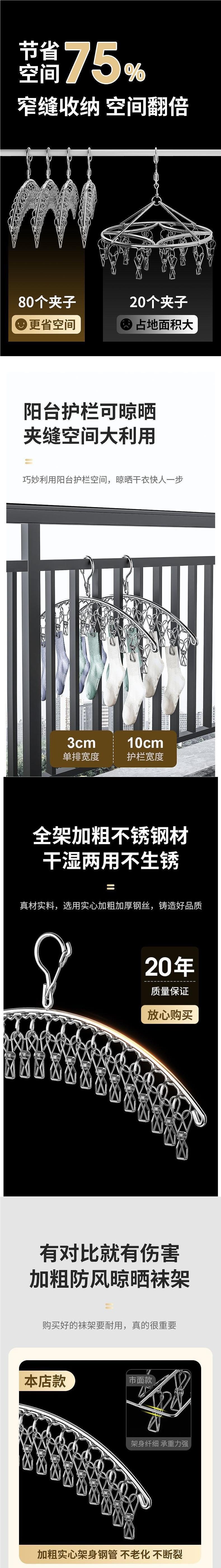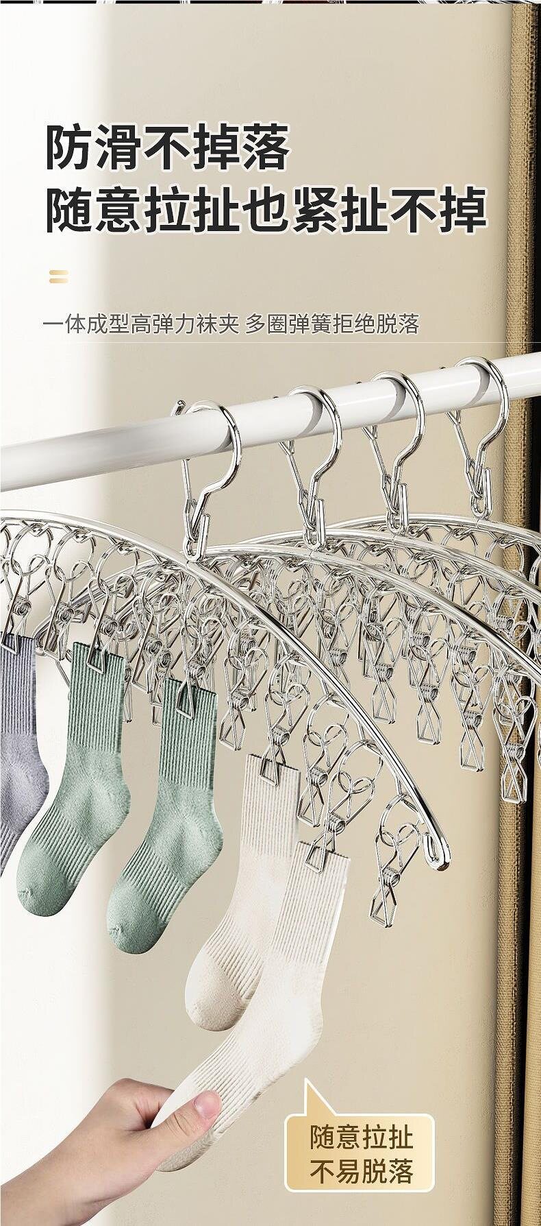 Sock Drying Rack with Multiple Clips, Stainless Steel Clothes Drying Rack, Storage Rack for Balcony Dormitory, Clothes and Underwear Drying Rack