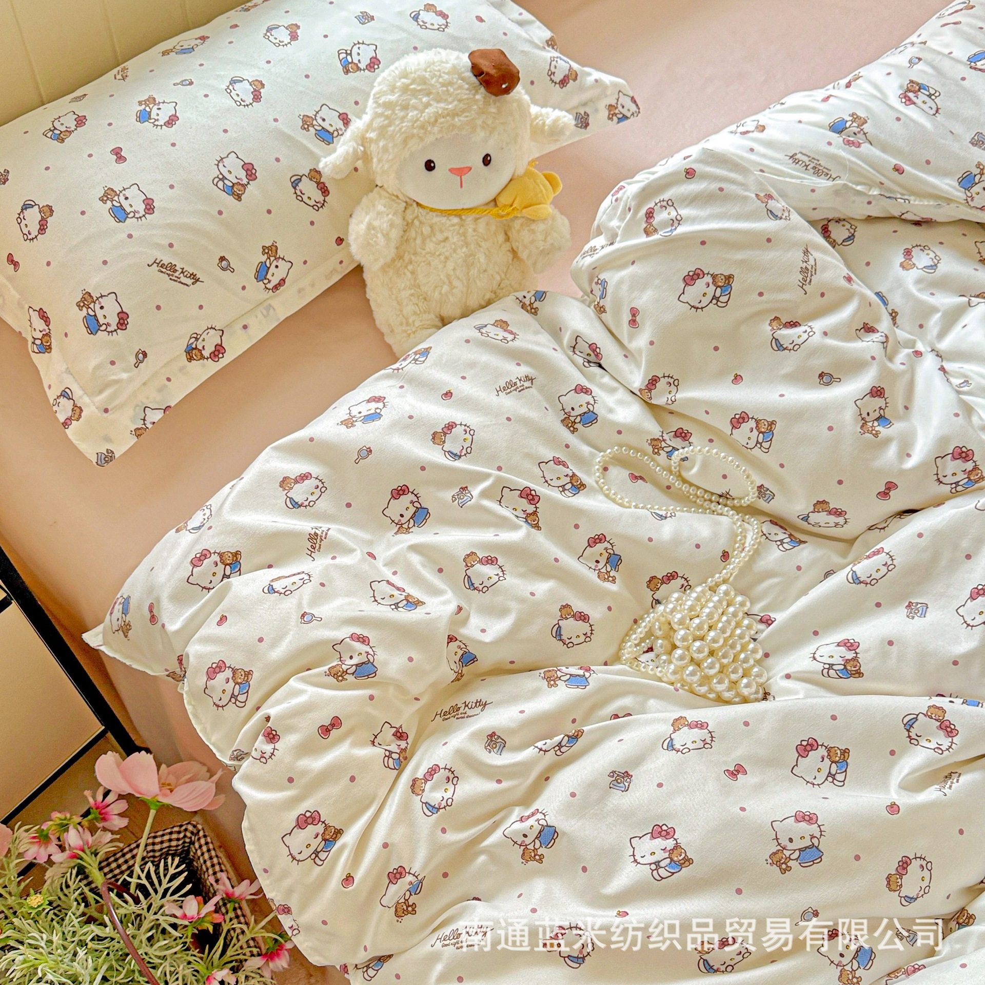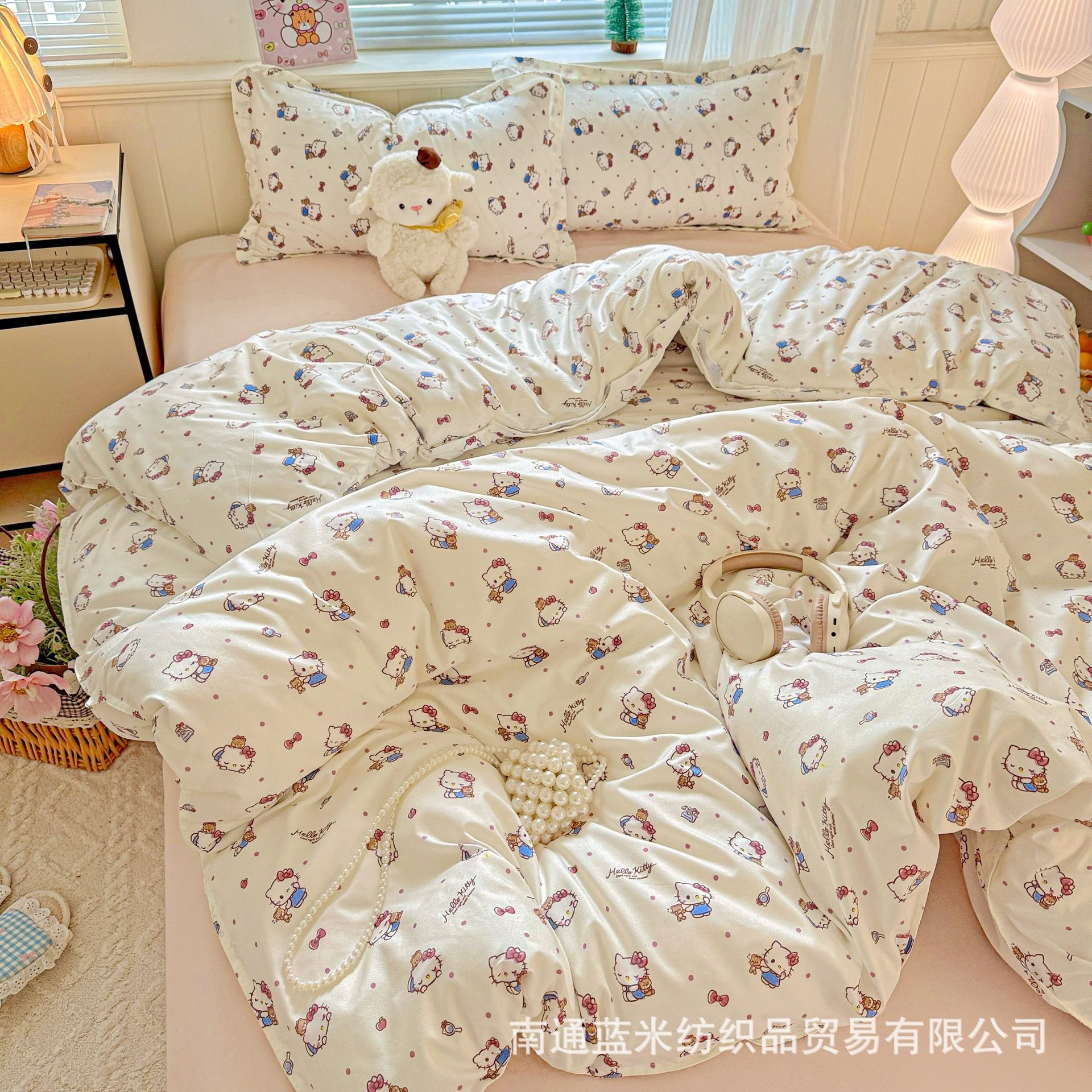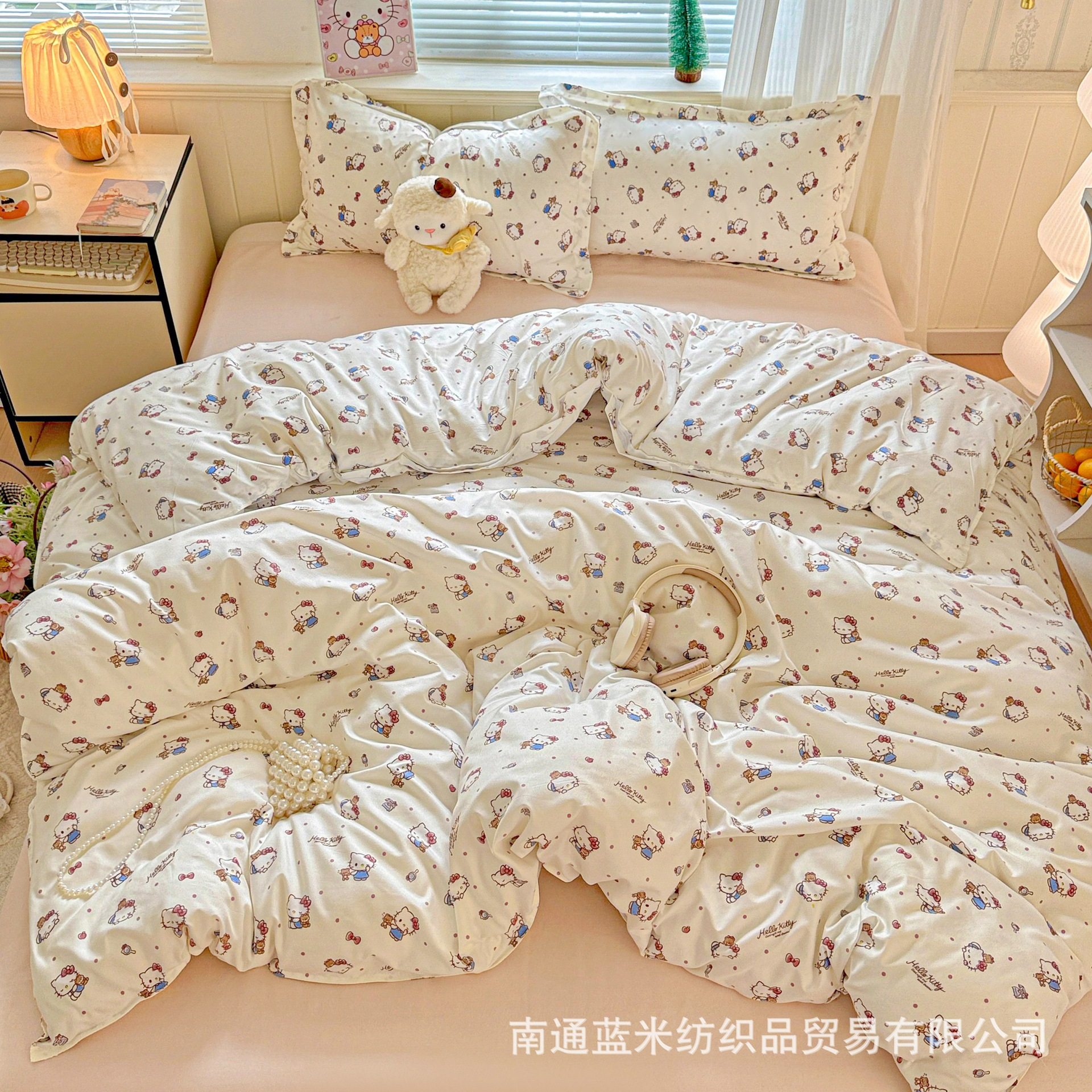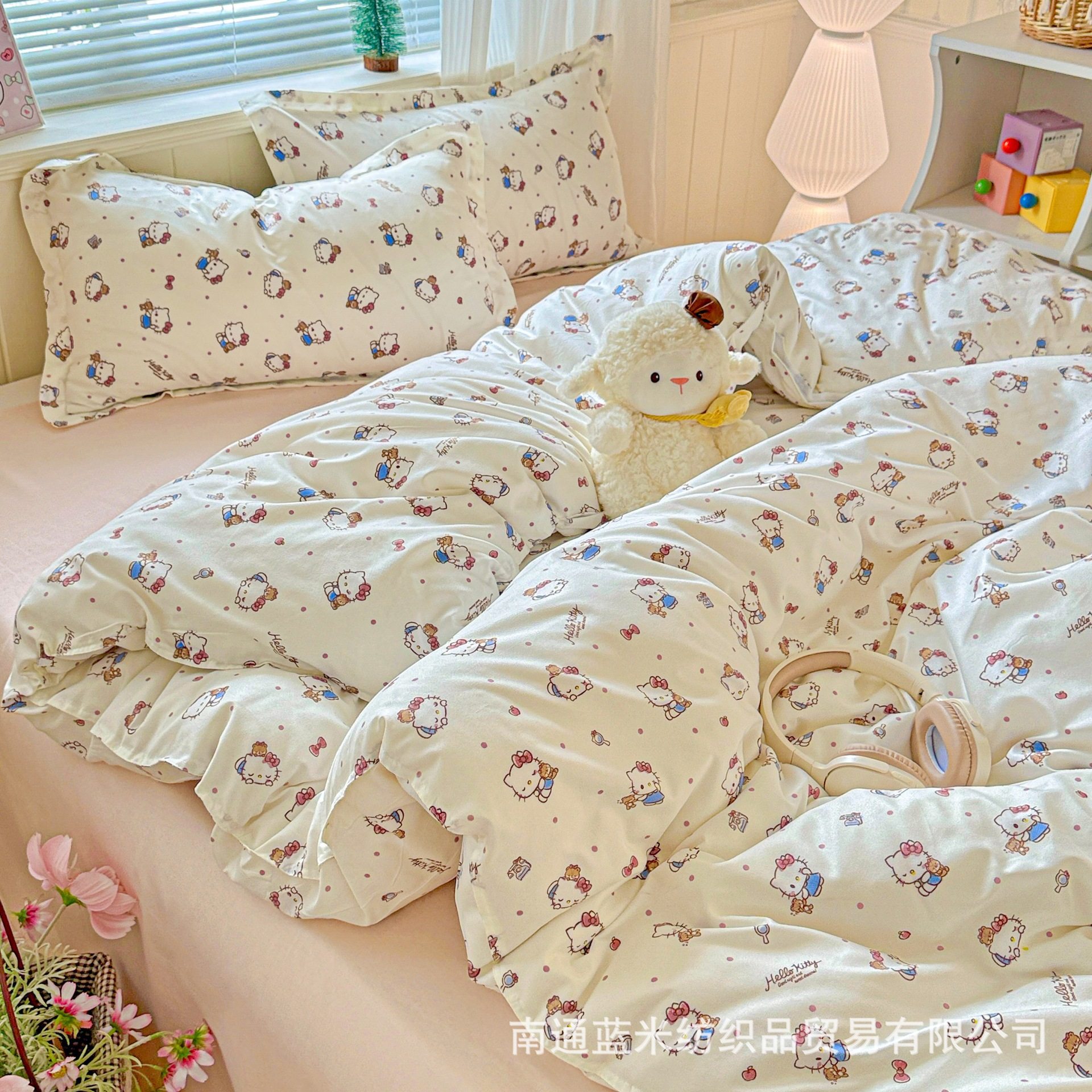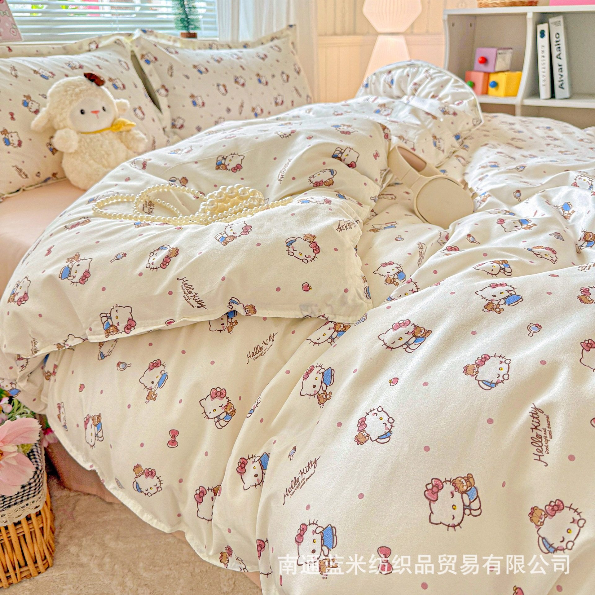 Katie and Bear ~ Cross-Border Export Home Four-Piece Set, Washed and Brushed Dormitory Three-Piece Set, Exclusively Available on Amazon