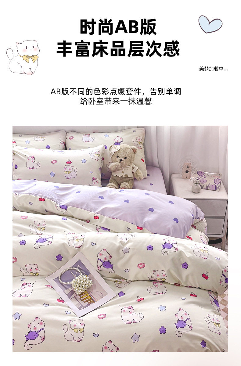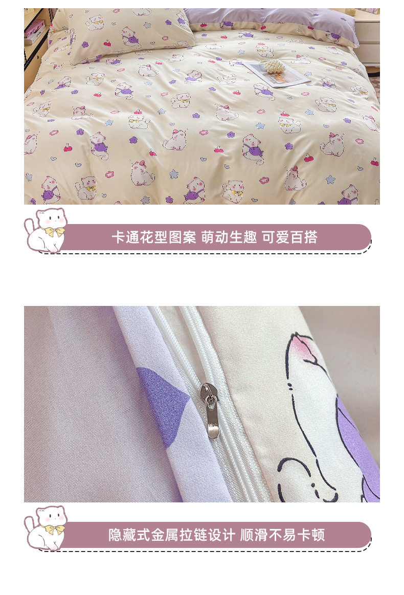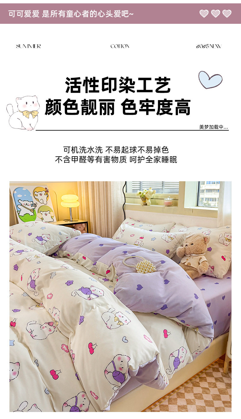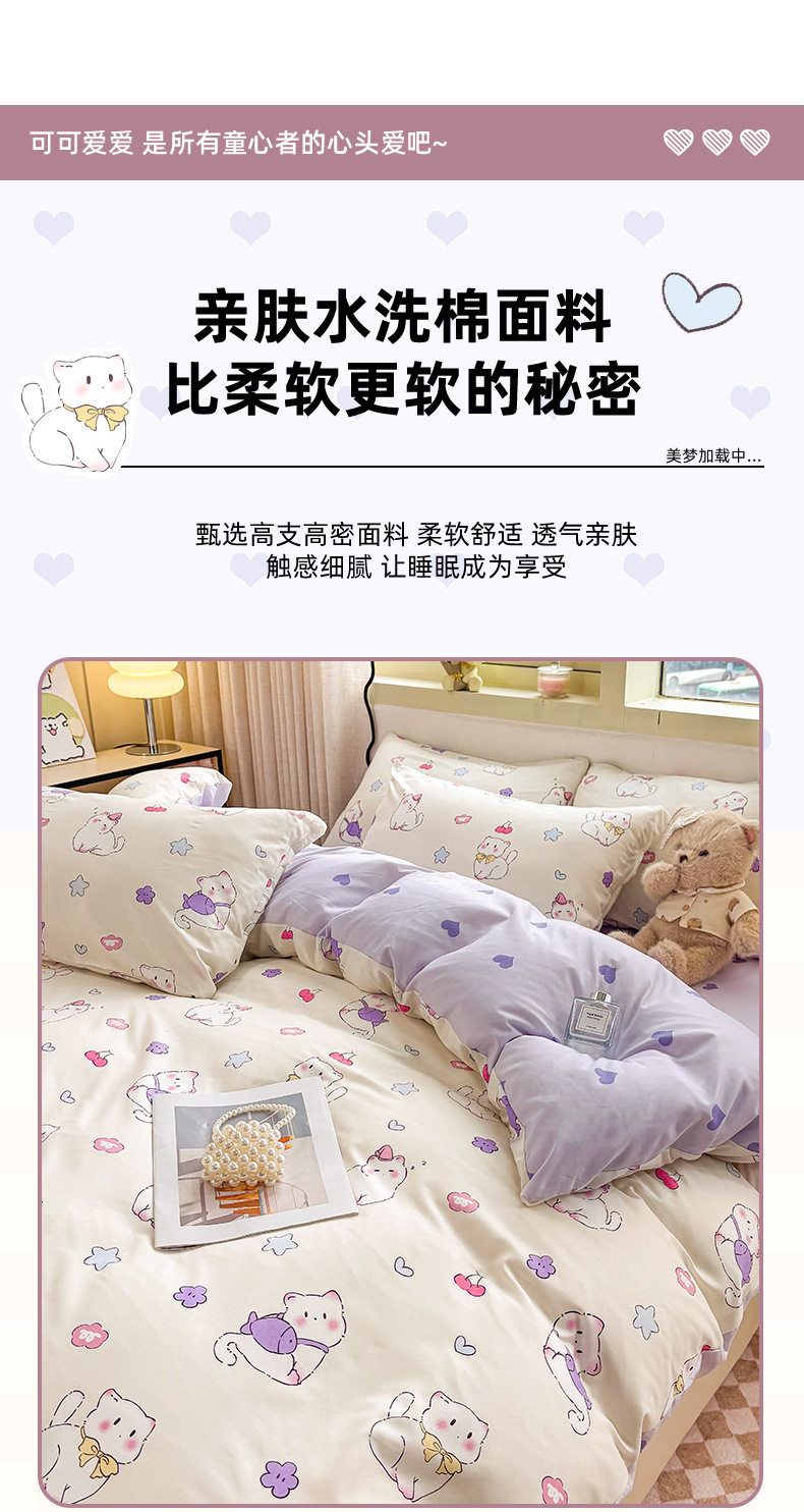 | Size specifications | Single piece quilt cover [1.5*2.0m],Single piece quilt cover [1.8*2.2m],Single piece quilt cover [2.0*2.3m],1.2m bed [three-piece set],1.5m bed [four-piece set],1.8m bed [four-piece set],2.0m bed [four-piece set] |