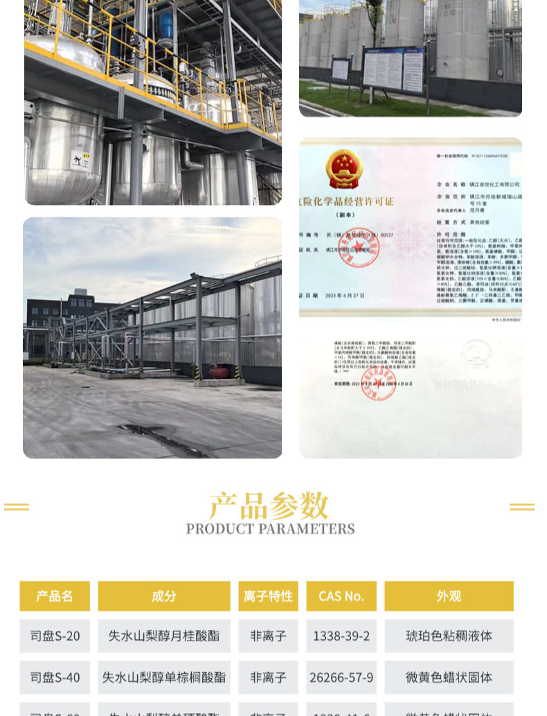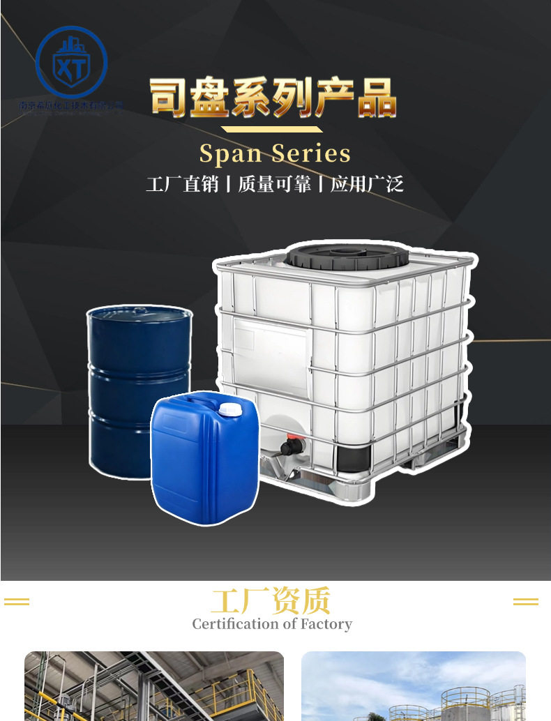 Industrial Grade Span S20/S40/S60/S80/S85 Non-Ionic Emulsifier Cosmetics Printing Coating Plastic