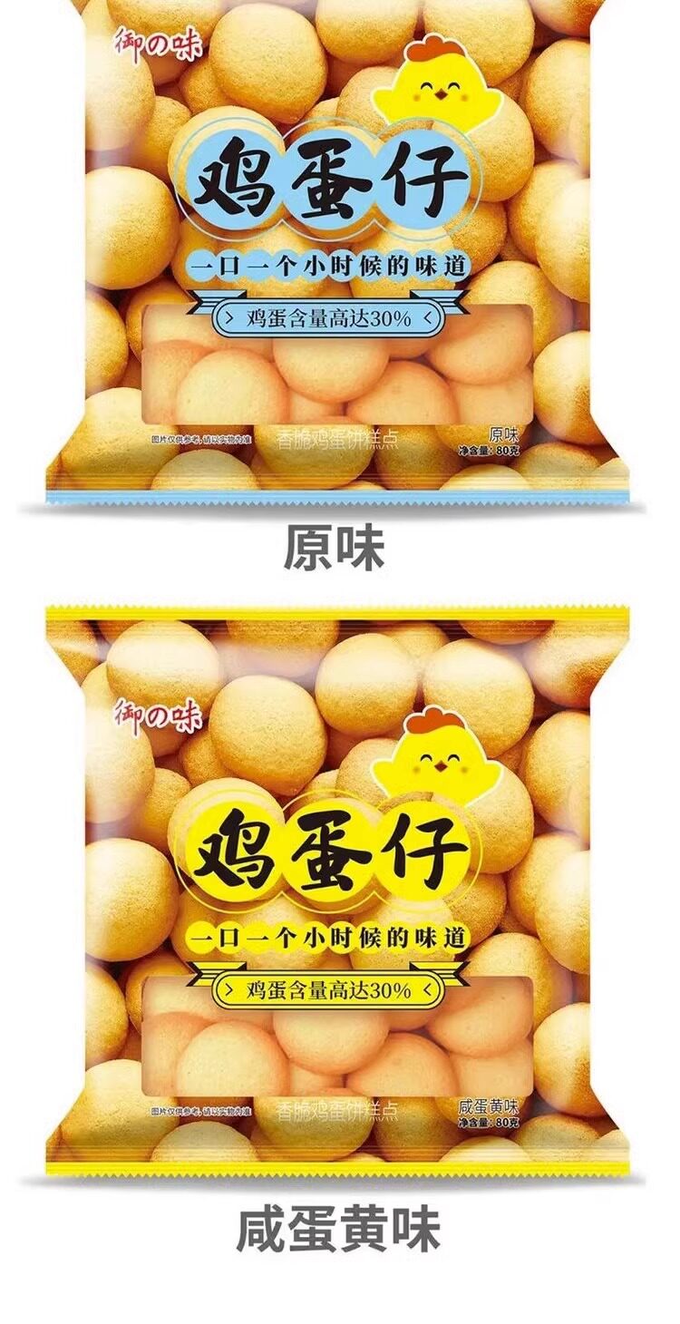 | Packaging specifications | Egg waffles salted egg yolk 80g/bag,Egg waffles original flavor 80g/bag |