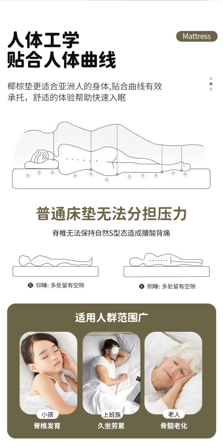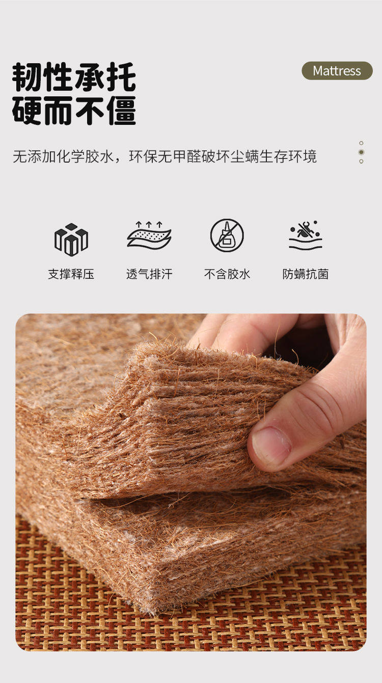 Winter and Summer Dual-Purpose Coconut Palm Mattress, Summer Rattan Mat, Double-Sided Thickened Hard Cushion to Protect Vertebrae, Can Be Customized