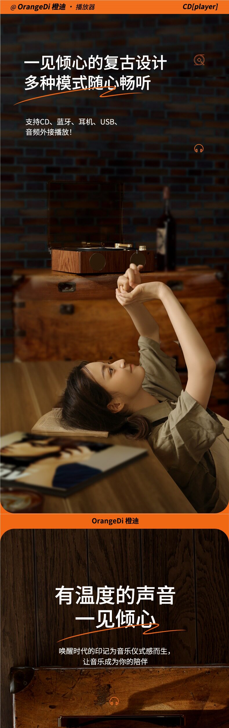 Wholesale Orange Di K100 Retro Cd Player Home All-In-One Album Player Portable Audio Disc Fever-Grade Singing