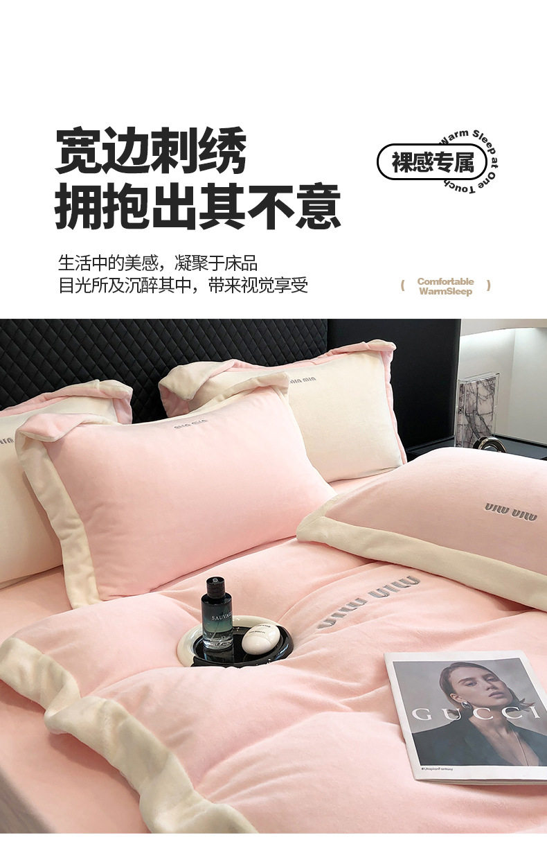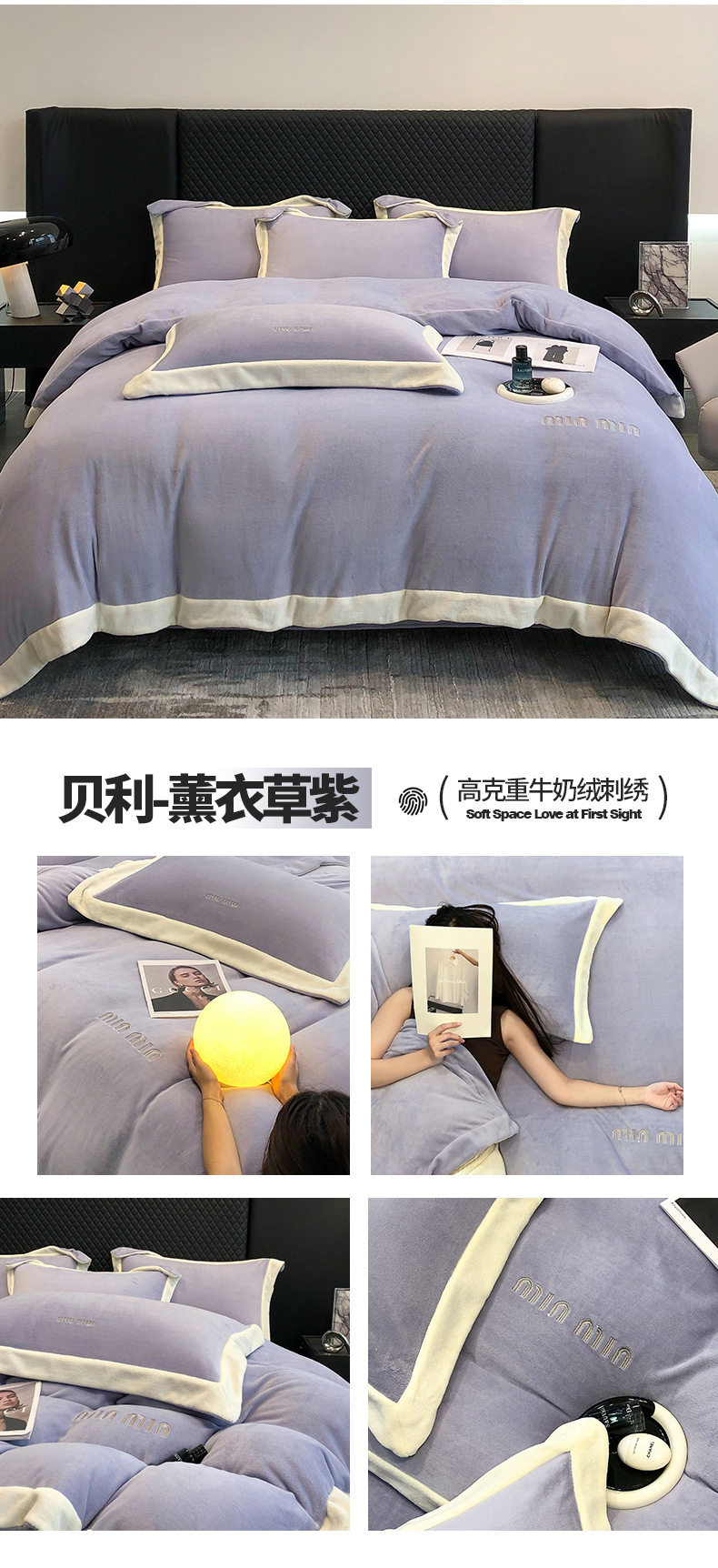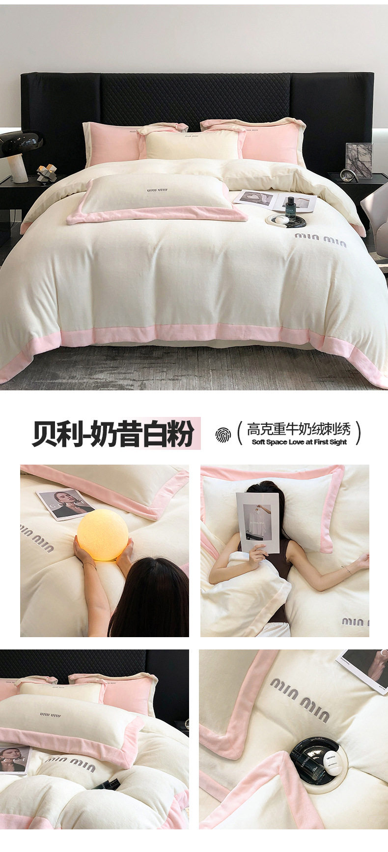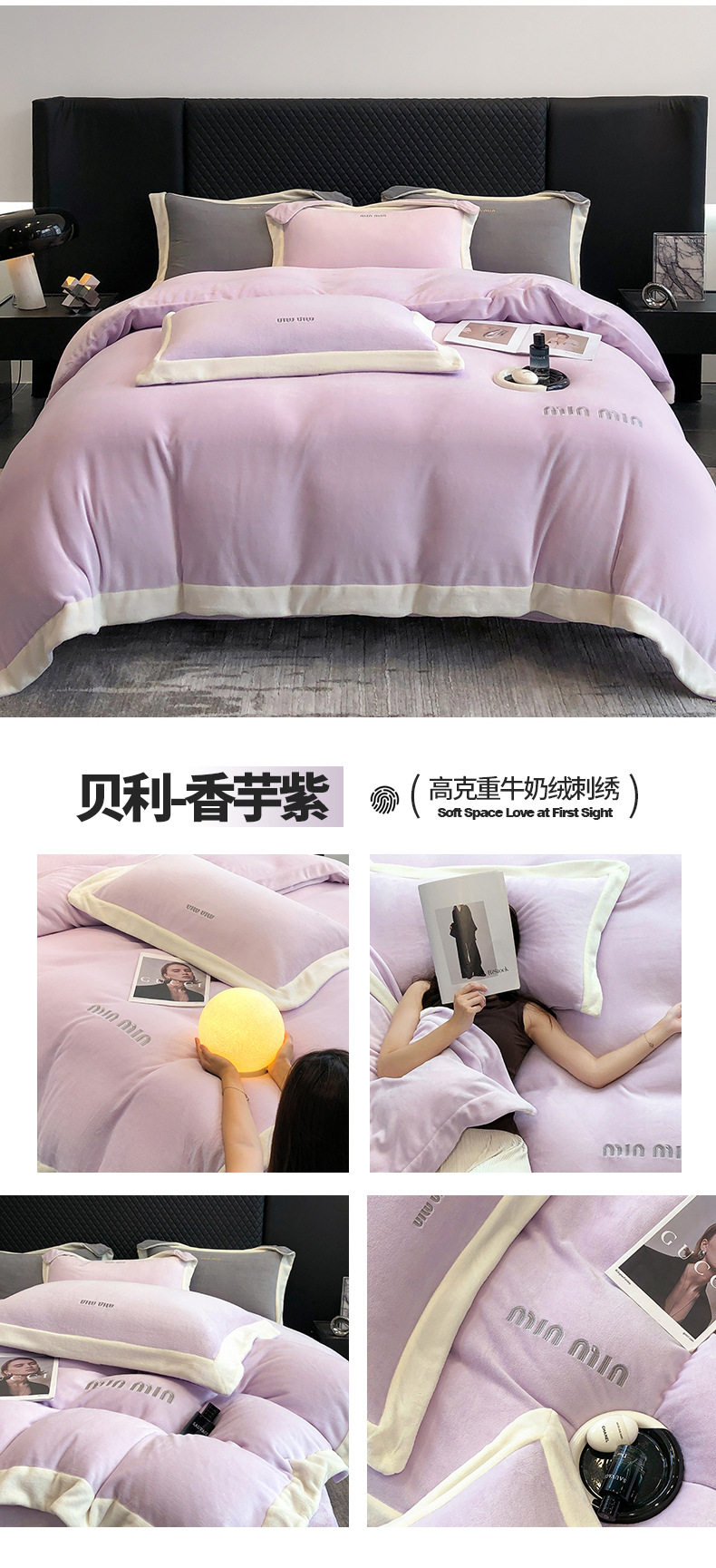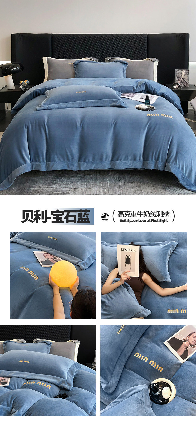 Simple and Luxurious Winter Thickeneded Embroidered Wide-Brimmed Milk Velvet Four-Piece Set with High Weight, Warm and Anti-Static Quilt Cover and Bed Sheetss