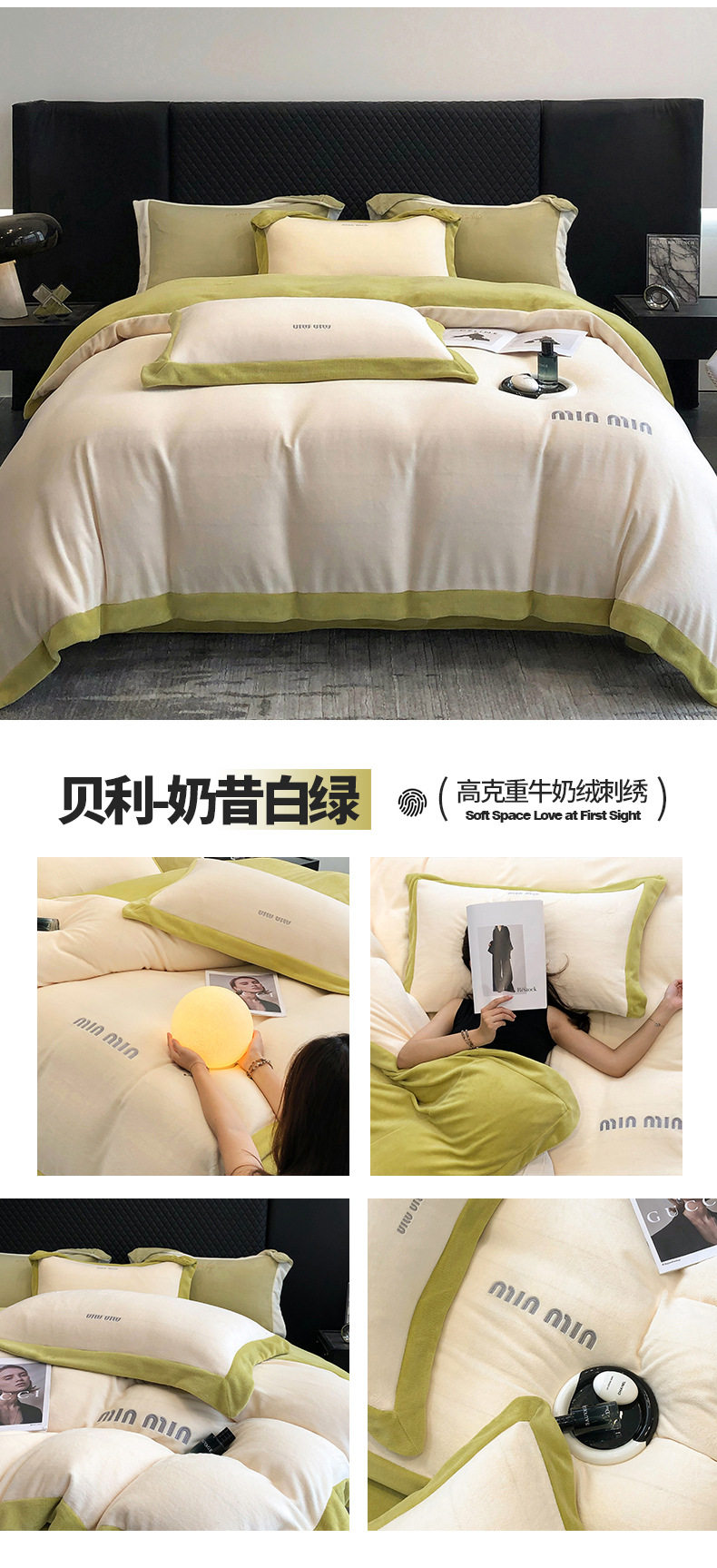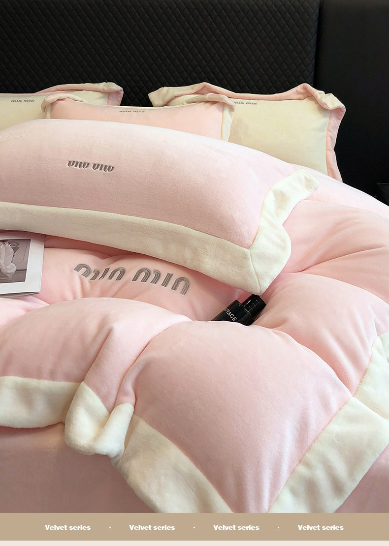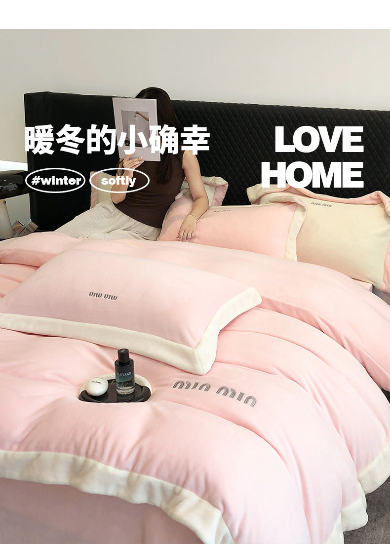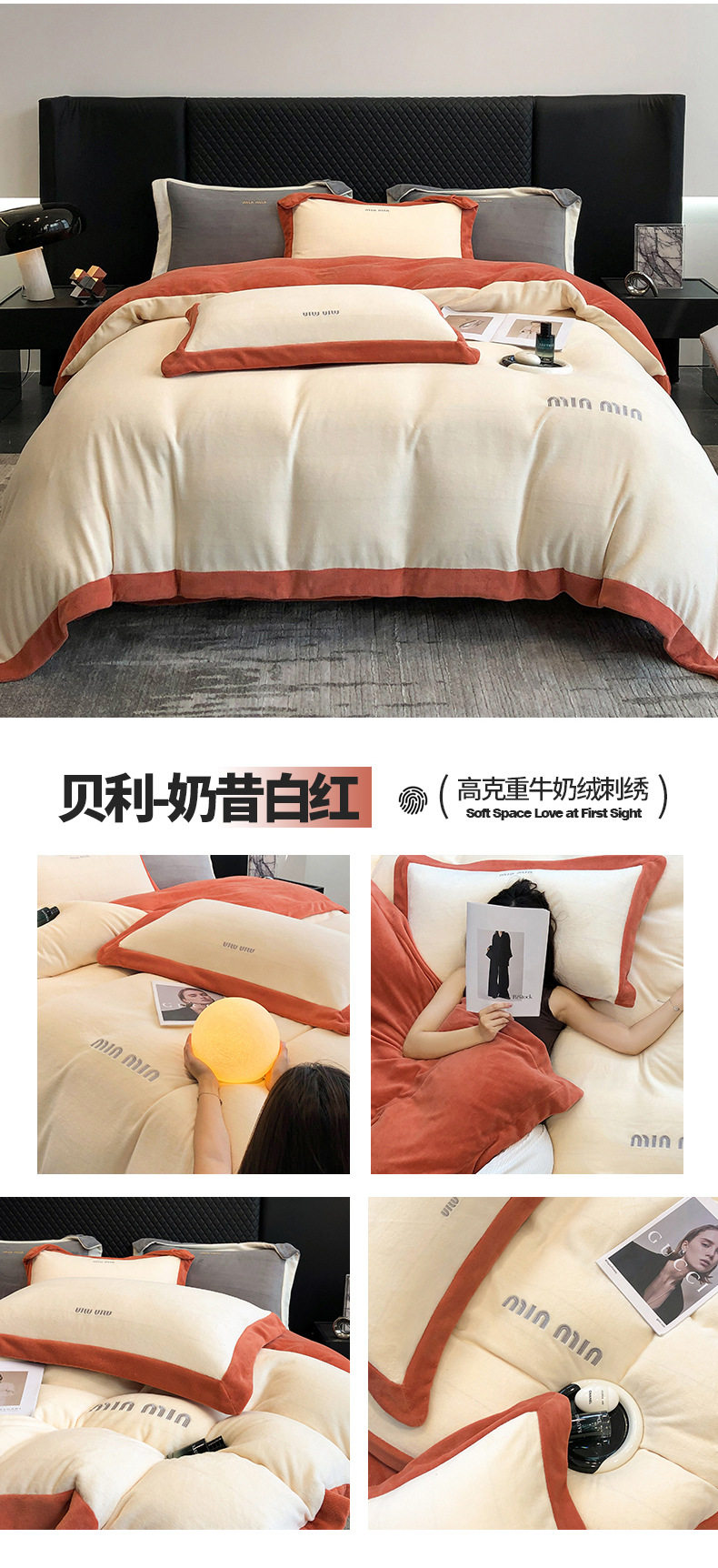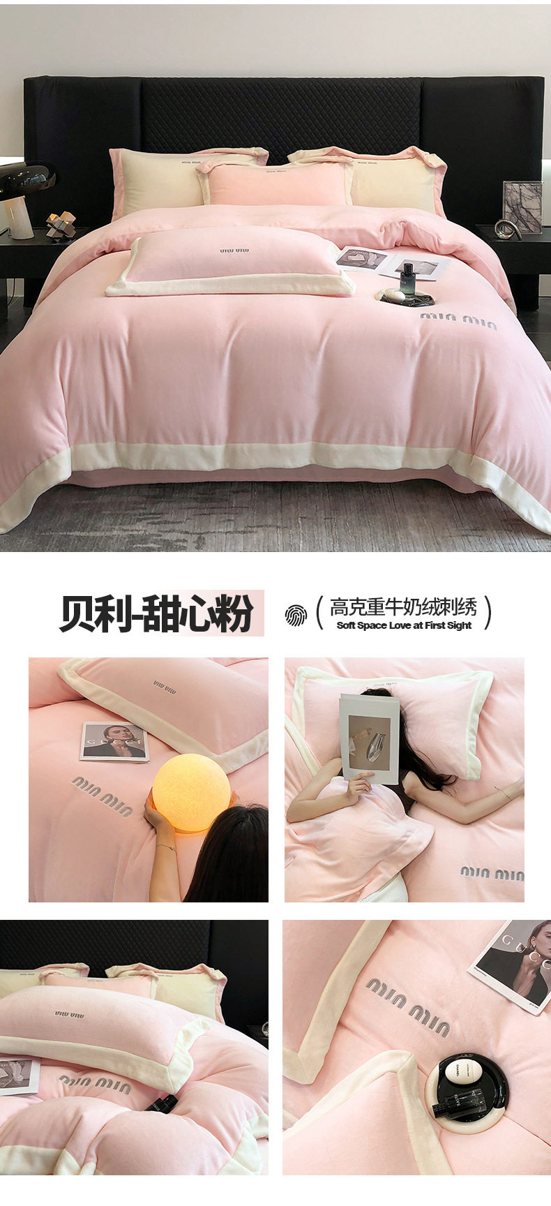 Simple and Luxurious Winter Thickeneded Embroidered Wide-Brimmed Milk Velvet Four-Piece Set with High Weight, Warm and Anti-Static Quilt Cover and Bed Sheetss