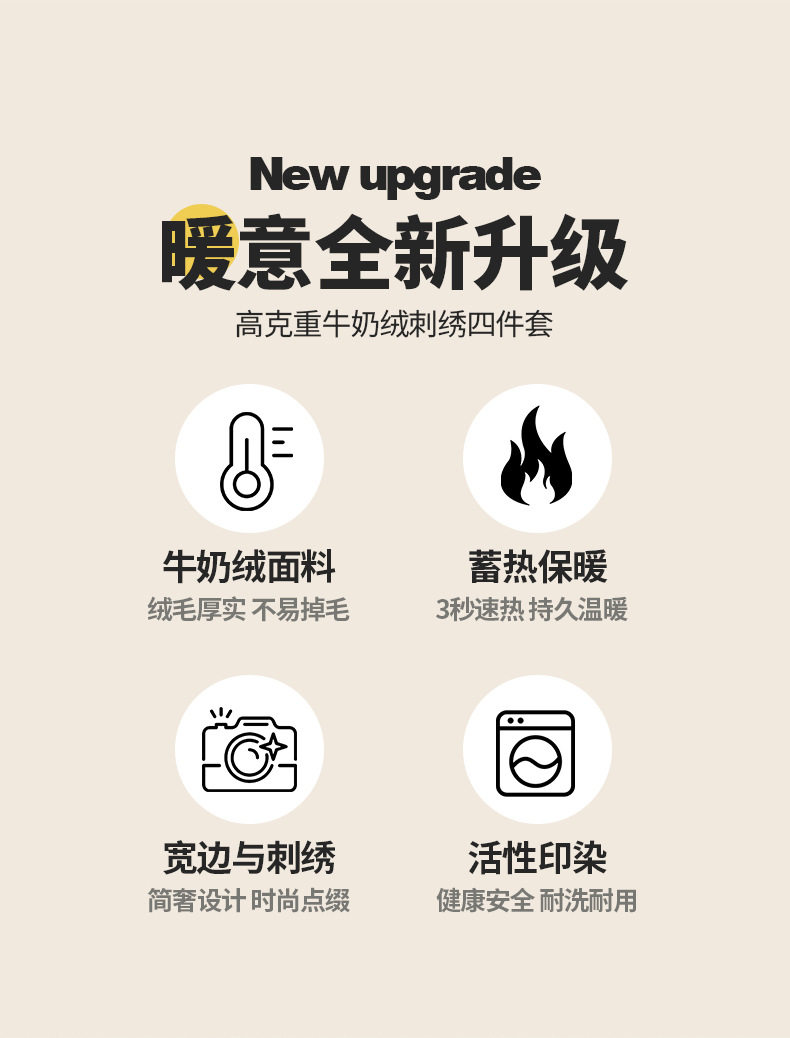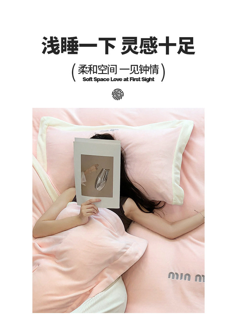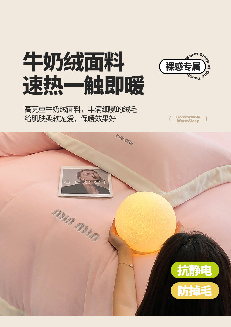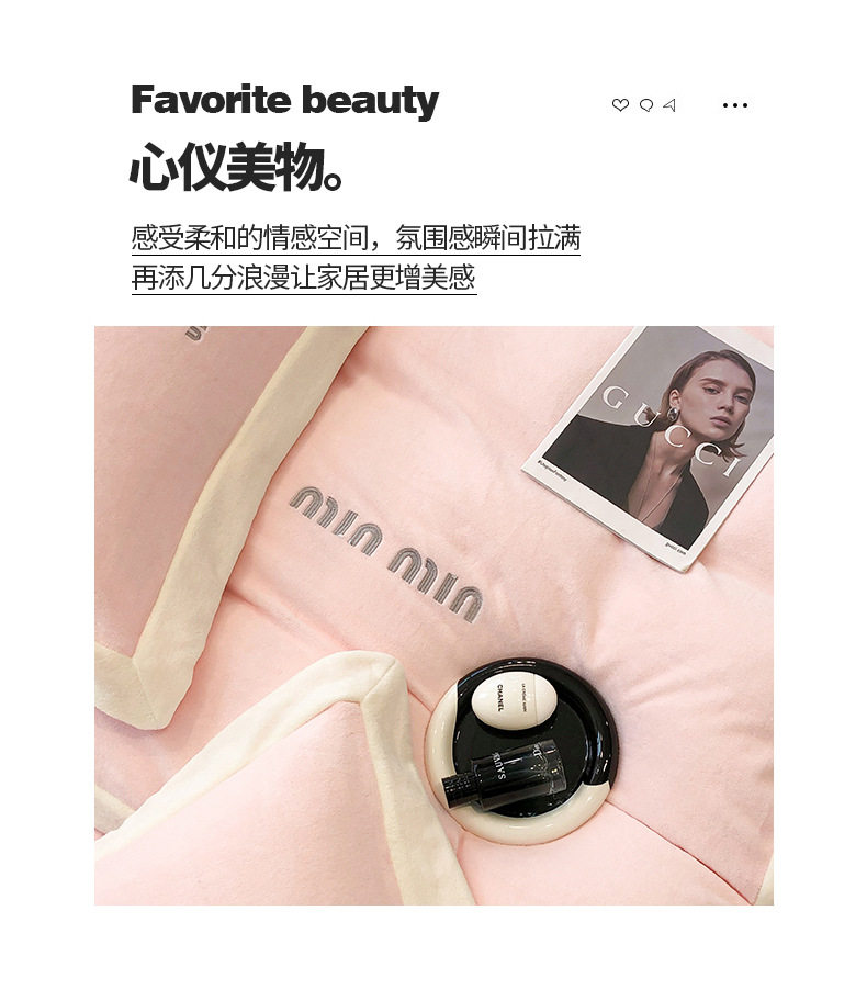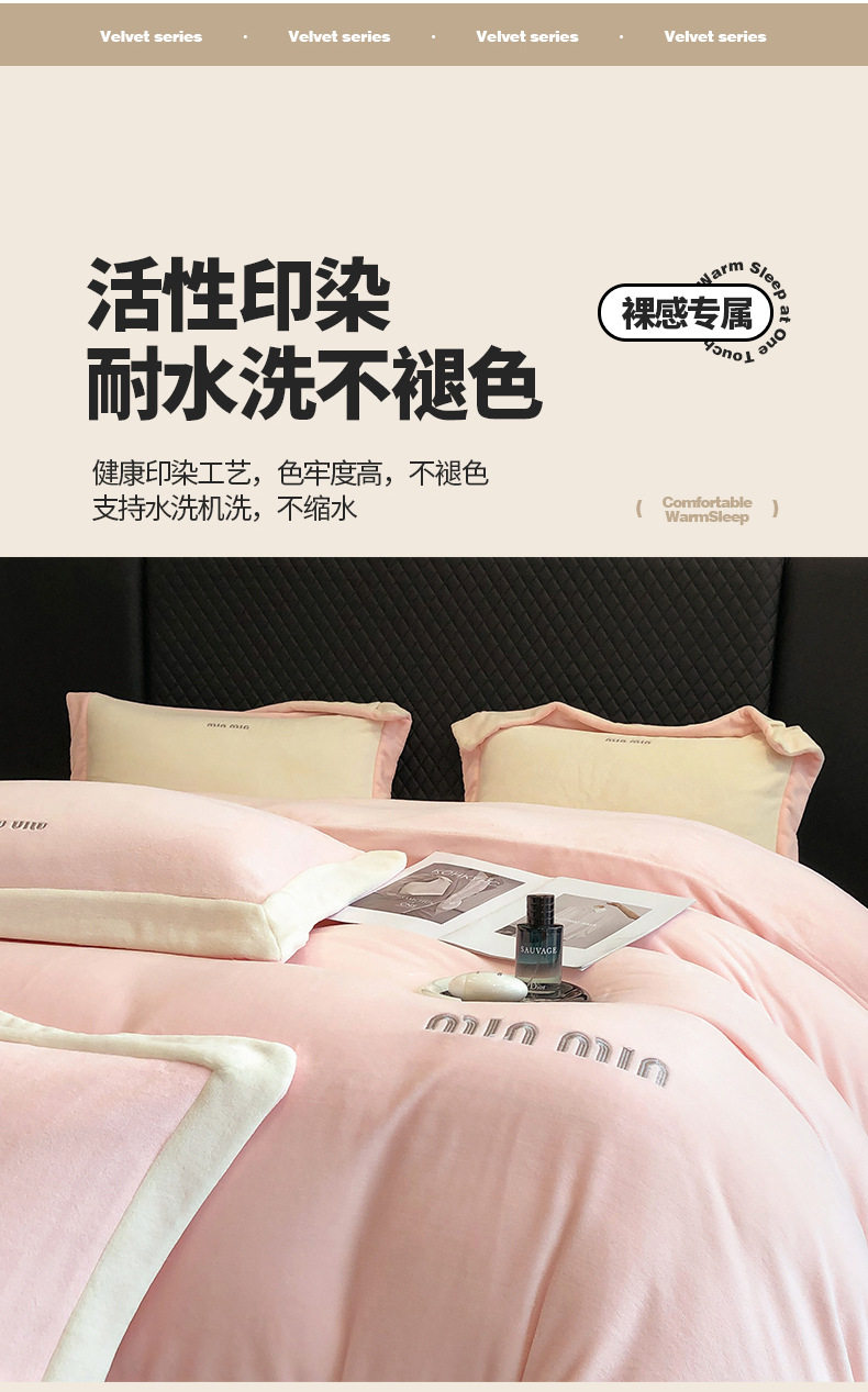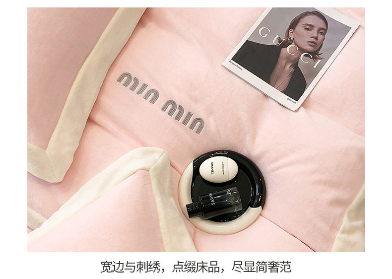 Simple and Luxurious Winter Thickeneded Embroidered Wide-Brimmed Milk Velvet Four-Piece Set with High Weight, Warm and Anti-Static Quilt Cover and Bed Sheetss