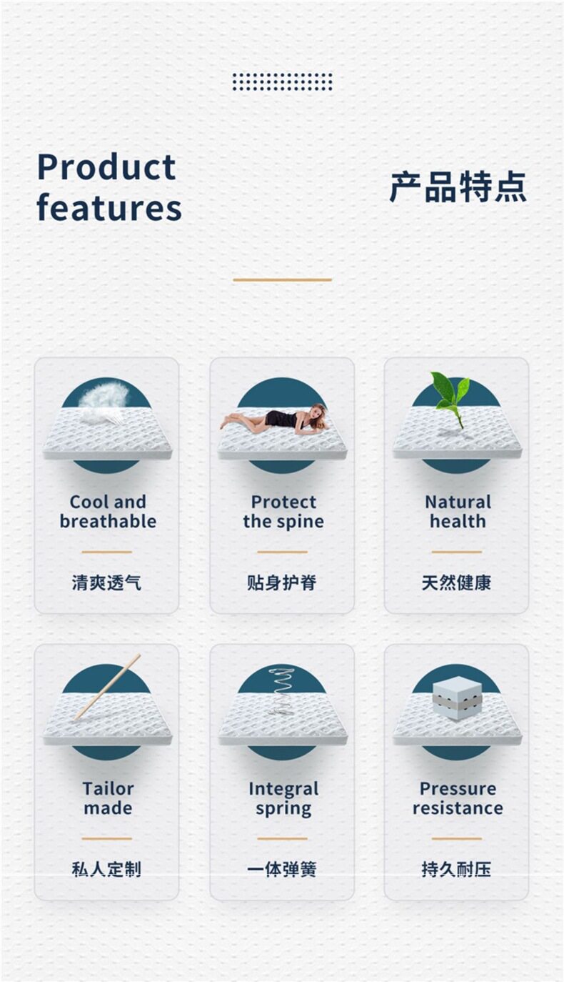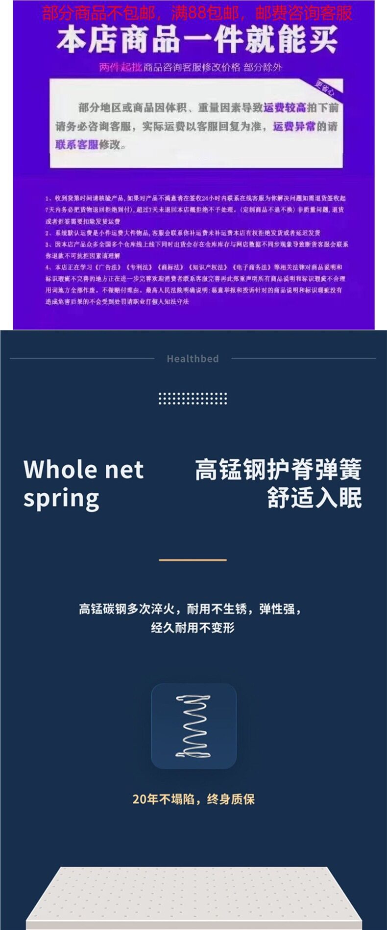 | Color | Knitted fabric with stainless steel springs, approximately 20cm, offering a medium-firm feel,Knitted fabric + stainless steel springs + 3e coconut coir, approximately 22cm, firm spine support,Knitted fabric + stainless steel spring + natural latex, about 22cm soft,Knitted fabric with independent springs, approximately 20cm of medium-firm support,Knitted fabric + independent springs + 3e coconut coir, approximately 22cm firm spine support,Knitted fabric + independent spring + natural latex, about 22cm soft,Yunduo cashmere fabric + stainless steel spring, about 20cm, moderate softness and hardness,Yunduo cashmere fabric + stainless steel spring + 3e coconut palm, about 22cm hard spine protector,Yunduo cashmere fabric + stainless steel spring + natural latex, about 22cm, soft,Cloud cashmere fabric + independent spring, about 20cm, moderately soft and hard,Yunduo cashmere fabric + independent spring + 3e coconut palm, about 22cm, hard spine protection,Yunduo cashmere fabric + independent spring + natural latex, about 22cm, soft,Cloud cashmere fabric + independent spring + latex coconut palm, about 23cm soft and hard double-sided,Cloud cashmere fabric + independent compression spring, about 12cm, moderately soft and hard,Cloud cashmere fabric + independent compression spring + 3e coconut palm, about 14cm hard spine protection,Yunduo cashmere fabric + independent compression spring + latex, about 14cm soft,Cloud cashmere + independent compression spring + latex coconut palm, about 15cm soft and hard double-sided,Cloud cashmere fabric + silent bag spring, about 20cm, moderately soft and hard,Cloud cashmere fabric + silent bag spring + 3e coconut palm, about 22cm hard spine protection,Yunduo cashmere fabric + silent bag spring + latex, about 22cm soft,Cloud cashmere + silent bag spring + latex coconut palm, about 23cm soft and hard double-sided |