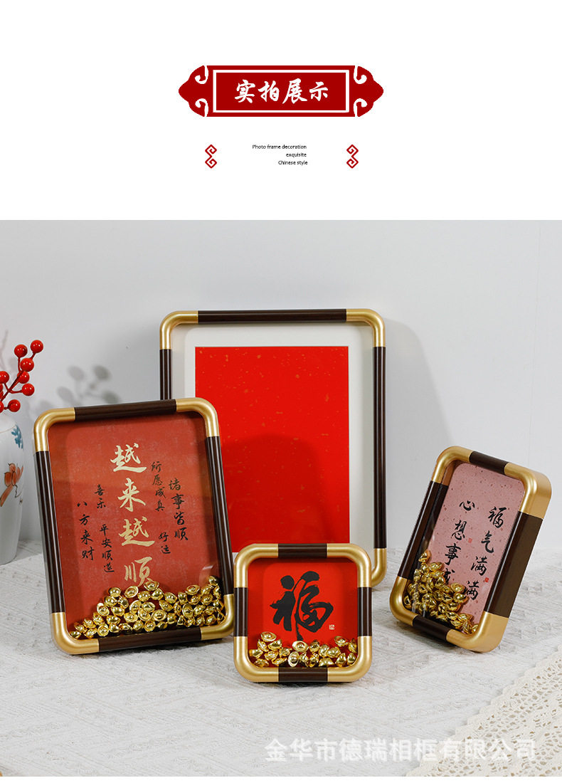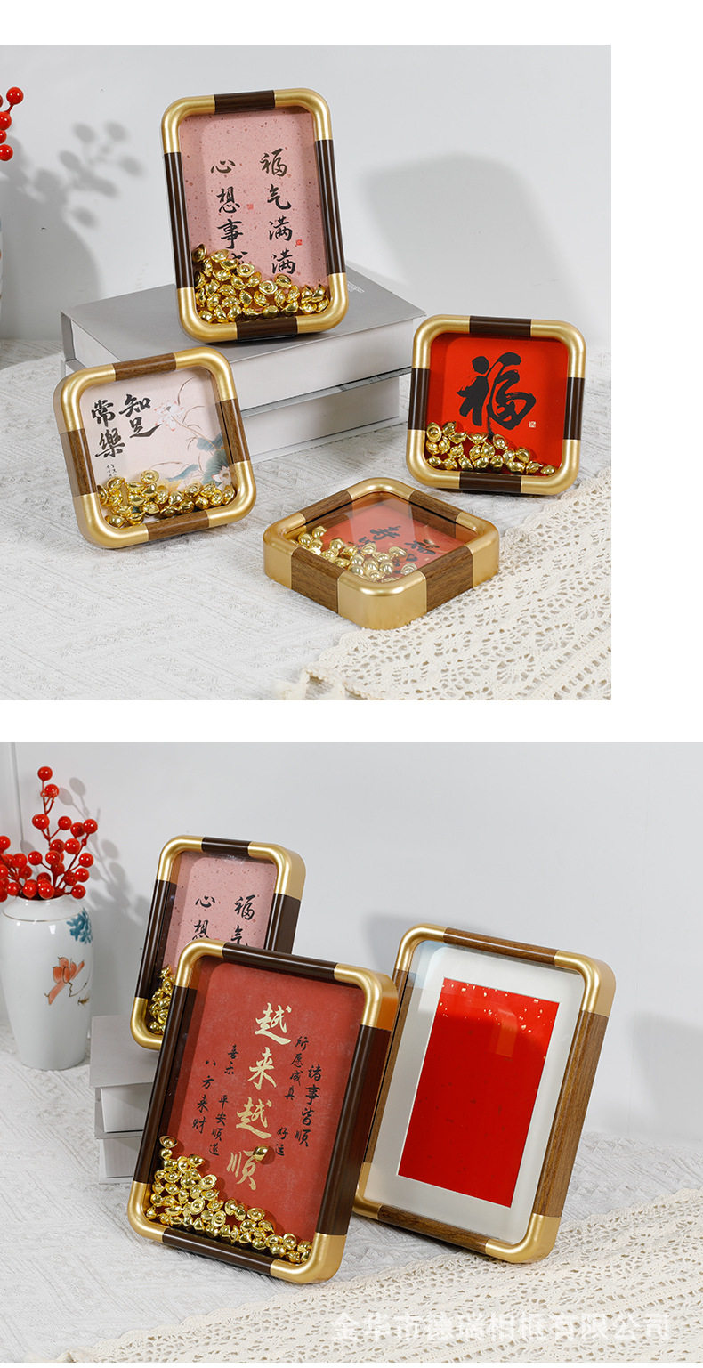 02 # New Copper Corner Frame Hollow 1.2 Photo Frame Display Stand Imitation Copper Corner Pvc Rounded Corner Wholesale 6inch 7inch Blank Calligraphy and Painting