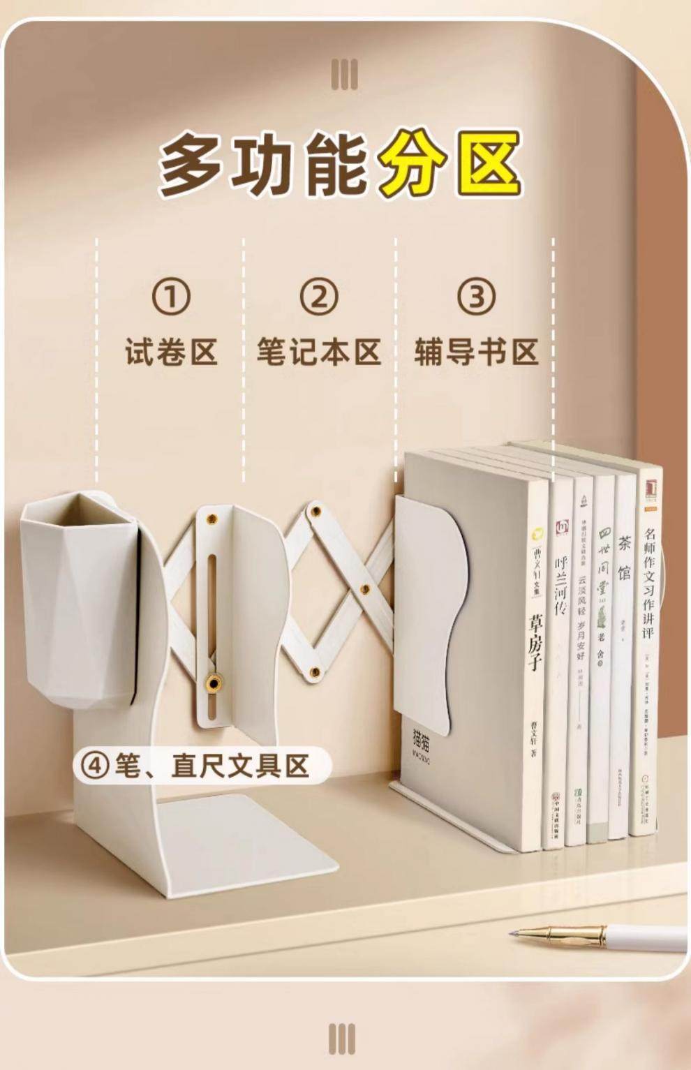 2025 Can Be Equipped with a Pen Holder and Bookshelf Integrated Desktop Book Storage Rack for High School Students with Folding and Fixed Book Holder