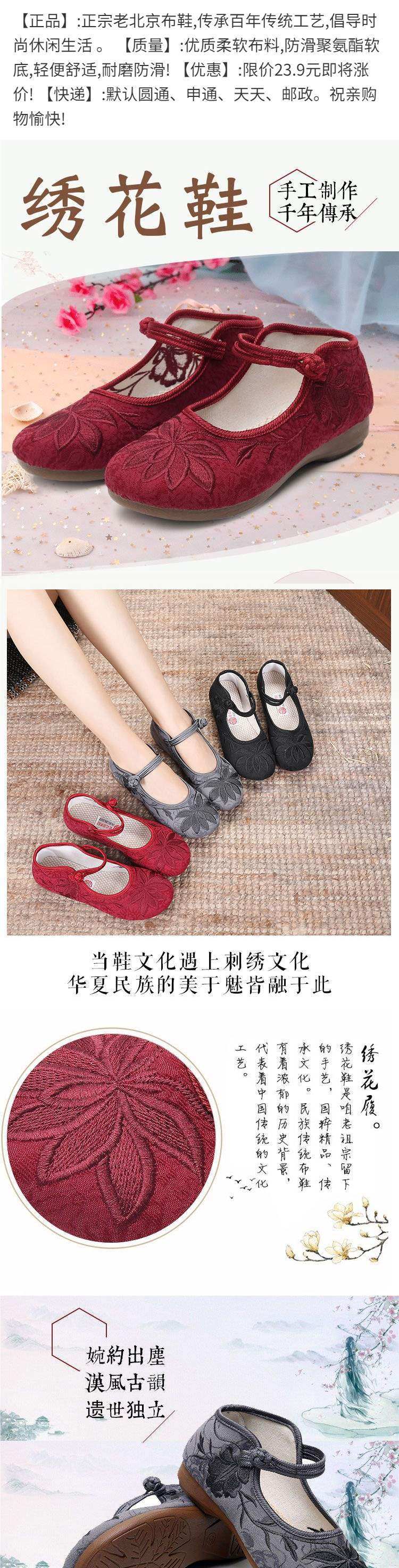 New Style Old Beijing Cloth Shoes for Women, Retro Ethnic Style Embroidered Shoes, Soft Sole, Non-Slip Flat Shoes, Mother's Shoes, Hanfu Shoes