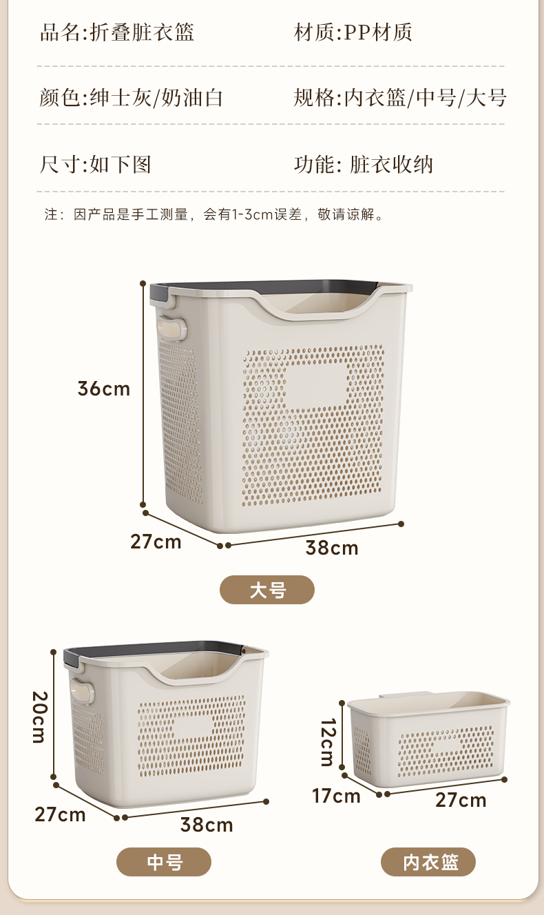 | Color | Security material, no odor, no burrs, cut out moisture dispersion,Cream white - three-piece set [underwear basket + medium + large] a must-have for large families,Gentleman gray - three-piece set [underwear basket + medium + large] a must-have for large families,Cream white - two-piece set [underwear basket + large size] hot selling recommendation,Gentleman gray-two-piece set [underwear basket + large size] hot selling recommendation,Cream white - two-piece set [underwear basket + medium size],Gentleman gray-two-piece set [underwear basket + medium size],Cream white-two-piece set [medium + large],Gentleman gray-two-piece set [medium + large],Cream white-large dirty clothes basket,Gentleman gray-large dirty clothes basket,Cream white-medium laundry basket,Gentleman gray-medium dirty clothes basket,Cream white-underwear basket,Gentleman gray-underwear basket |