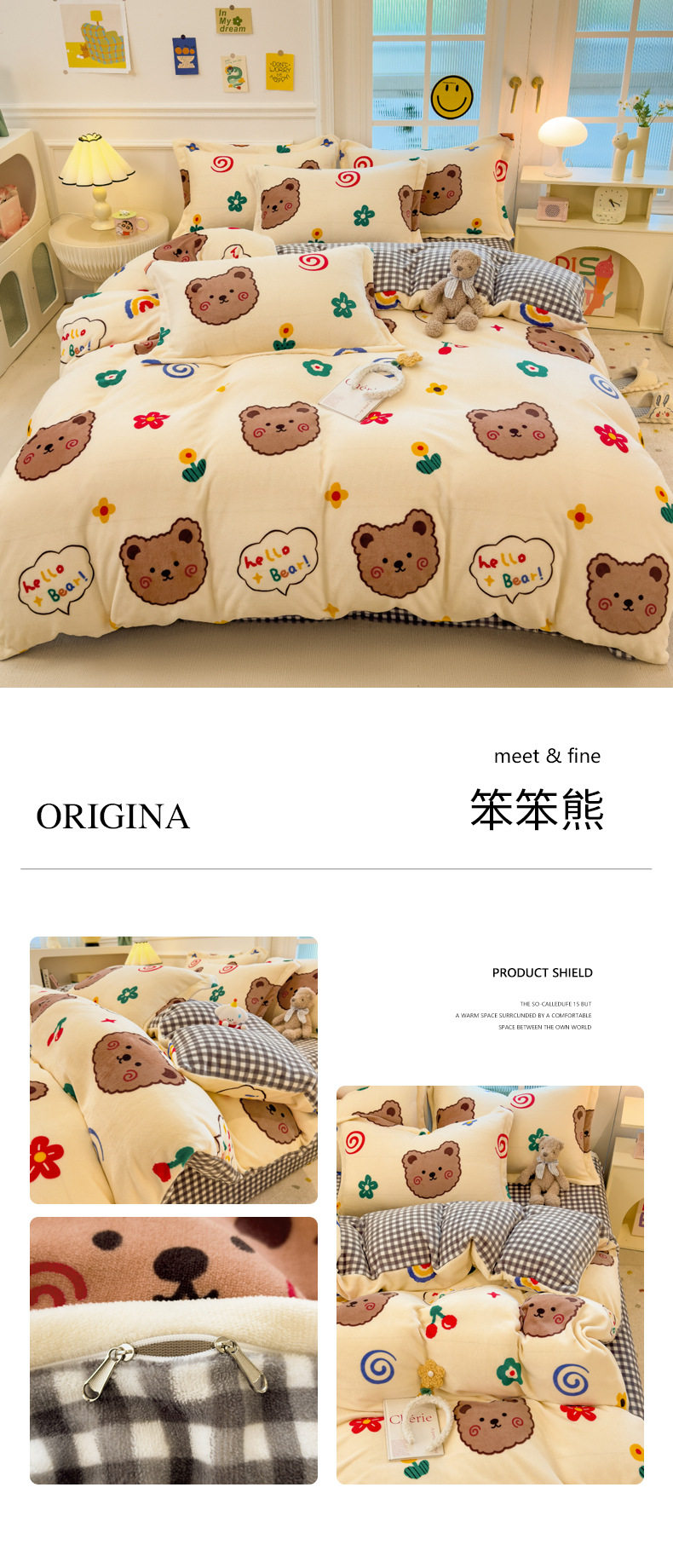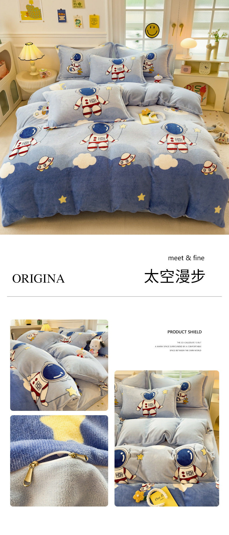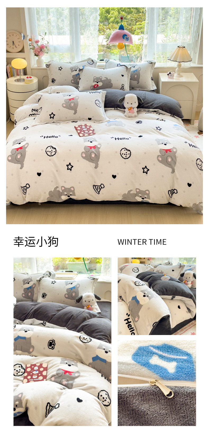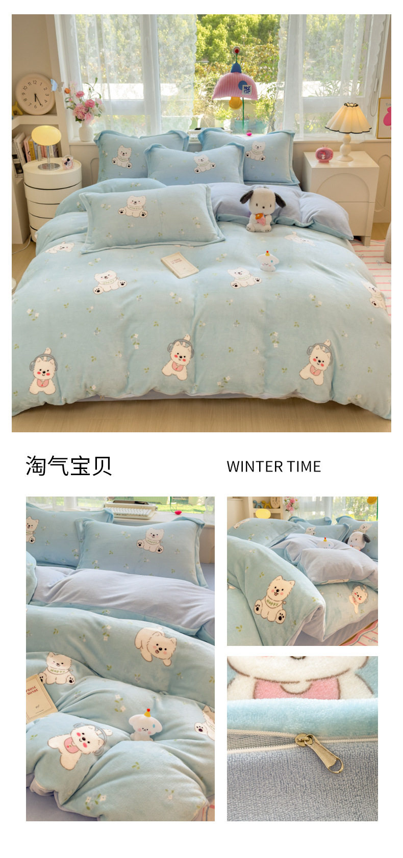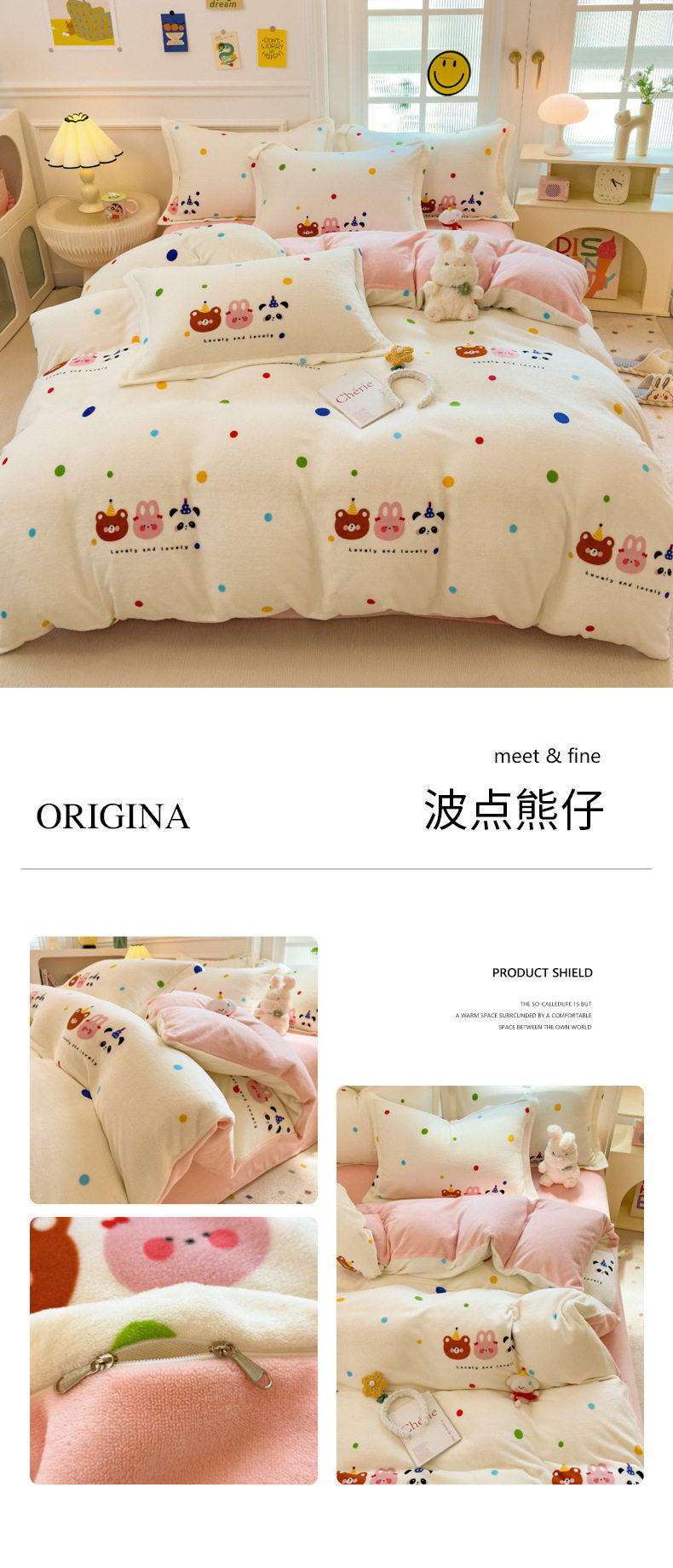 Autumn and Winter Thickened Milk Velvet Four-Piece Dormitory Cartoon Coral Velvet Bed Sheet Three-Piece Set Super Soft Warm Quilt Cover Wholesale