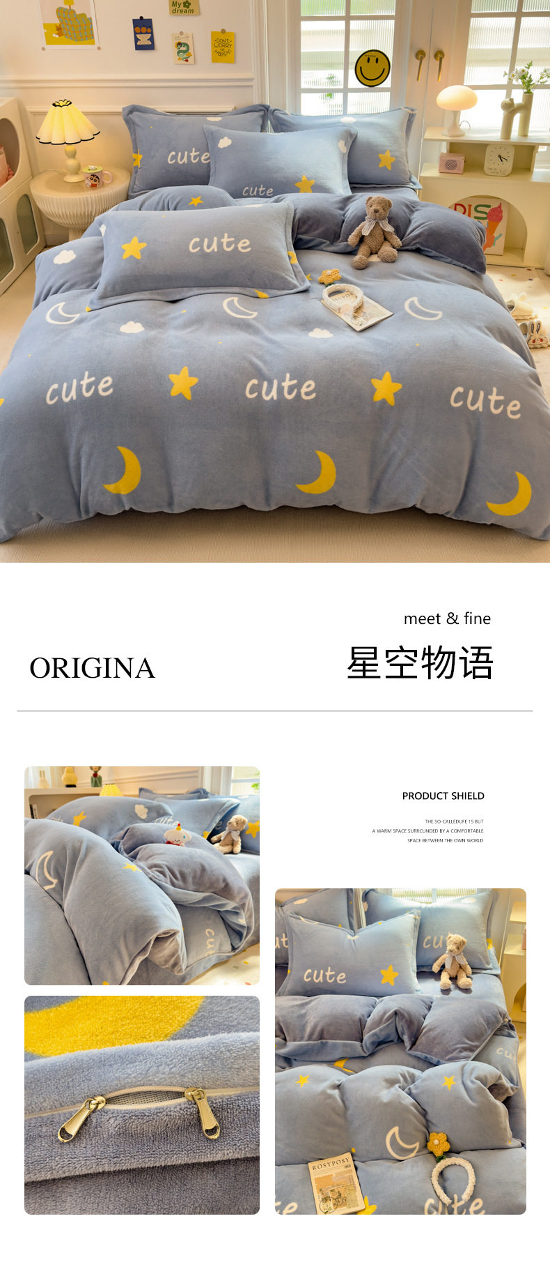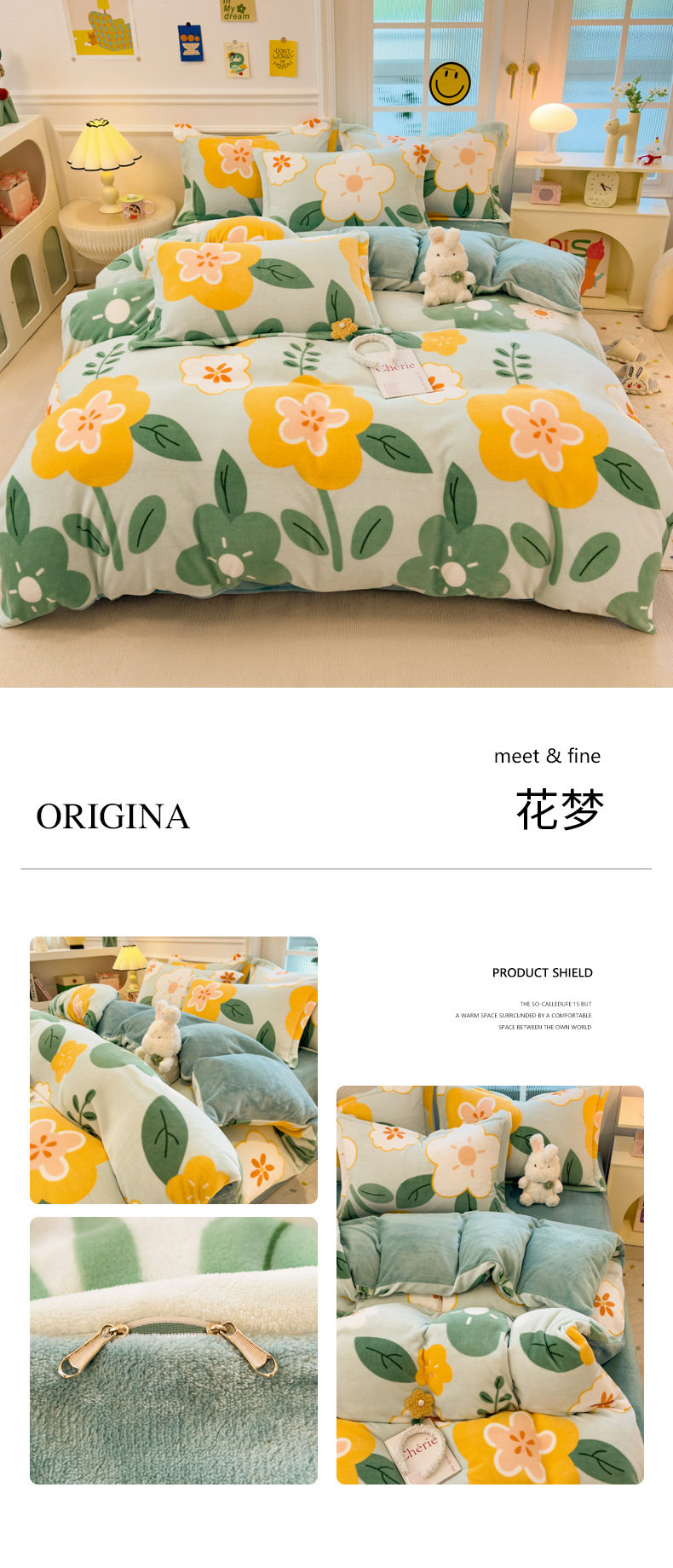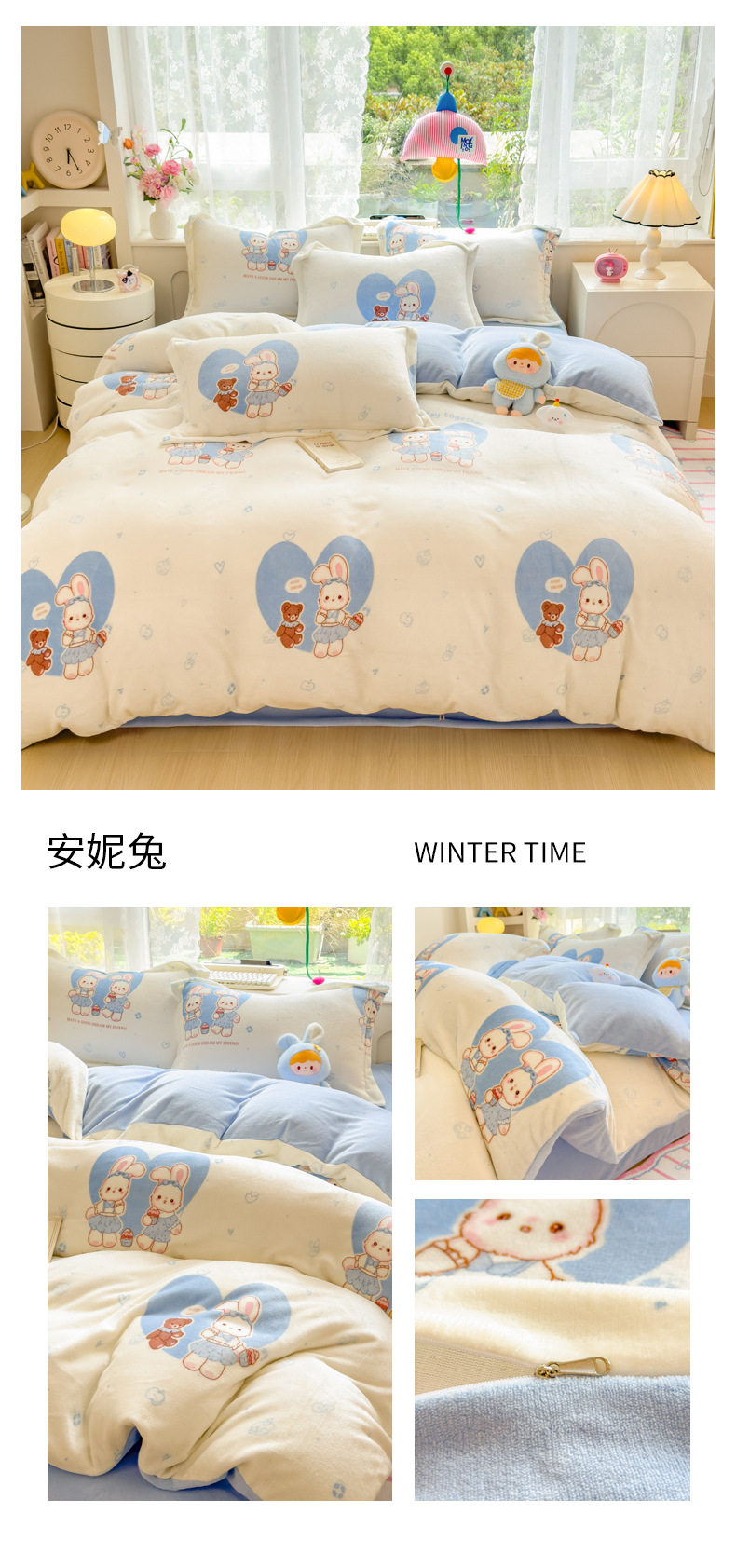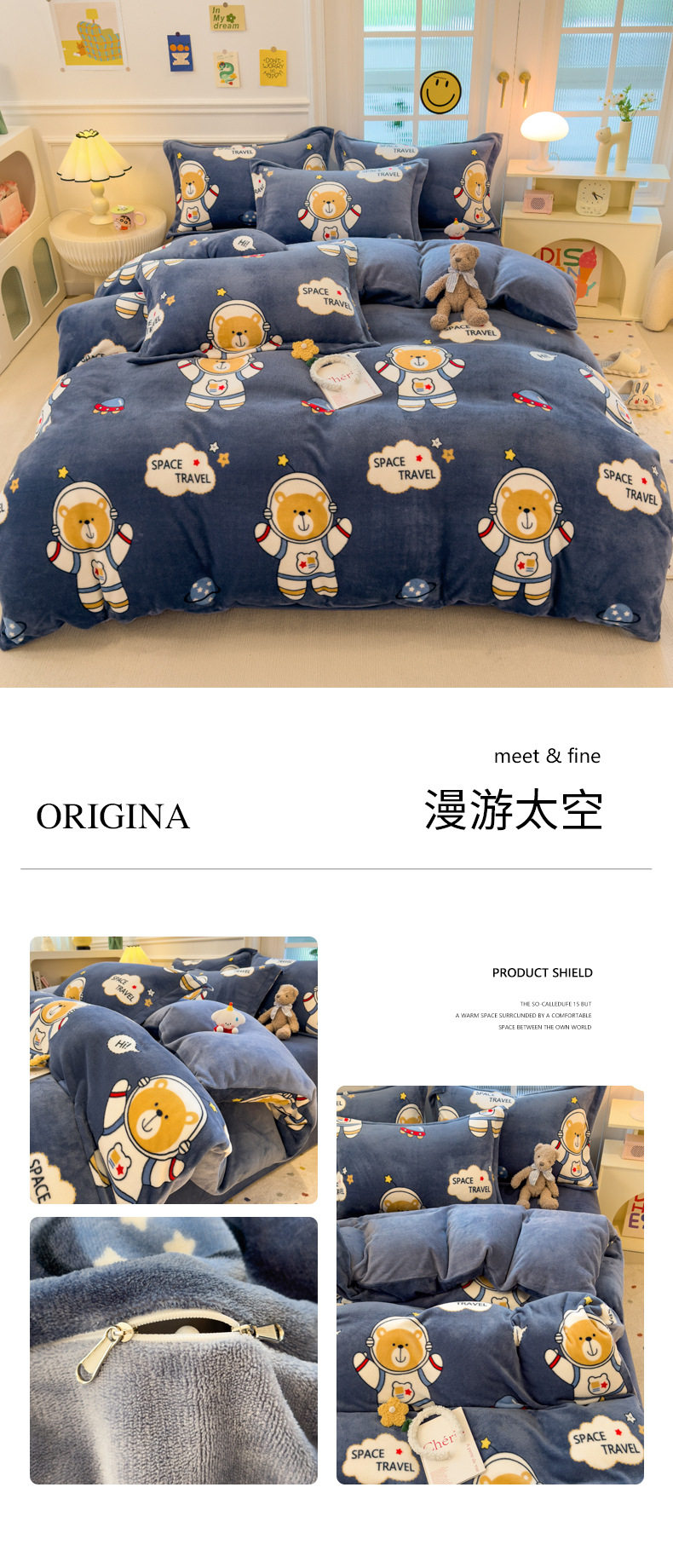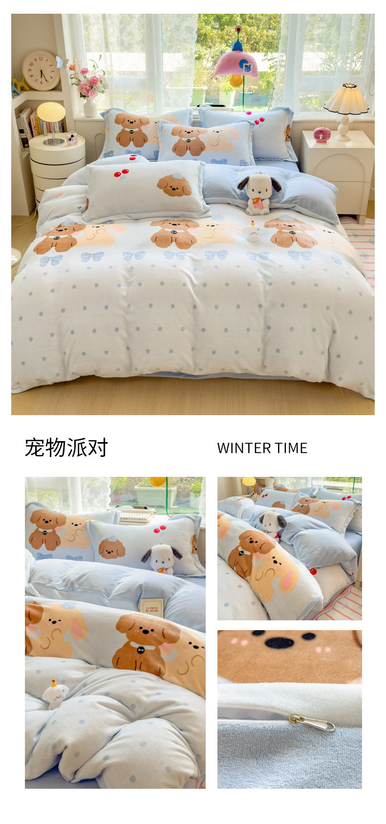 Autumn and Winter Thickened Milk Velvet Four-Piece Dormitory Cartoon Coral Velvet Bed Sheet Three-Piece Set Super Soft Warm Quilt Cover Wholesale