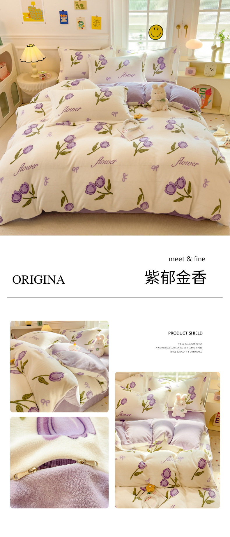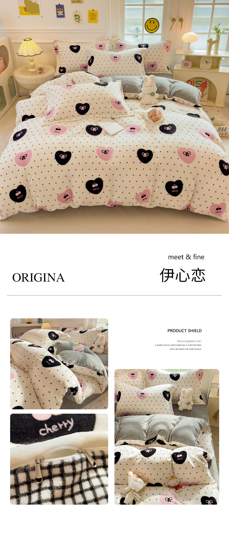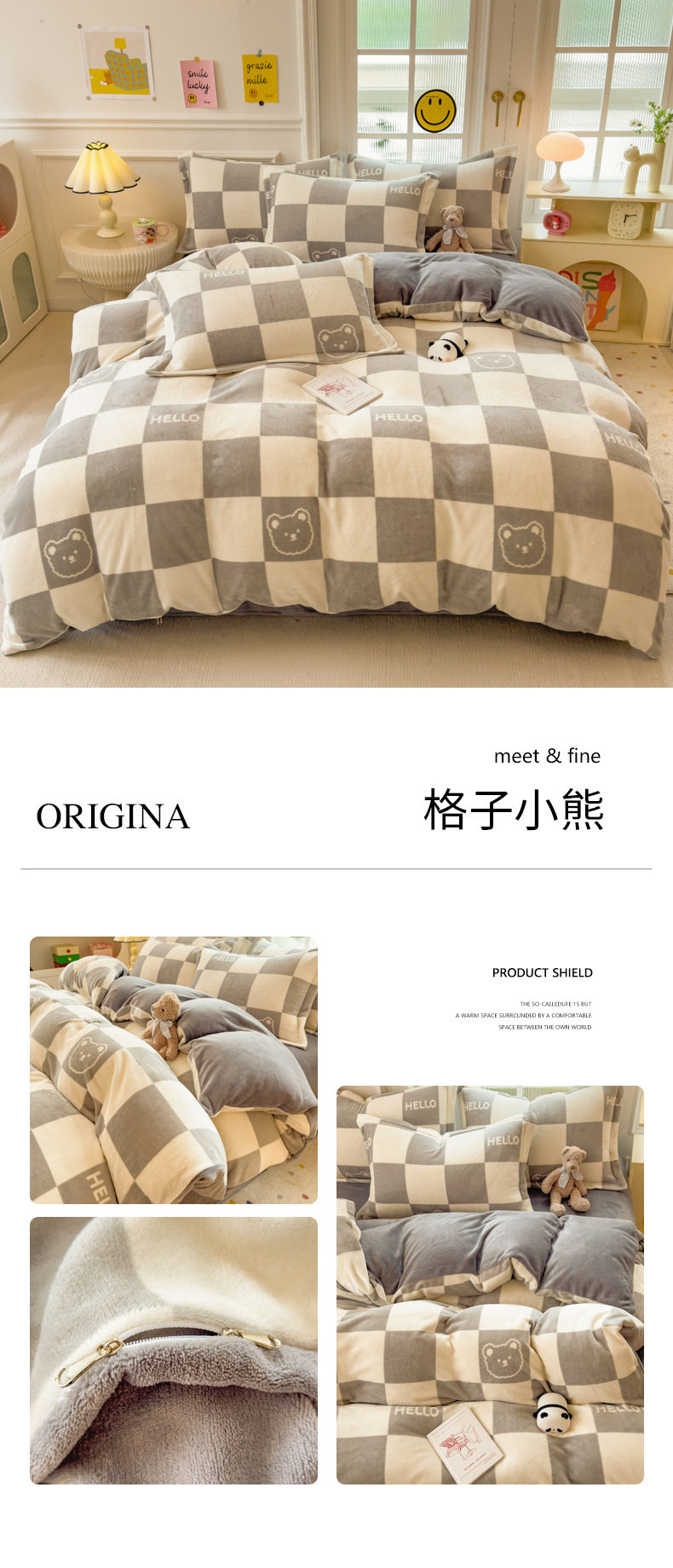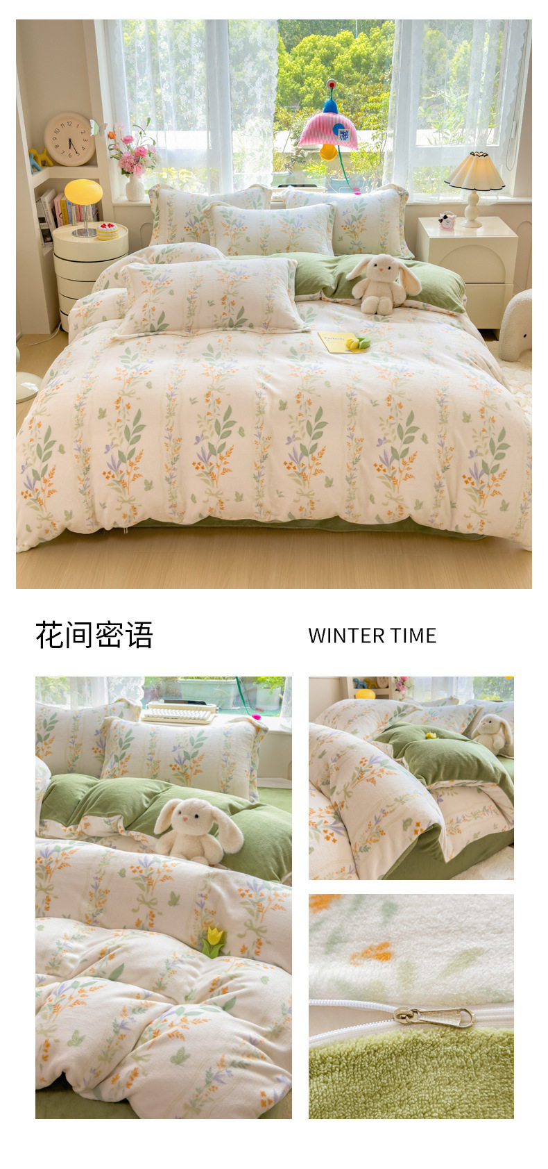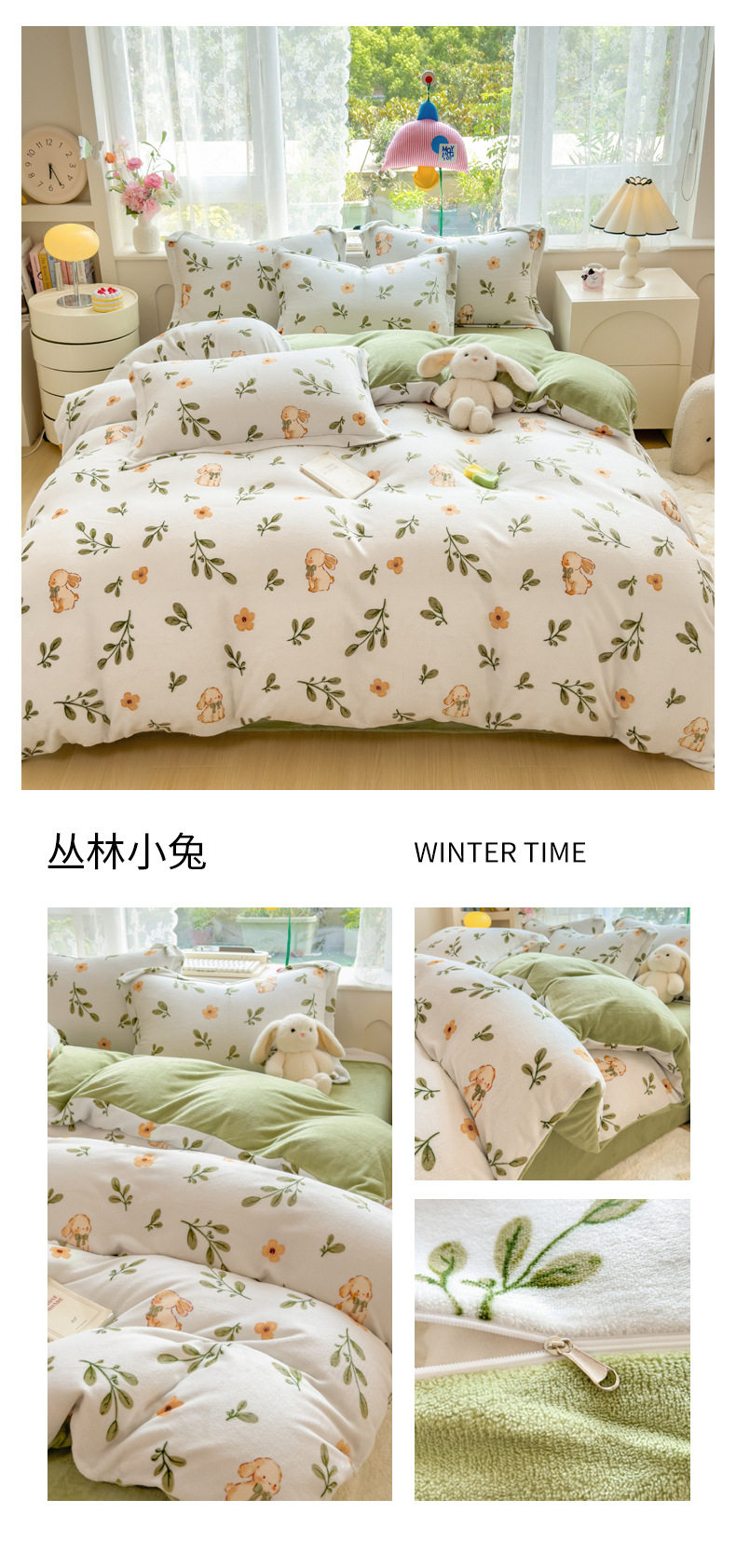 Autumn and Winter Thickened Milk Velvet Four-Piece Dormitory Cartoon Coral Velvet Bed Sheet Three-Piece Set Super Soft Warm Quilt Cover Wholesale