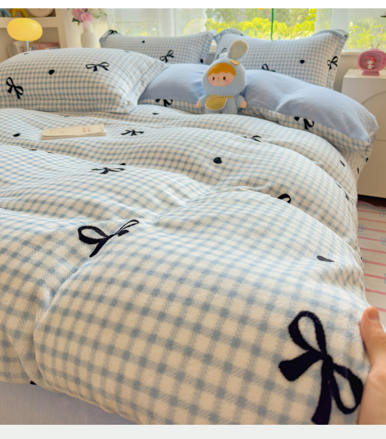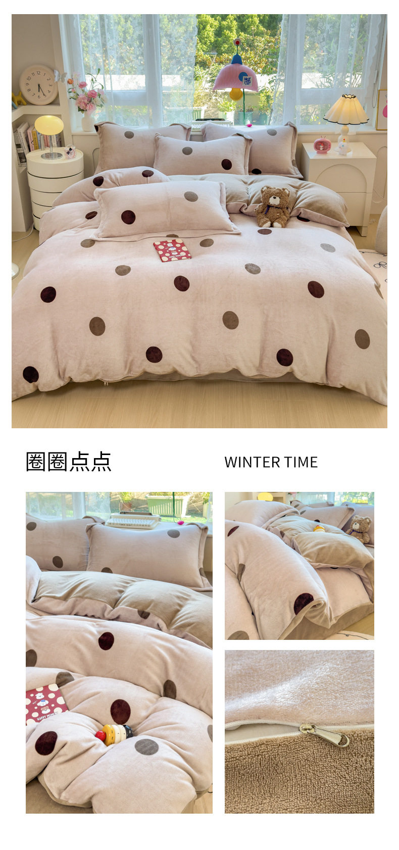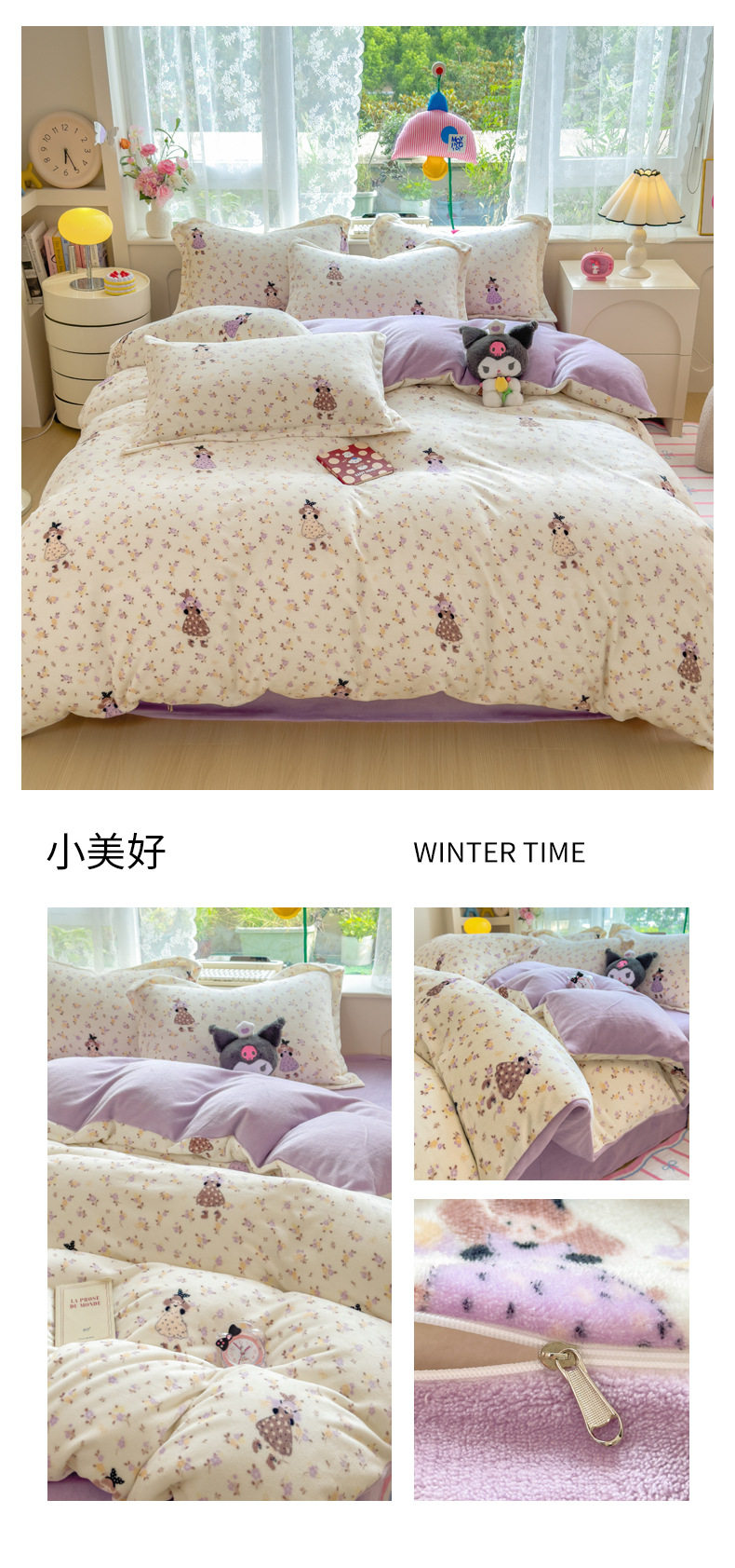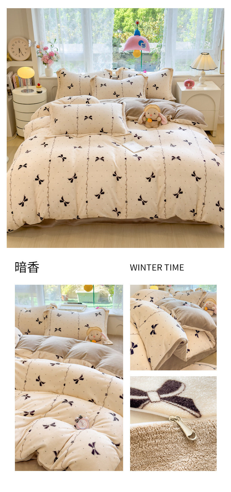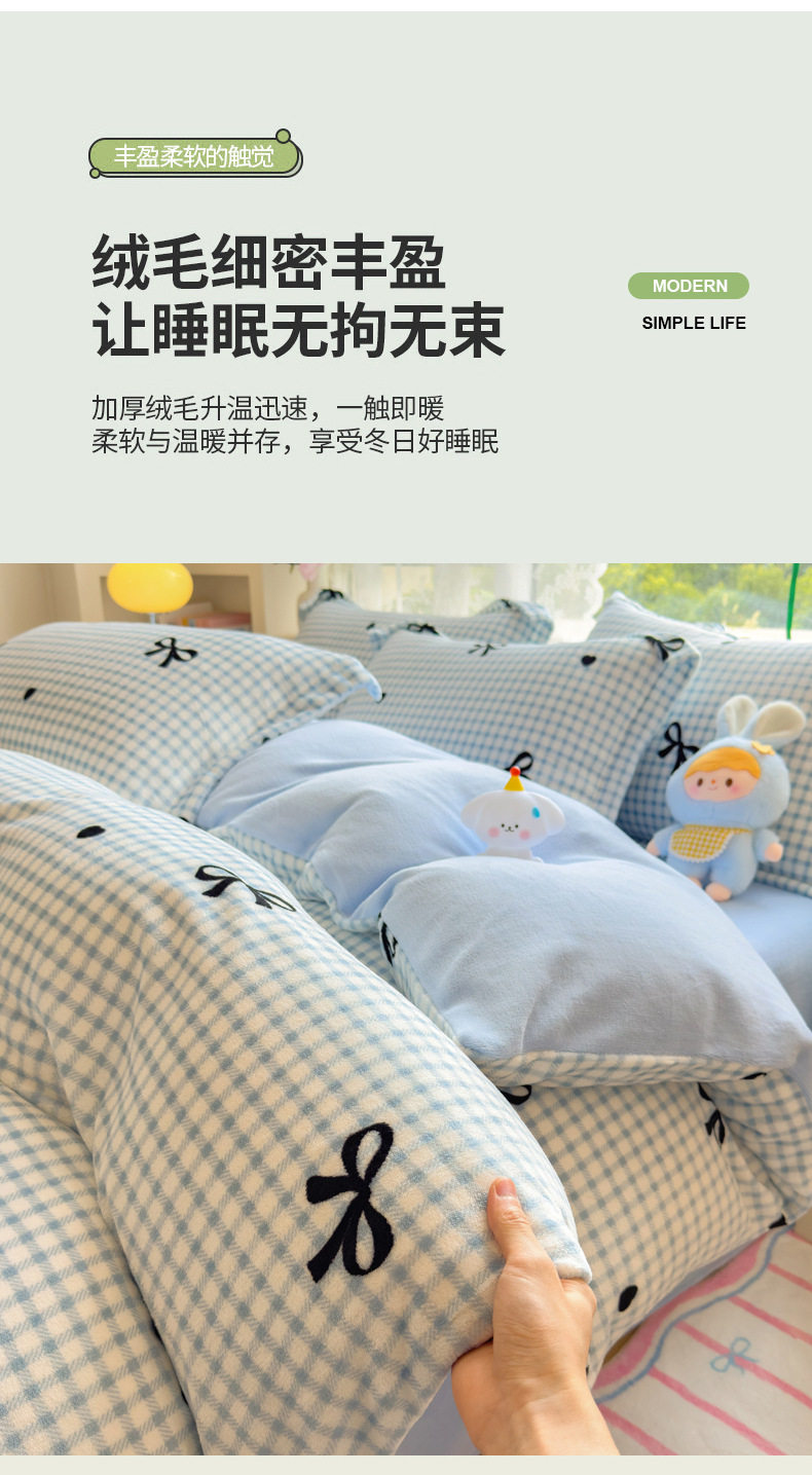 Autumn and Winter Thickened Milk Velvet Four-Piece Dormitory Cartoon Coral Velvet Bed Sheet Three-Piece Set Super Soft Warm Quilt Cover Wholesale