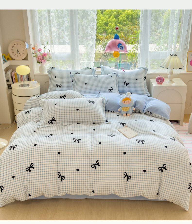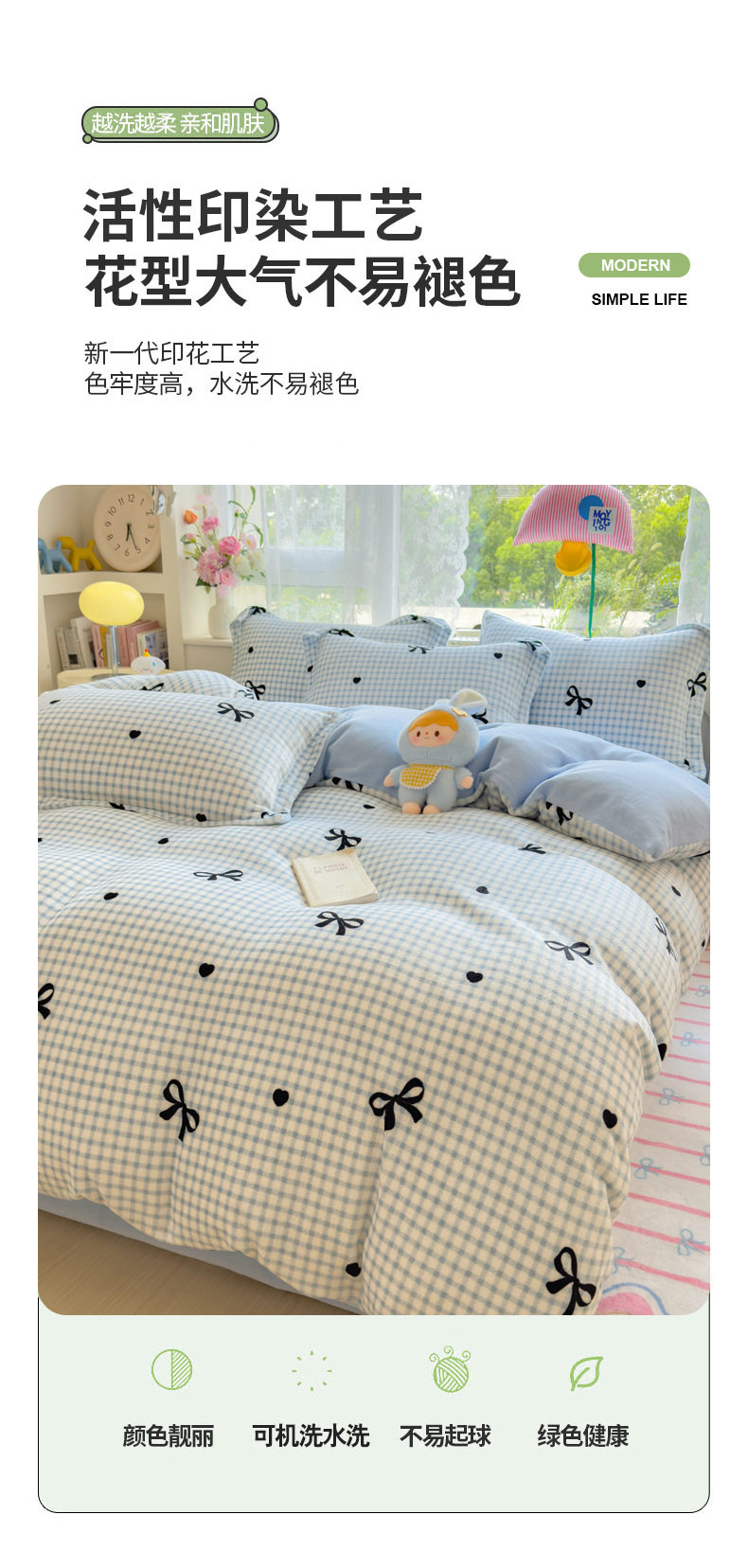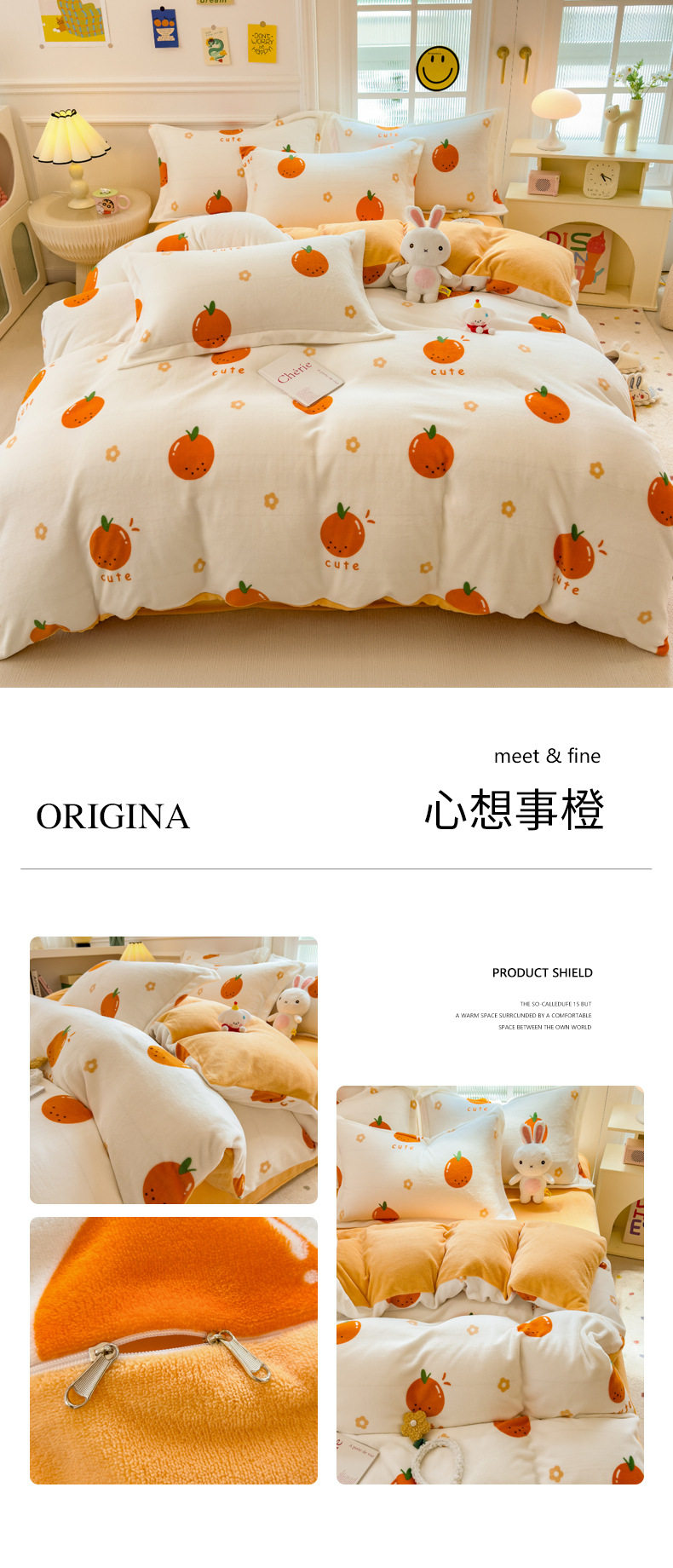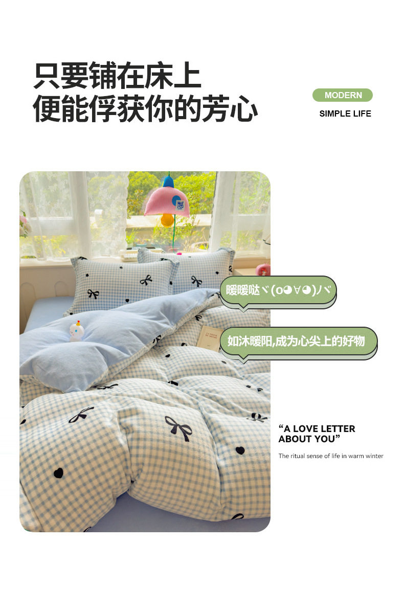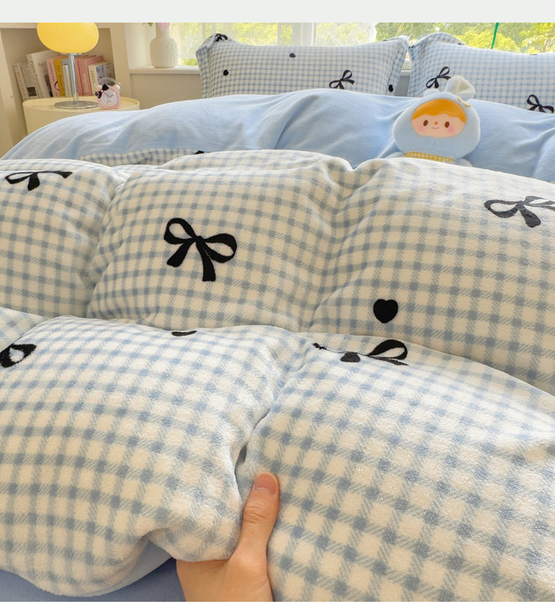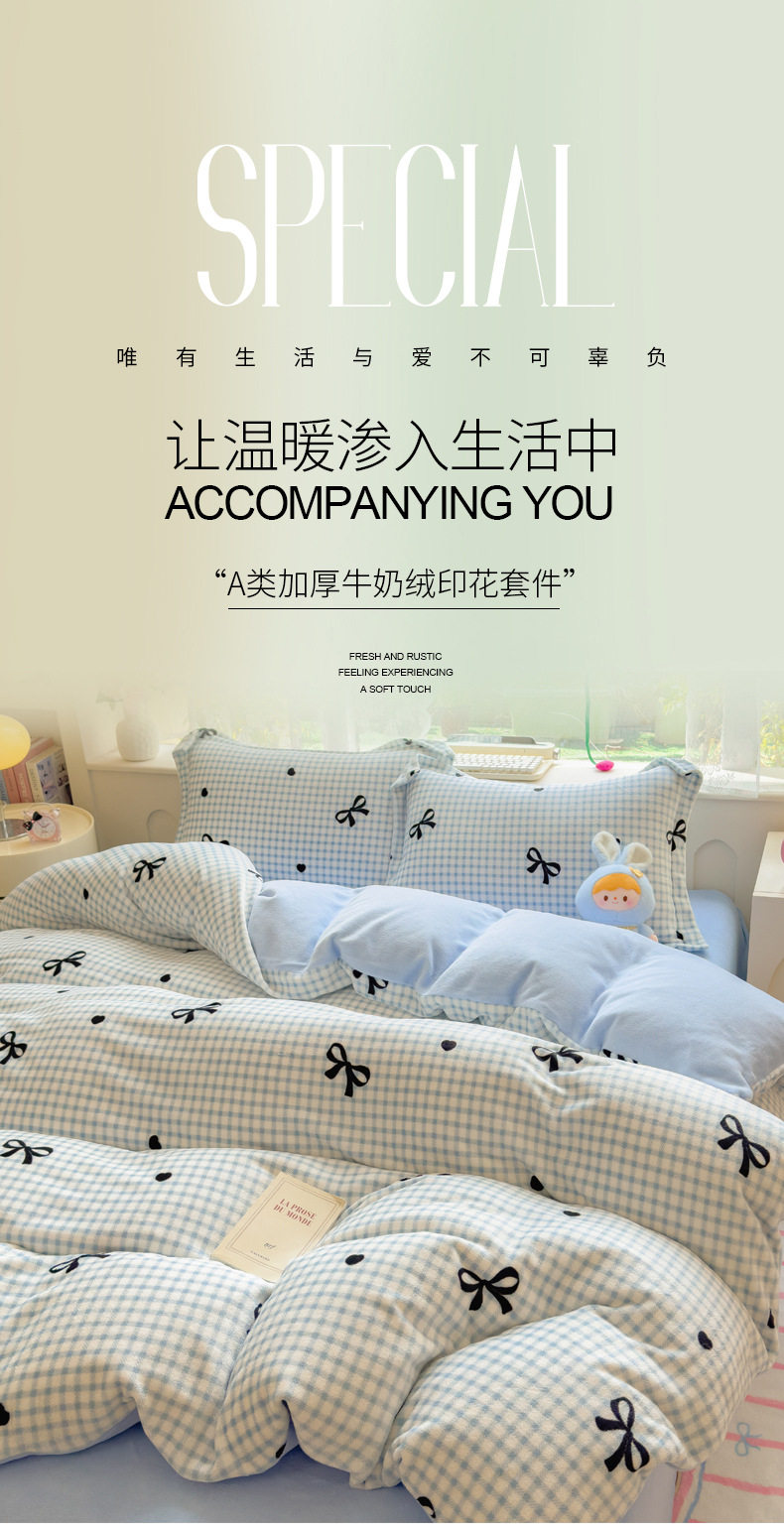Autumn and Winter Thickened Milk Velvet Four-Piece Dormitory Cartoon Coral Velvet Bed Sheet Three-Piece Set Super Soft Warm Quilt Cover Wholesale