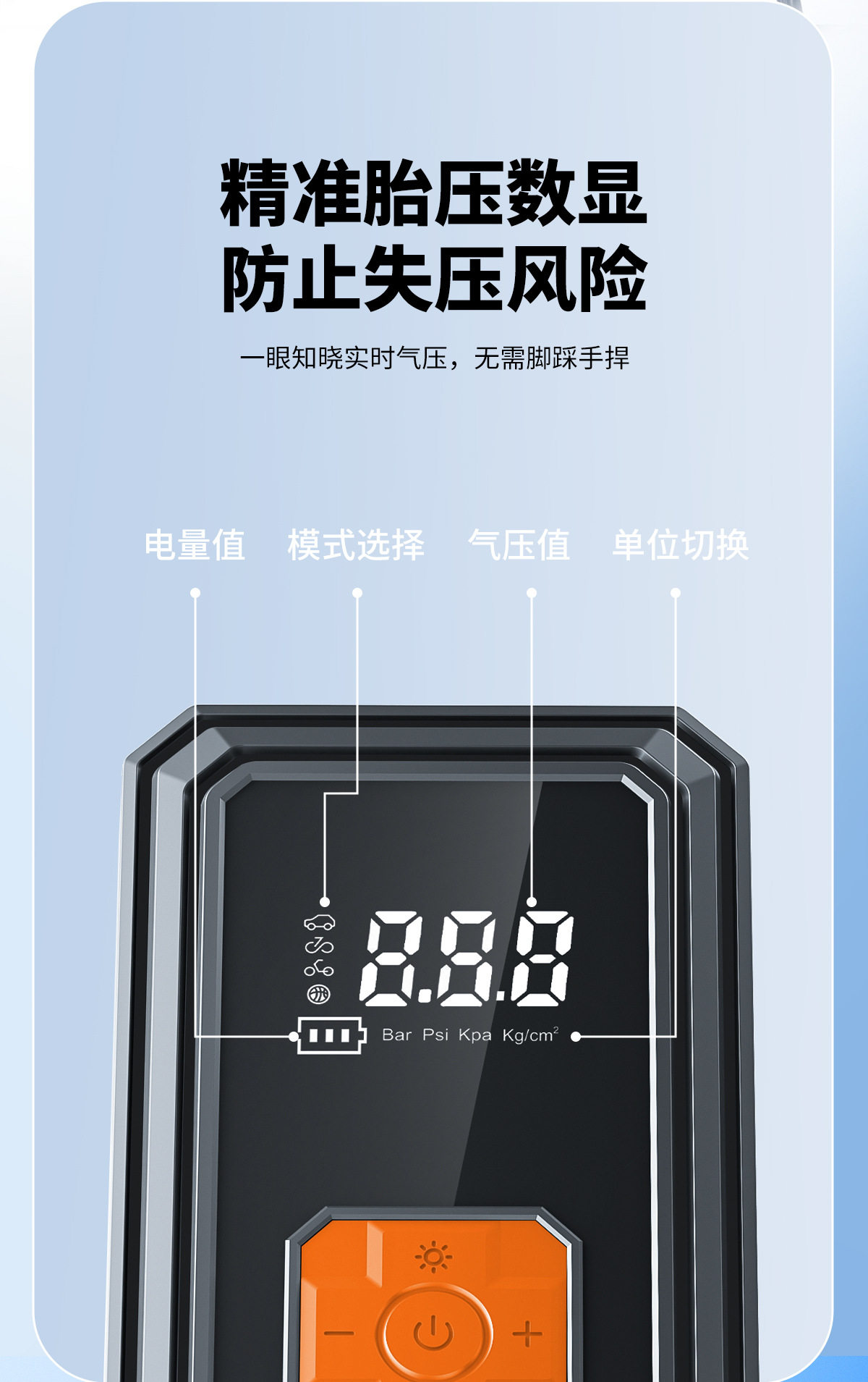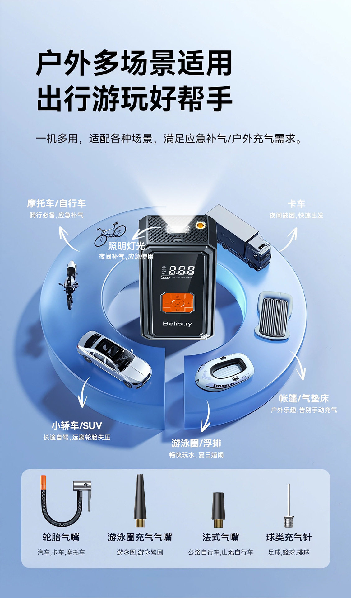 | Additional features | Lighting,Tire pressure gauge,Usb charging |