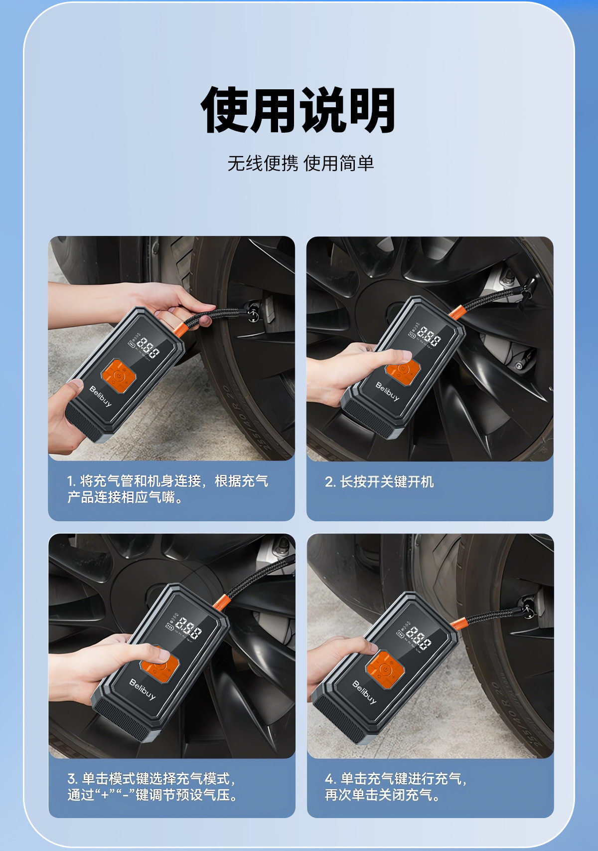 | Power cord length | Wireless air pump |
