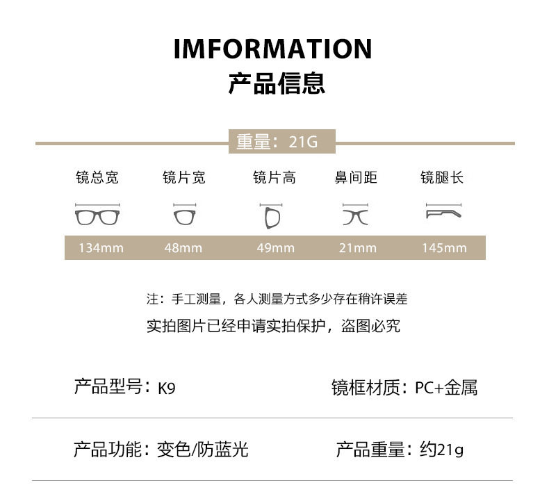 | Frame color | Black silver frame,Transparent gold frame,Olive gold frame,Transparent gray silver frame,Transparent tea gold frame,Black gold frame |
