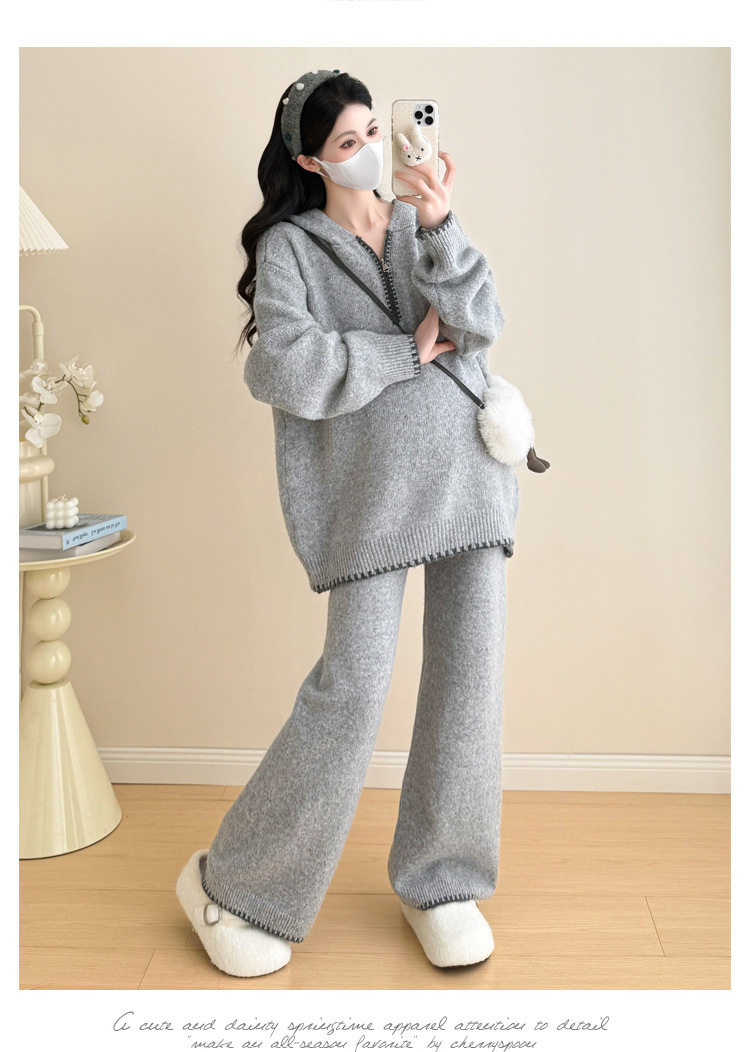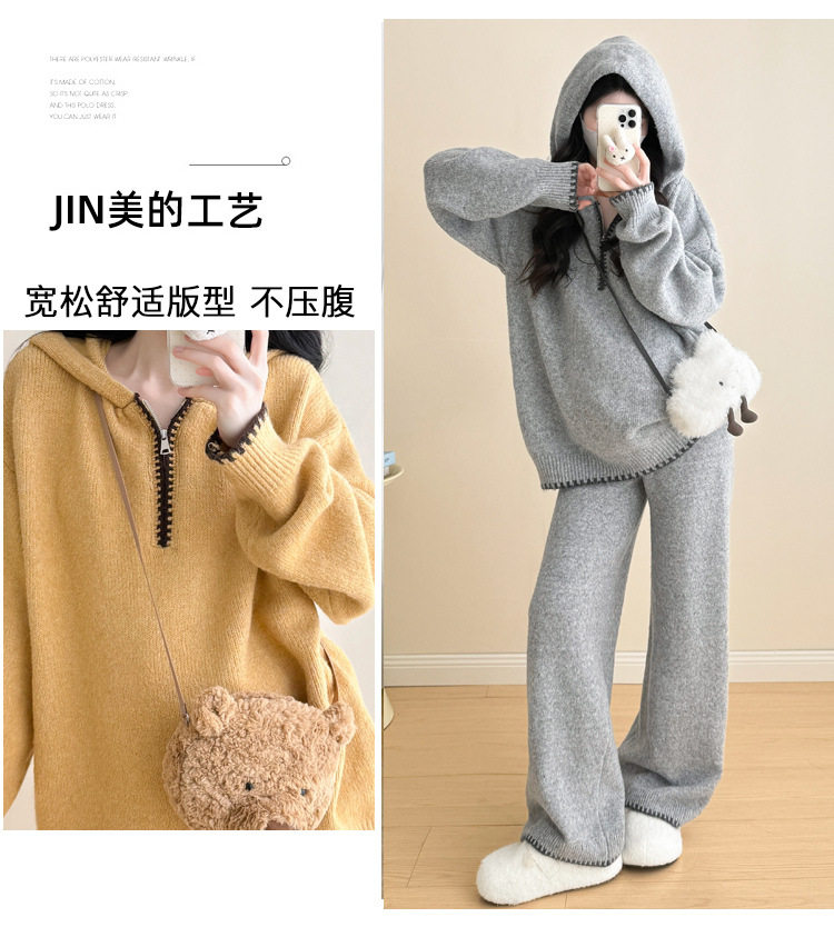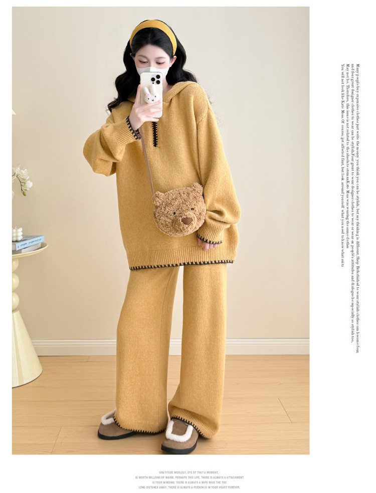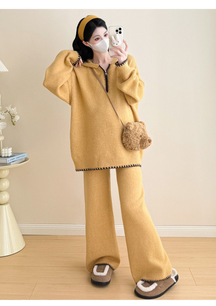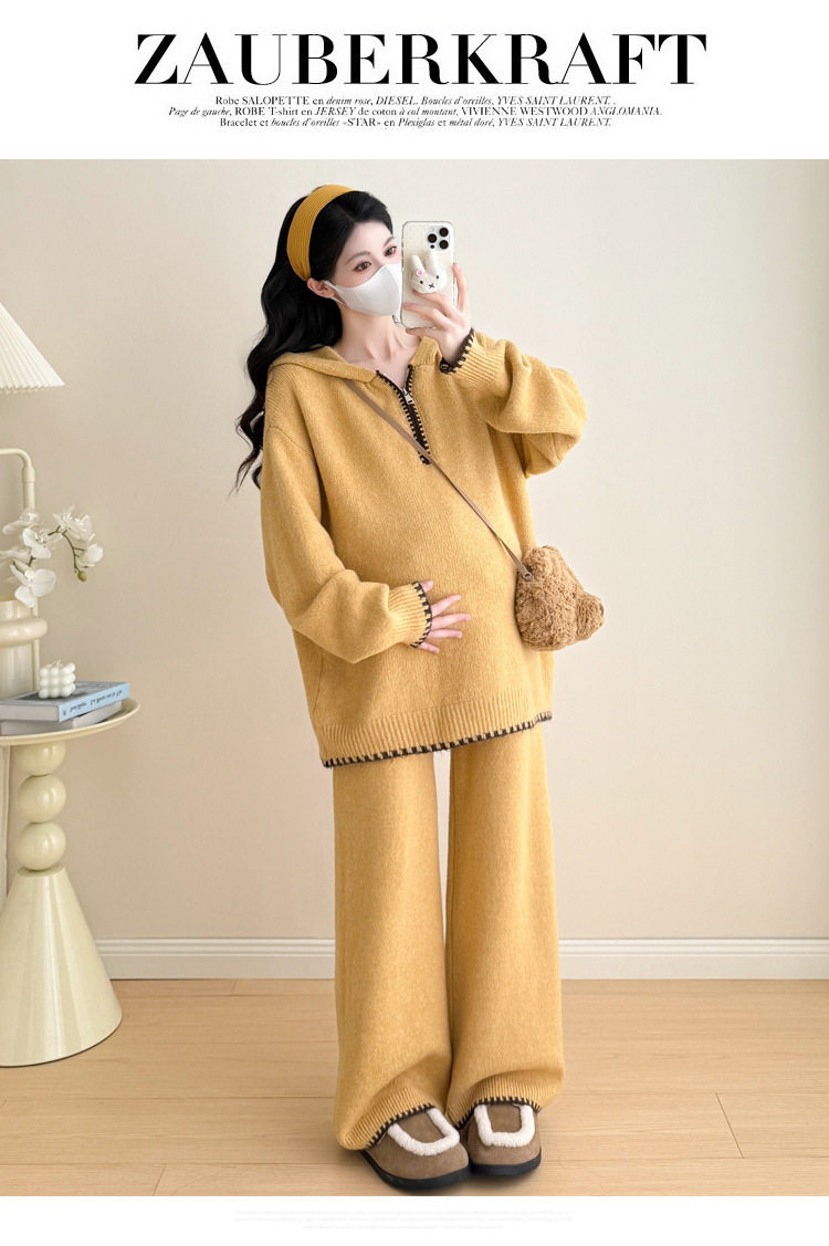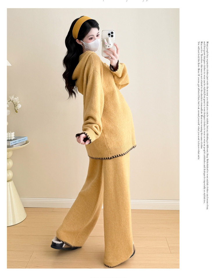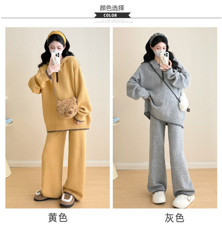 2025 Autumn and Winter Maternity Wear New Korean Style Temperament Hooded Pullover Knitted Top Maternity Wide Leg Pants Suit
