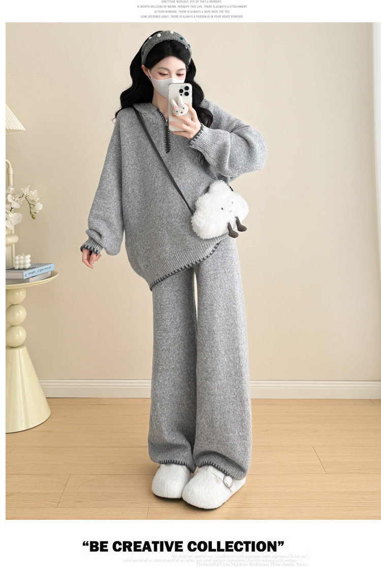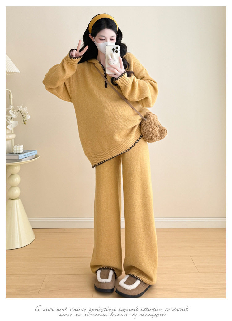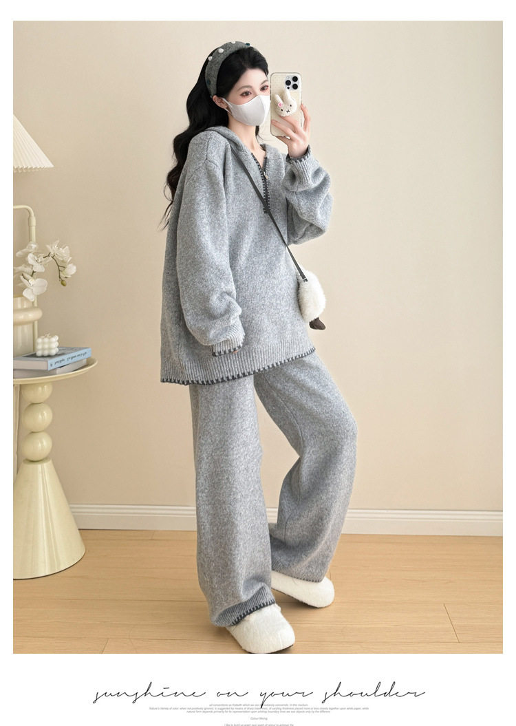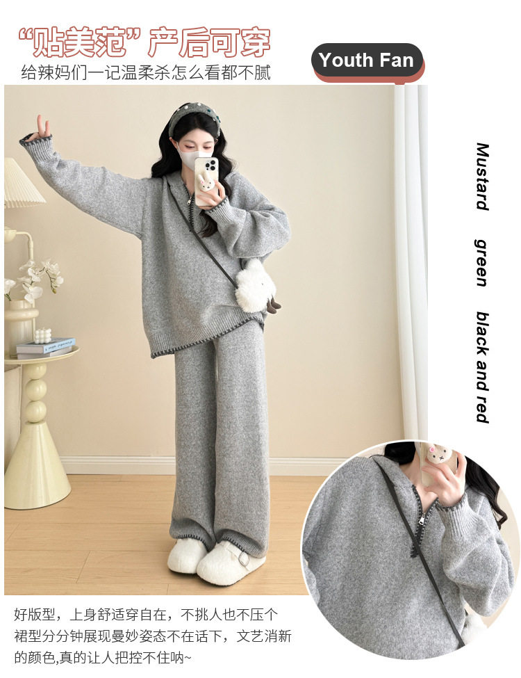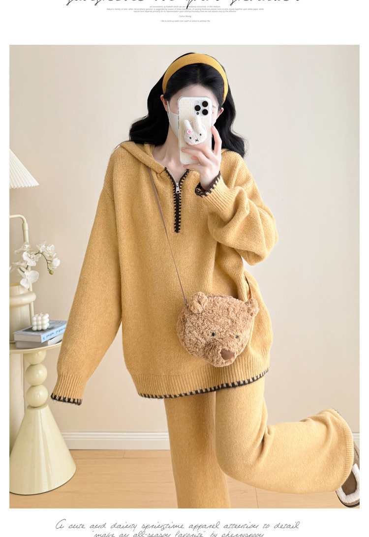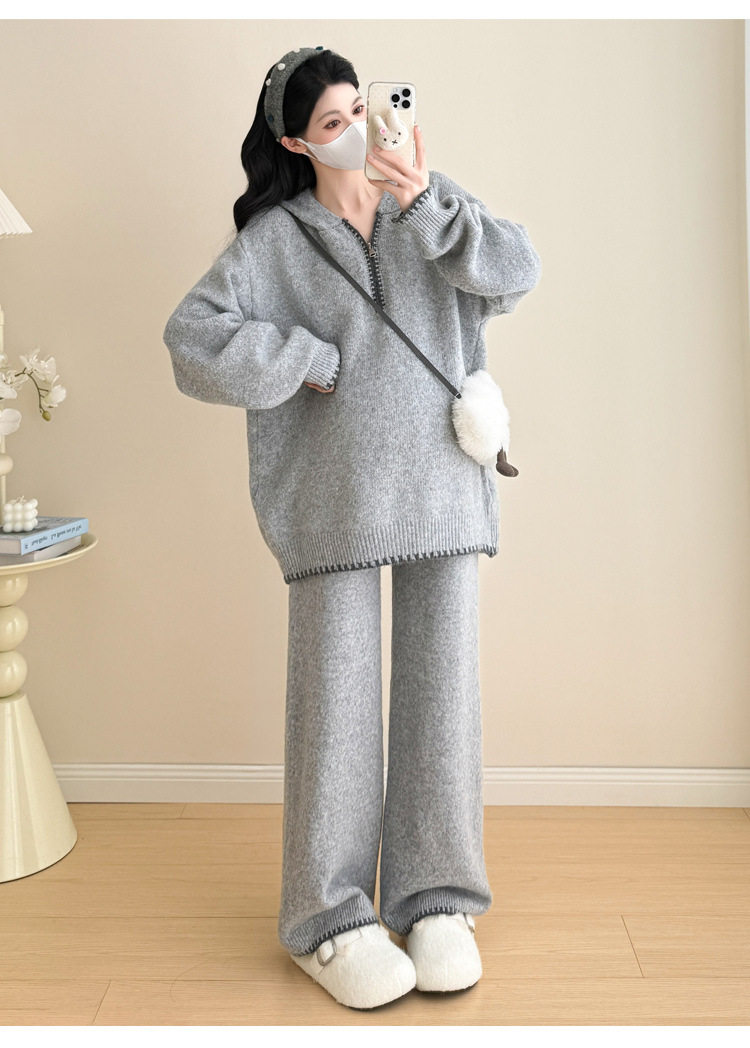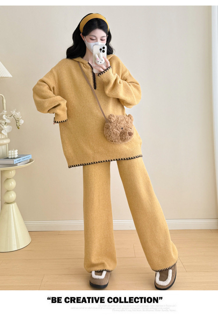 2025 Autumn and Winter Maternity Wear New Korean Style Temperament Hooded Pullover Knitted Top Maternity Wide Leg Pants Suit