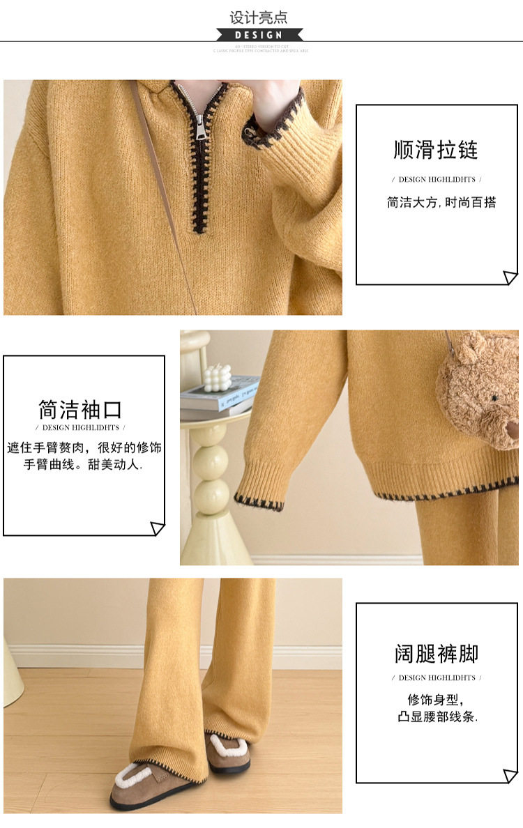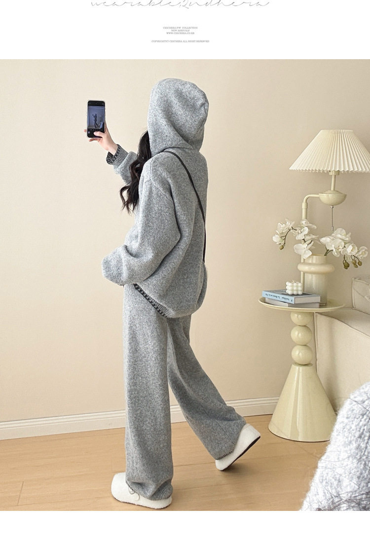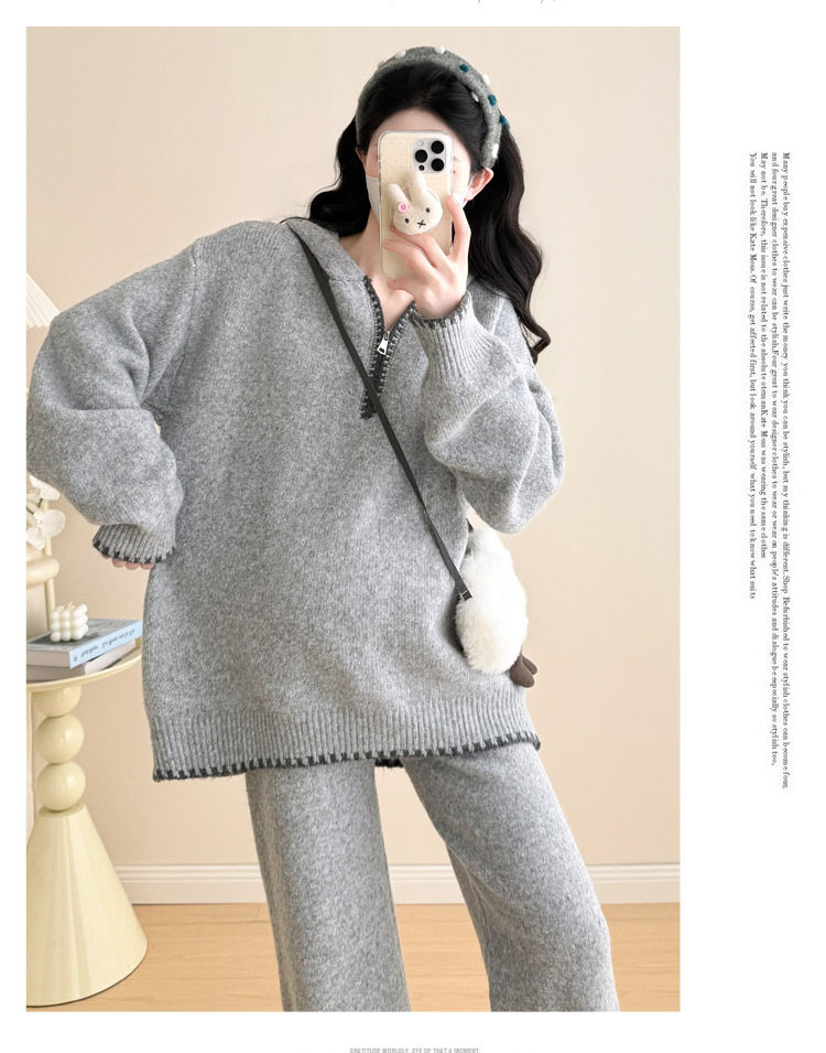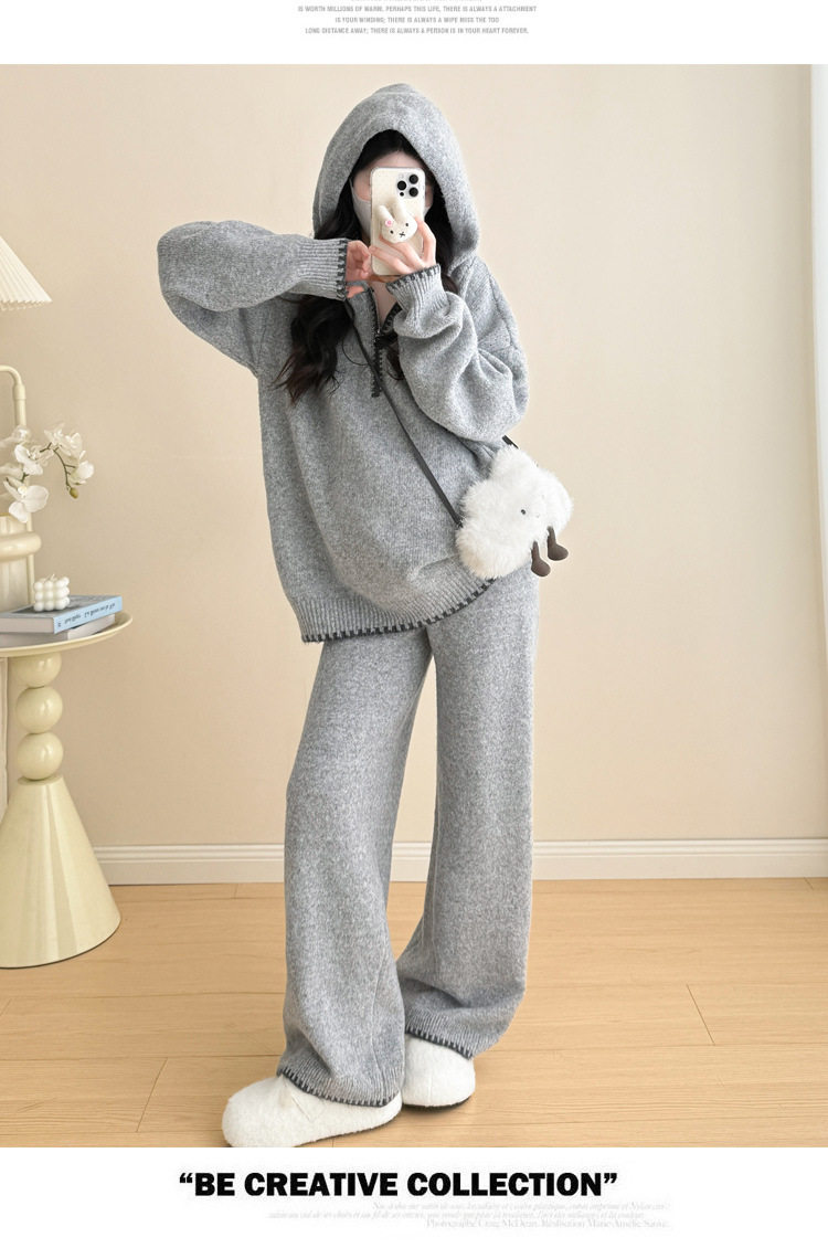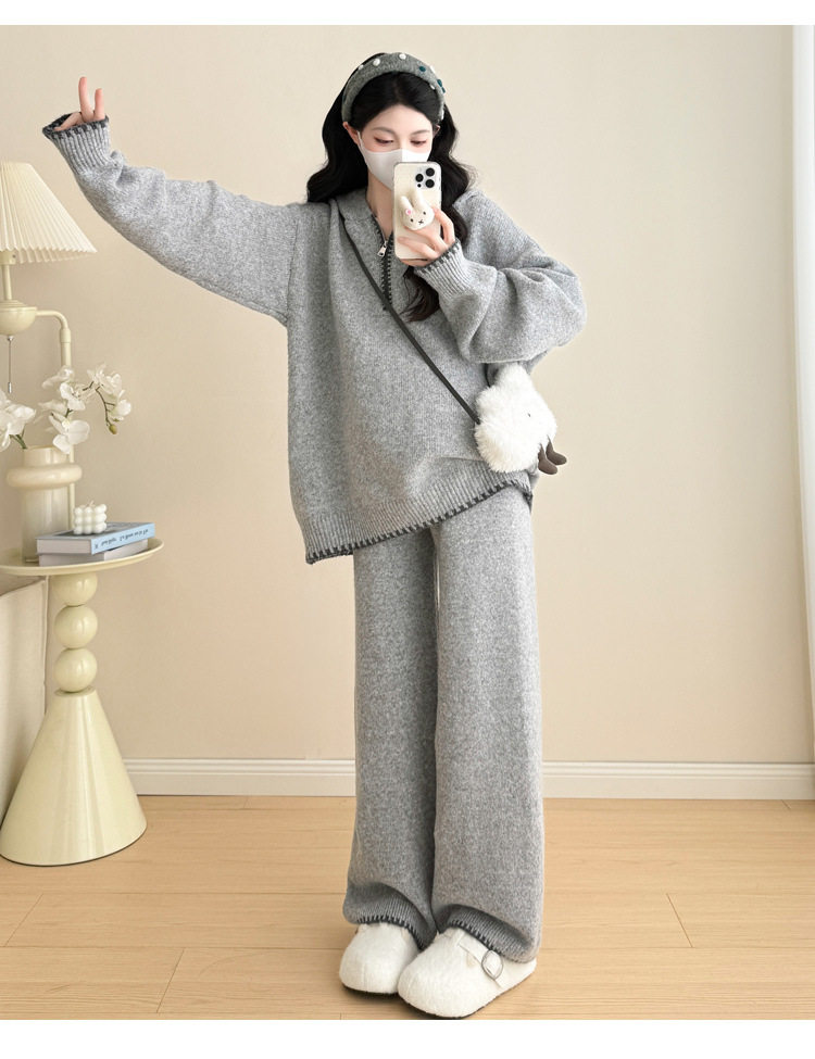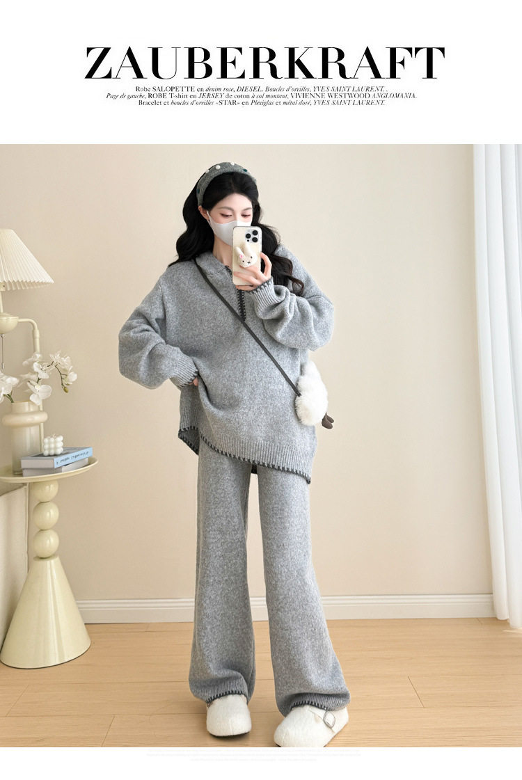 2025 Autumn and Winter Maternity Wear New Korean Style Temperament Hooded Pullover Knitted Top Maternity Wide Leg Pants Suit