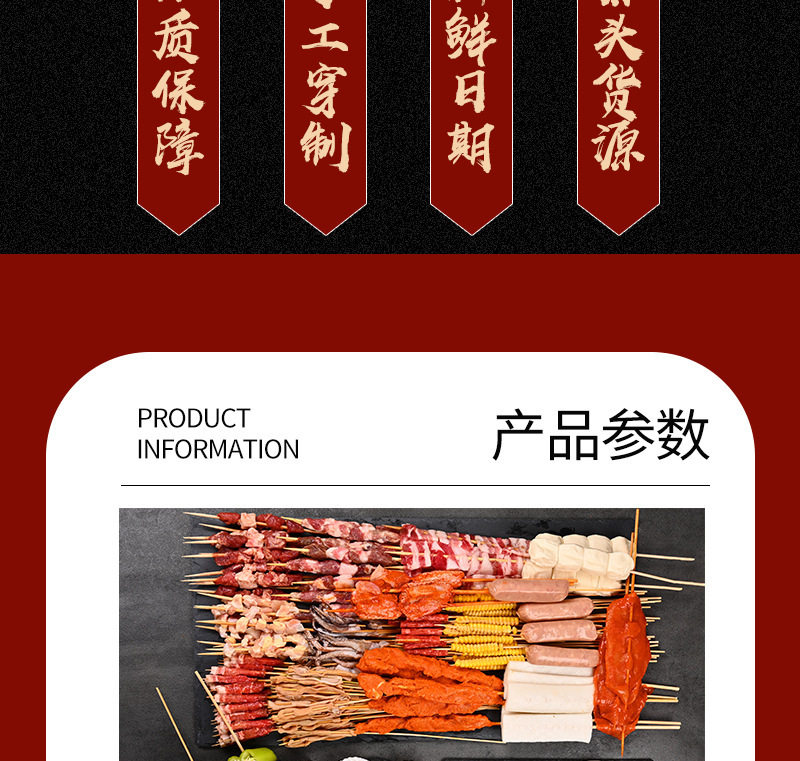 88 Types of Family Self-Service Barbecue Ingredients Skewers Wholesale Semi-Finished Fried Skewers Mutton Skewers Outdoor Skewers Material Package