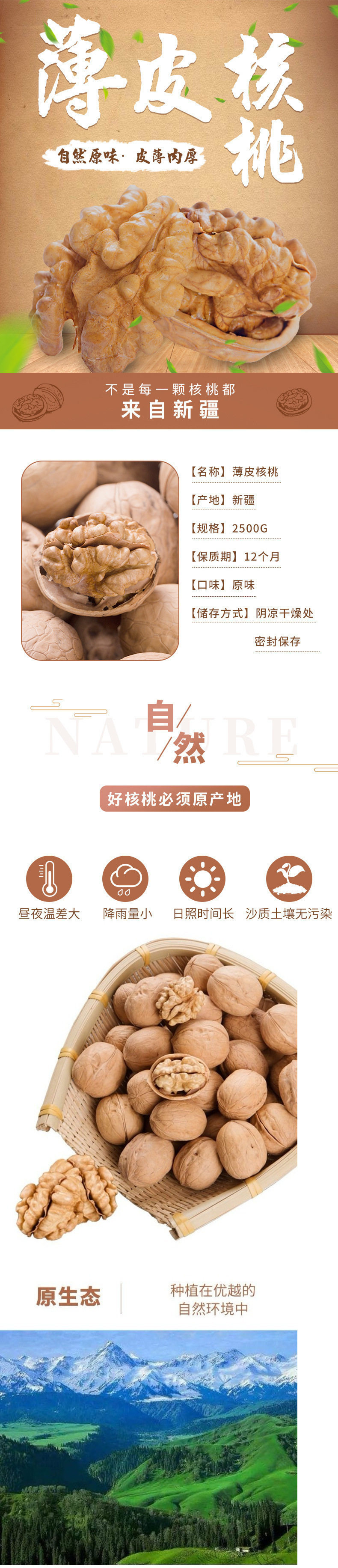 | Packaging specifications | Thin-skinned walnut tasting pack 100g,Selected thin-skinned large walnuts 1.0kg,Selected thin-skinned large walnuts 1.5kg,Selected thin-skinned large walnuts 2.5kg |