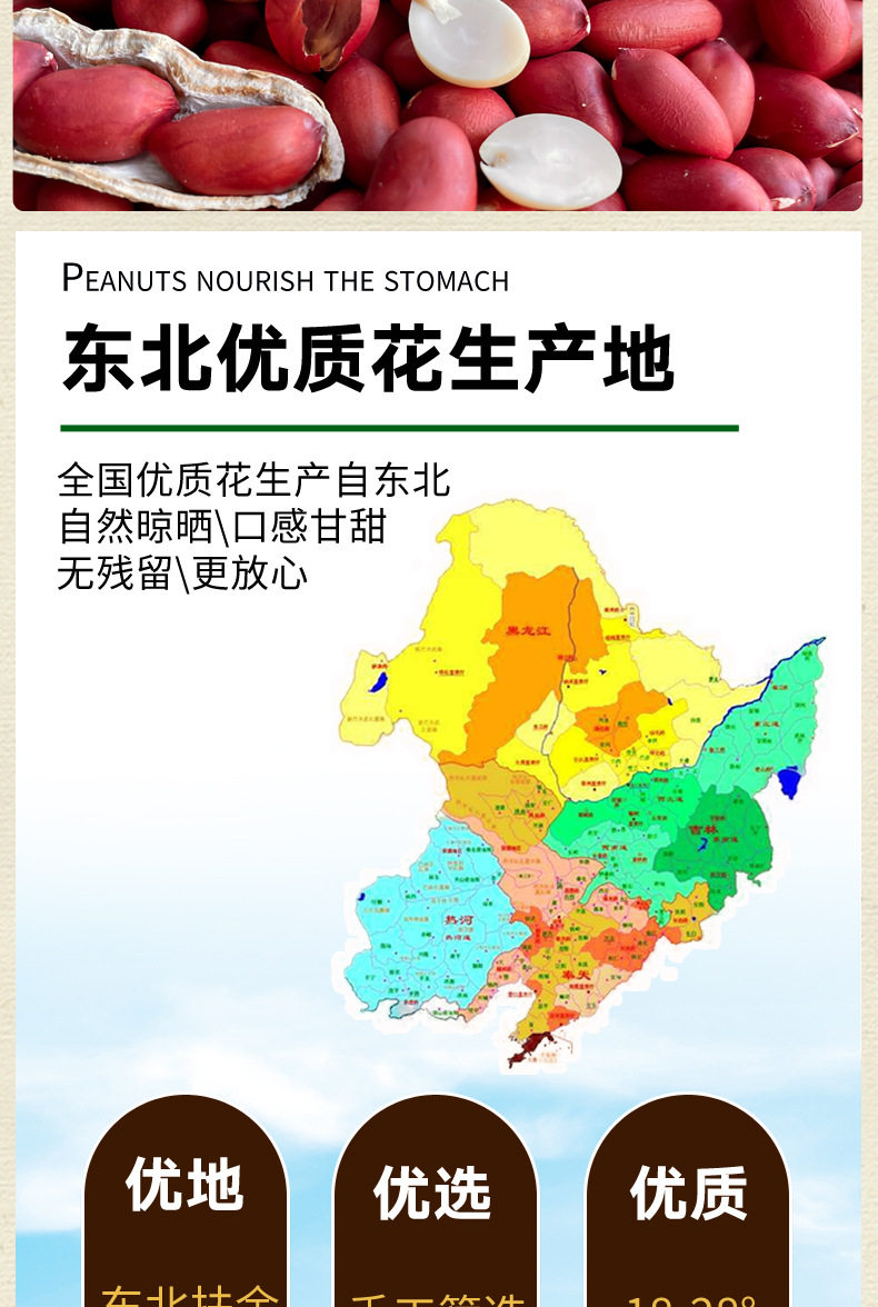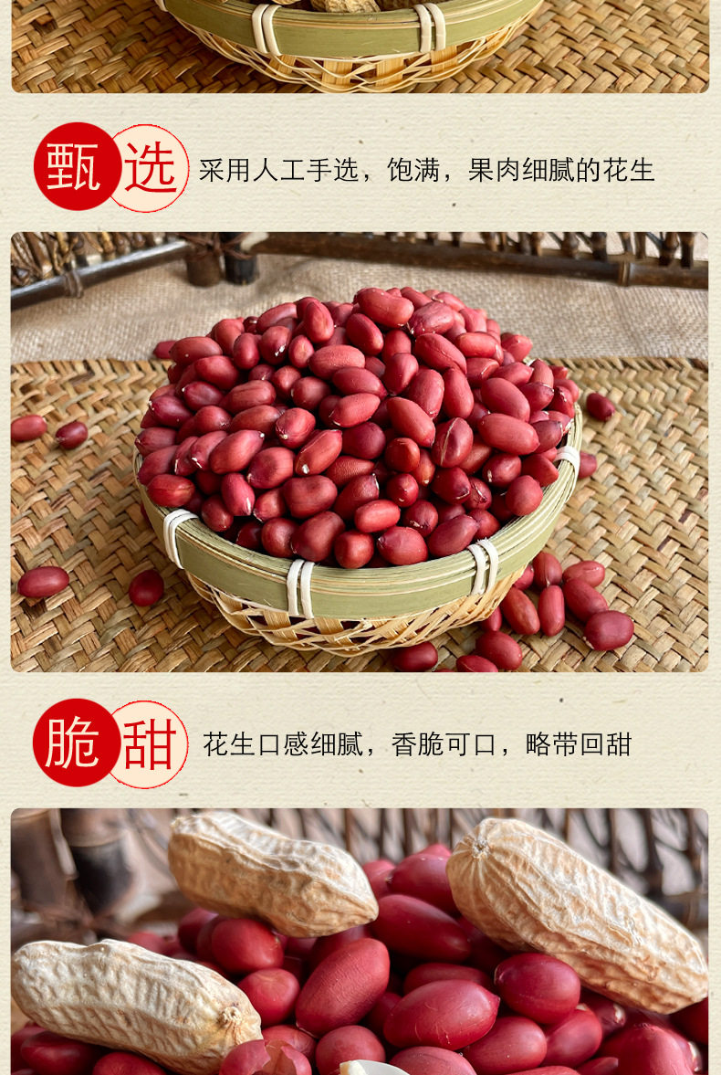 | Packaging specifications | Raw shelled red-skinned peanuts 0.5kg [taste],Raw shelled red-skinned peanuts【2.5kg】get half a catty for a total of 2.75kg,Raw shelled red-skinned peanuts【1.5kg】,Raw shelled red-skinned peanuts【1.0kg】,[level 1] shelled red-skinned peanuts 2.5kg [free half a catty, total 2.75kg ],【level 1】red-skinned peanuts with shells 1.5kg,【level 1】red-skinned peanuts with shells 1.0kg,(fried in a large pot) red-skinned peanuts 2.5kg [free half a catty, total 2.75kg ],(fried in a large pot) red-skinned peanuts 1.5kg,(fried in a large pot) red-skinned peanuts 1.0kg,[level 1] big pot fried red-skinned peanuts 2.5kg [free half a catty, total 2.75kg ],[level 1] stir-fried red-skinned peanuts in a large pot 1.5kg,[level 1] stir-fried red-skinned peanuts in a large pot 1.0kg,(hand-peeled by farmers) red-skinned peanuts 2.5kg,(hand-peeled by farmers) red-skinned peanuts 1.5kg,(hand-peeled by farmers) red-skinned peanuts 1.0kg,[level 1] longgu no. 2 red skin peanuts 2.5kg,[level 1] longgu no. 2 red skin peanuts 1.5kg,[level 1] longgu no. 2 red skin peanuts 1.0kg,(low oil and sweet) red-skinned peanuts 2.5kg,(low oil and sweet) red-skinned peanuts 1.5kg,(low oil and sweet) red-skinned peanuts 1.0kg |