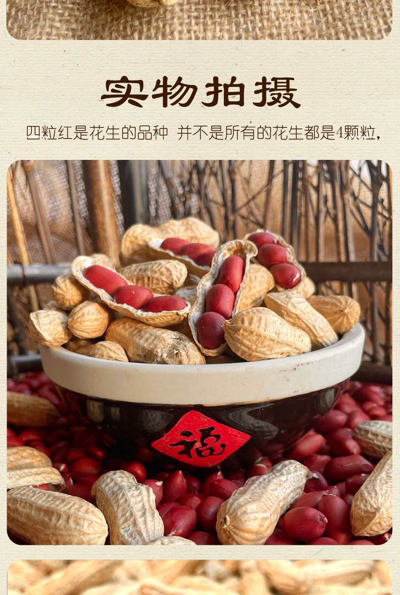 Northeast Red-Skinned Peanuts, 25 Years Old, Farm-Fresh, Shelled, Raw and Cooked, Four Red Peanuts, Self-Grown, Sun-Dried, Roasted, Original Flavor