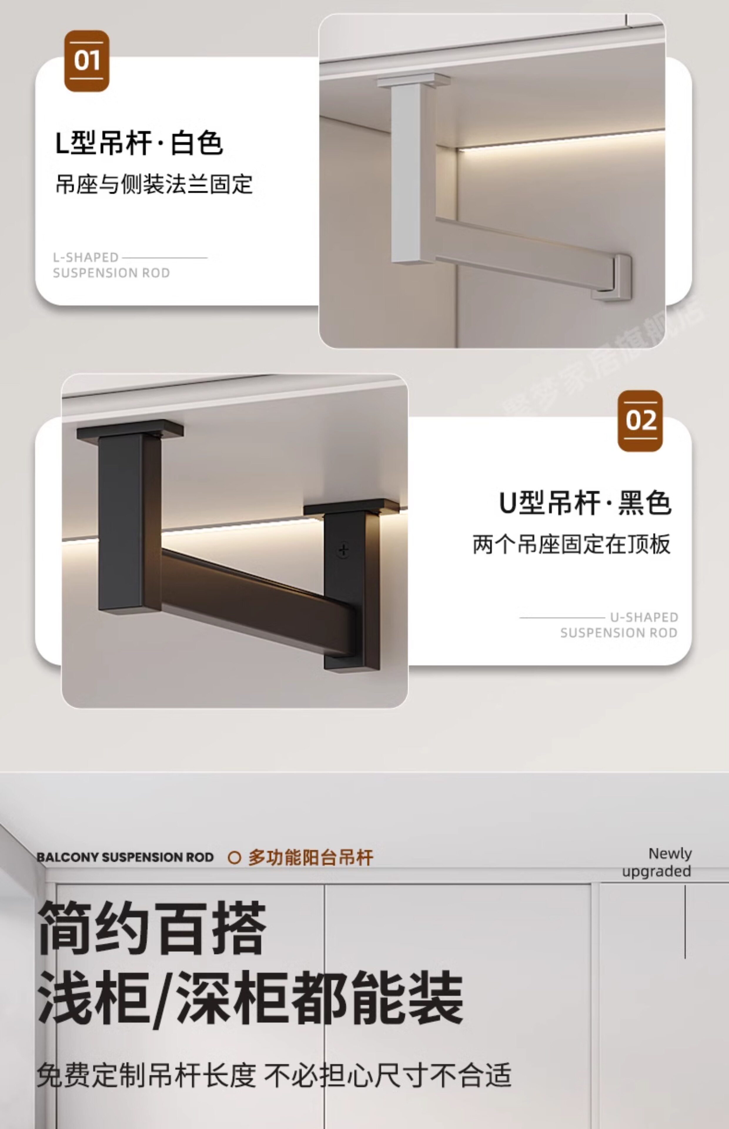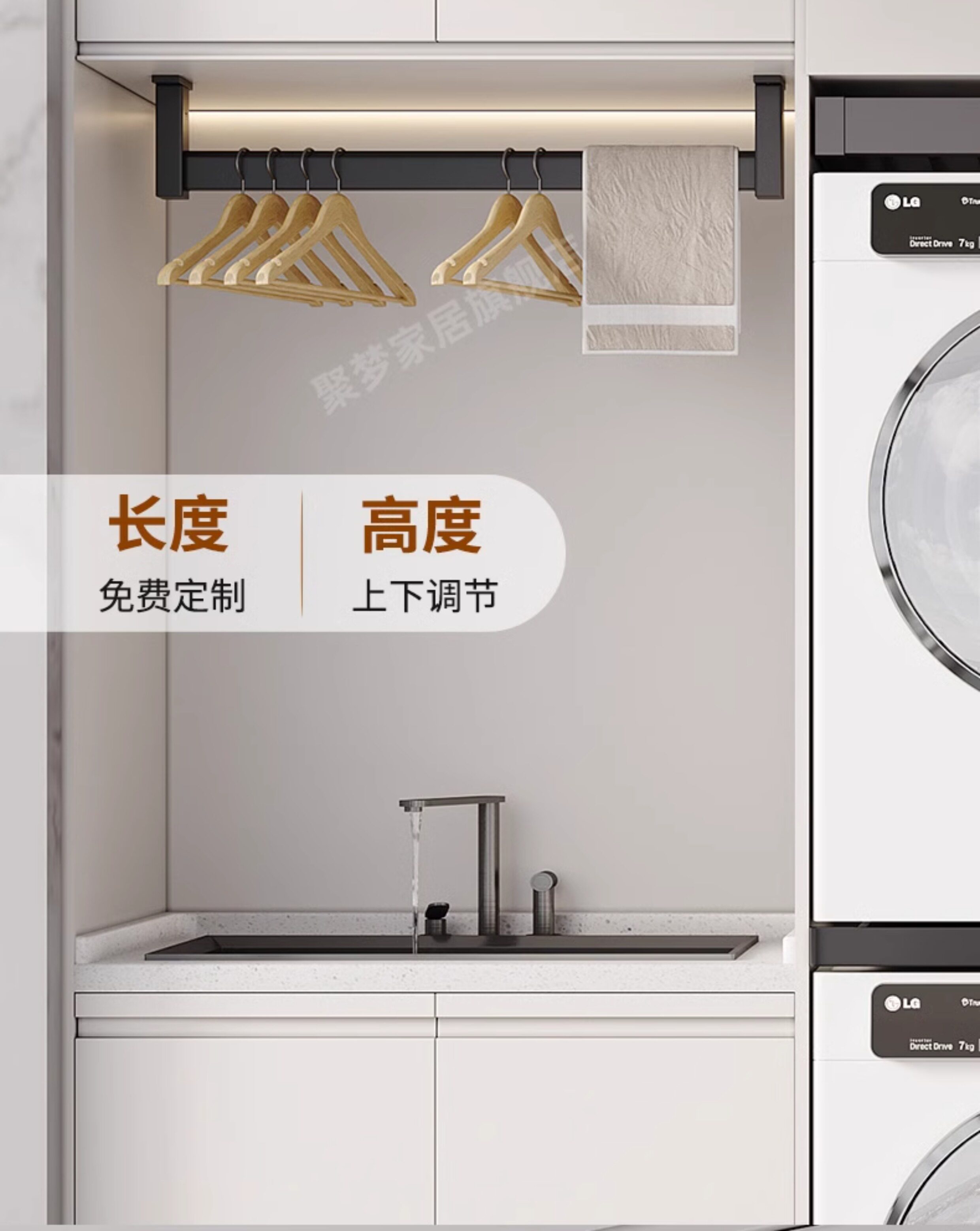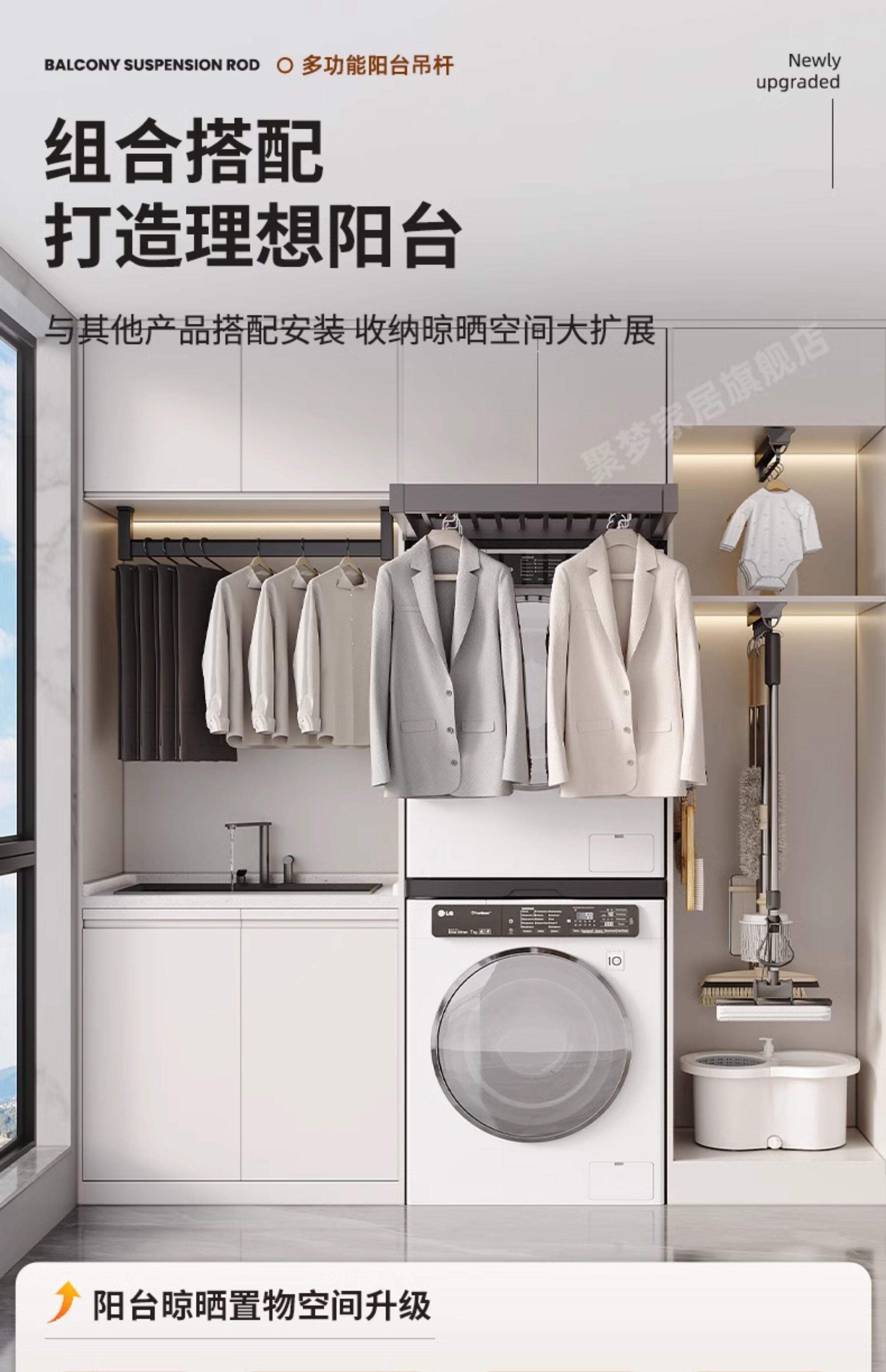 Balcony Hanging Rod under the Wall Cabinet, Towel Bar under the Mirror Cabinet, Washing Machine Pull-Out Clothes Drying Rack, Top-Mounted Clothes Hanging Rod, Vertical Clothes Rail