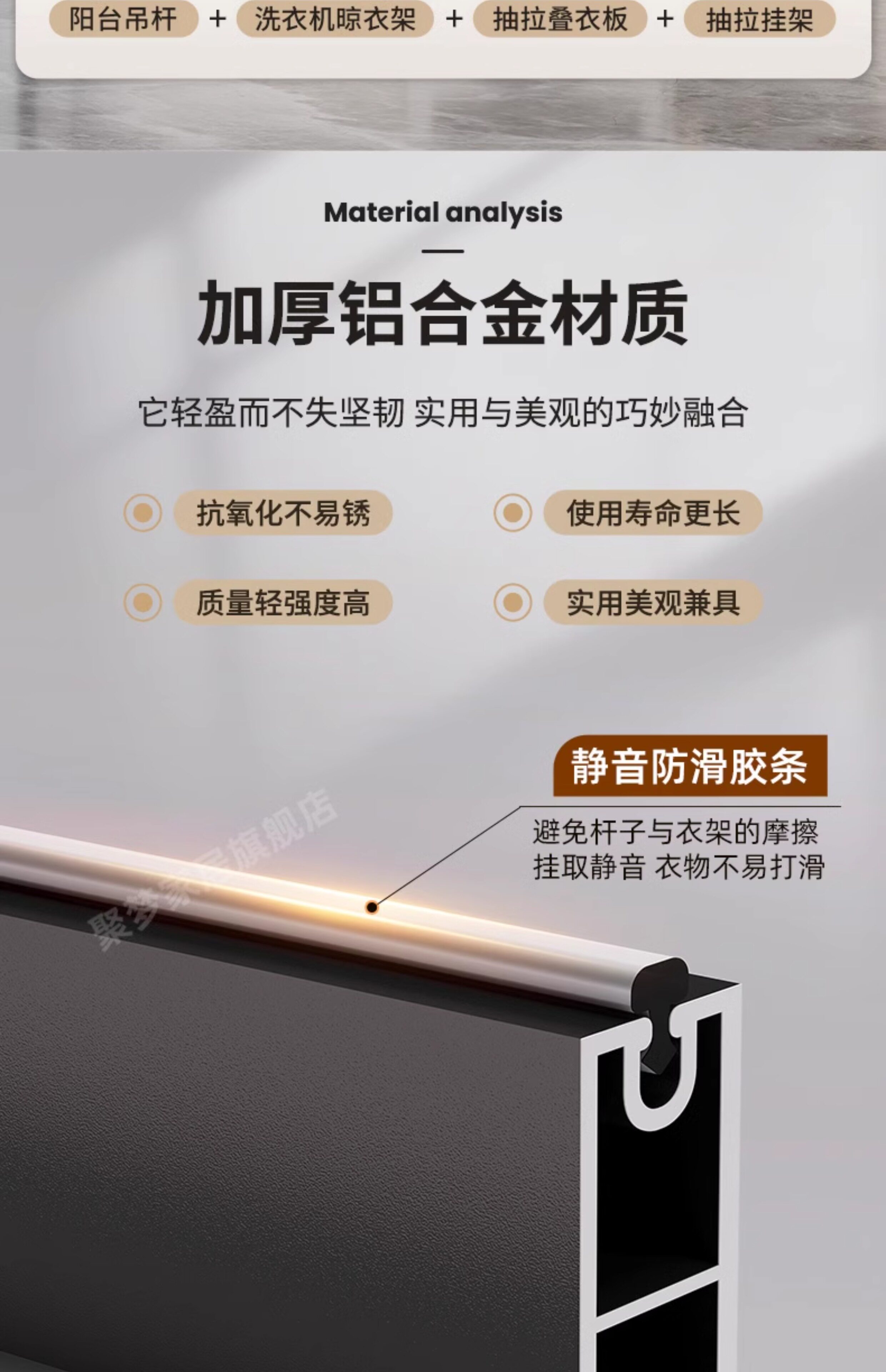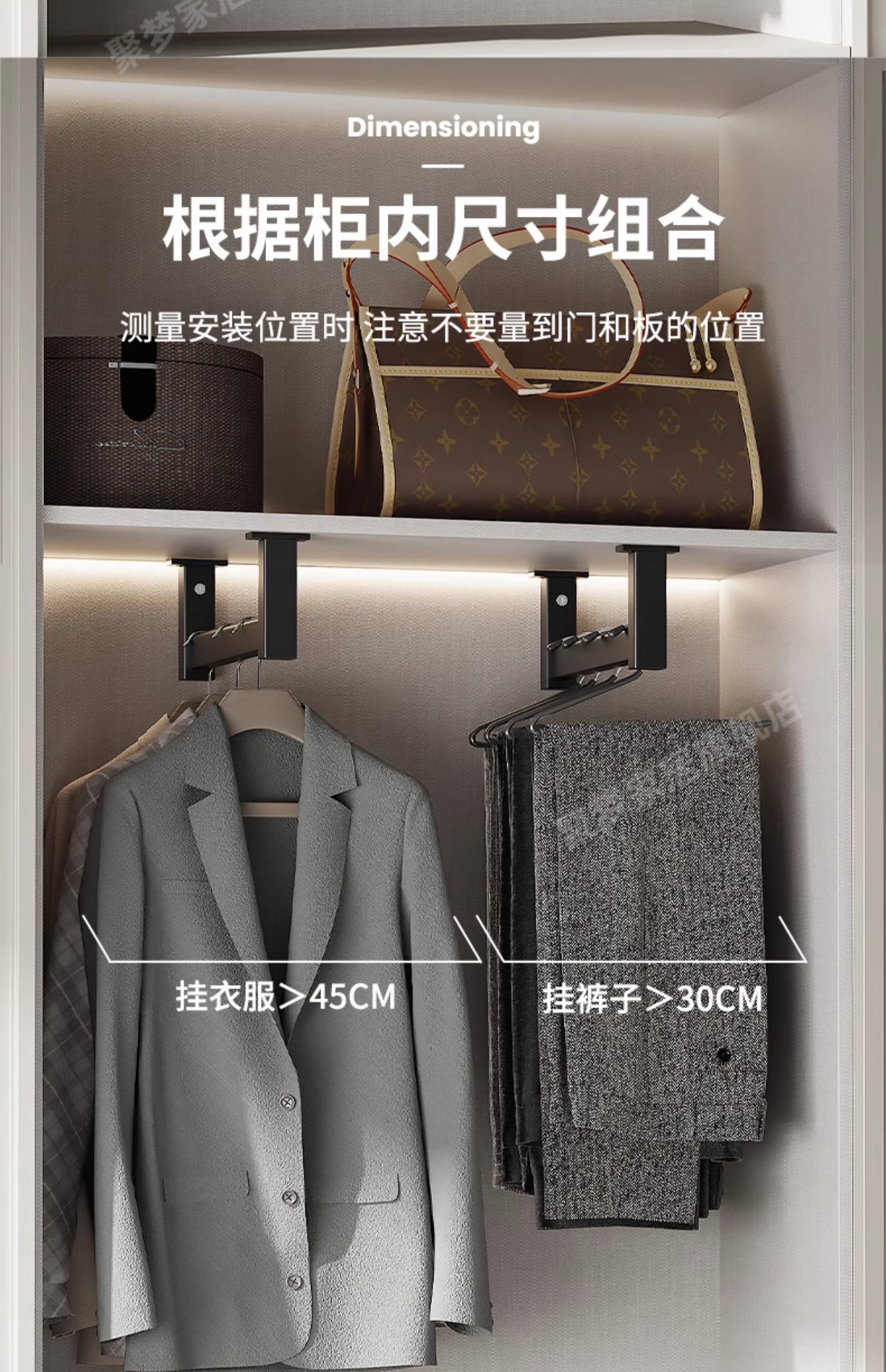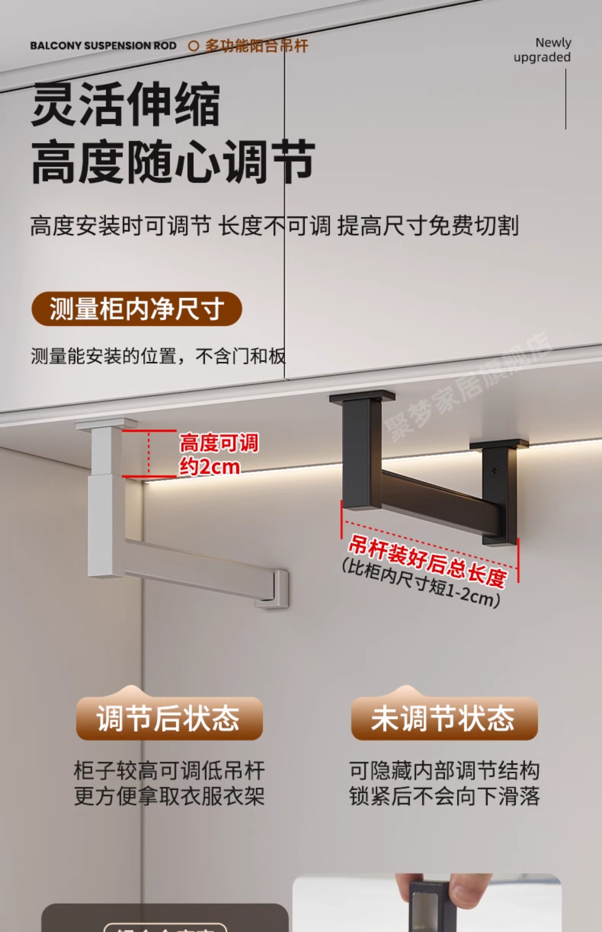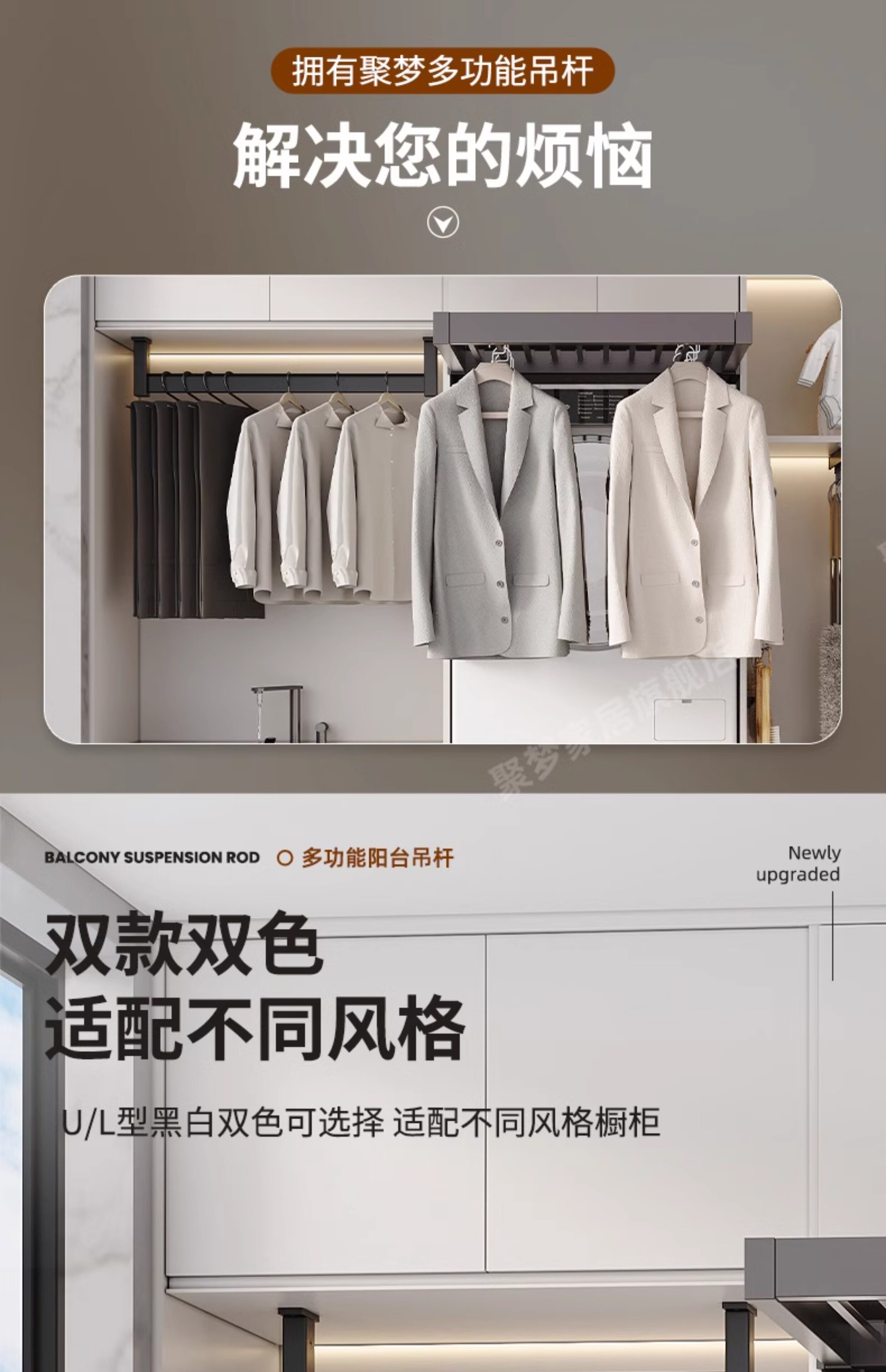 Balcony Hanging Rod under the Wall Cabinet, Towel Bar under the Mirror Cabinet, Washing Machine Pull-Out Clothes Drying Rack, Top-Mounted Clothes Hanging Rod, Vertical Clothes Rail