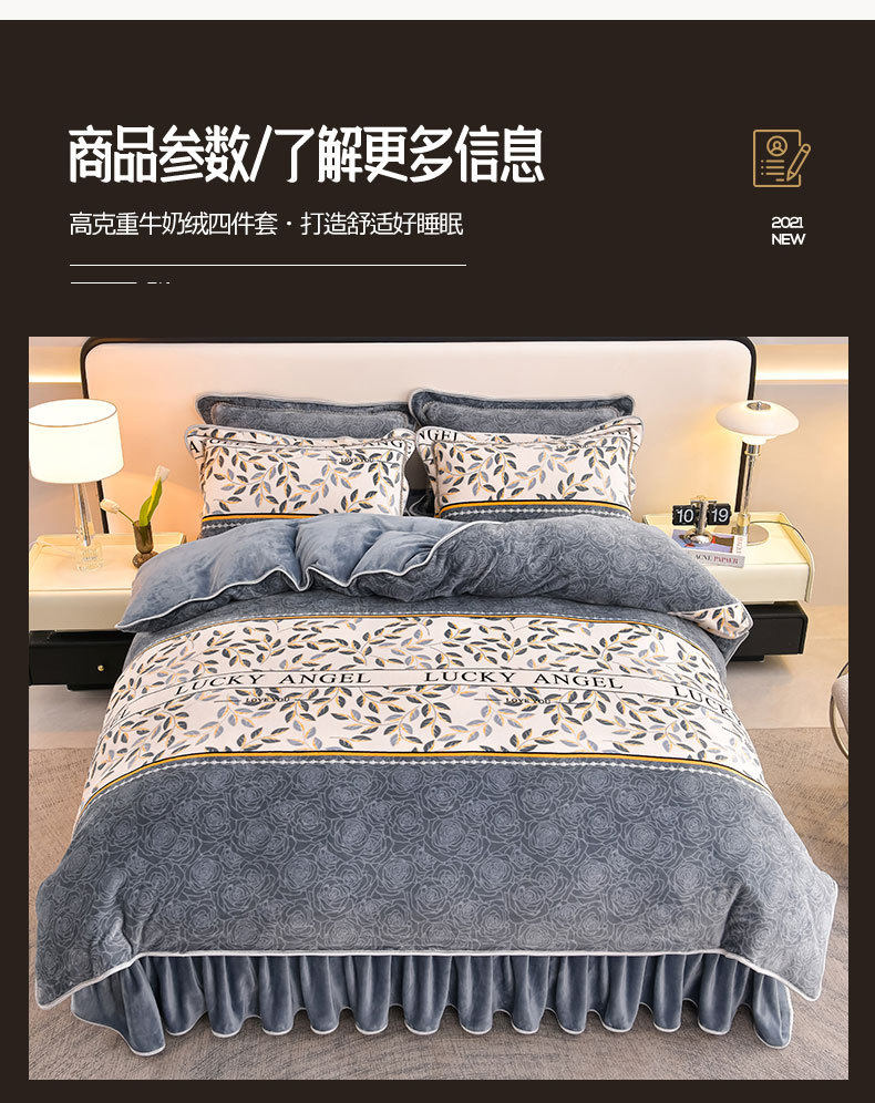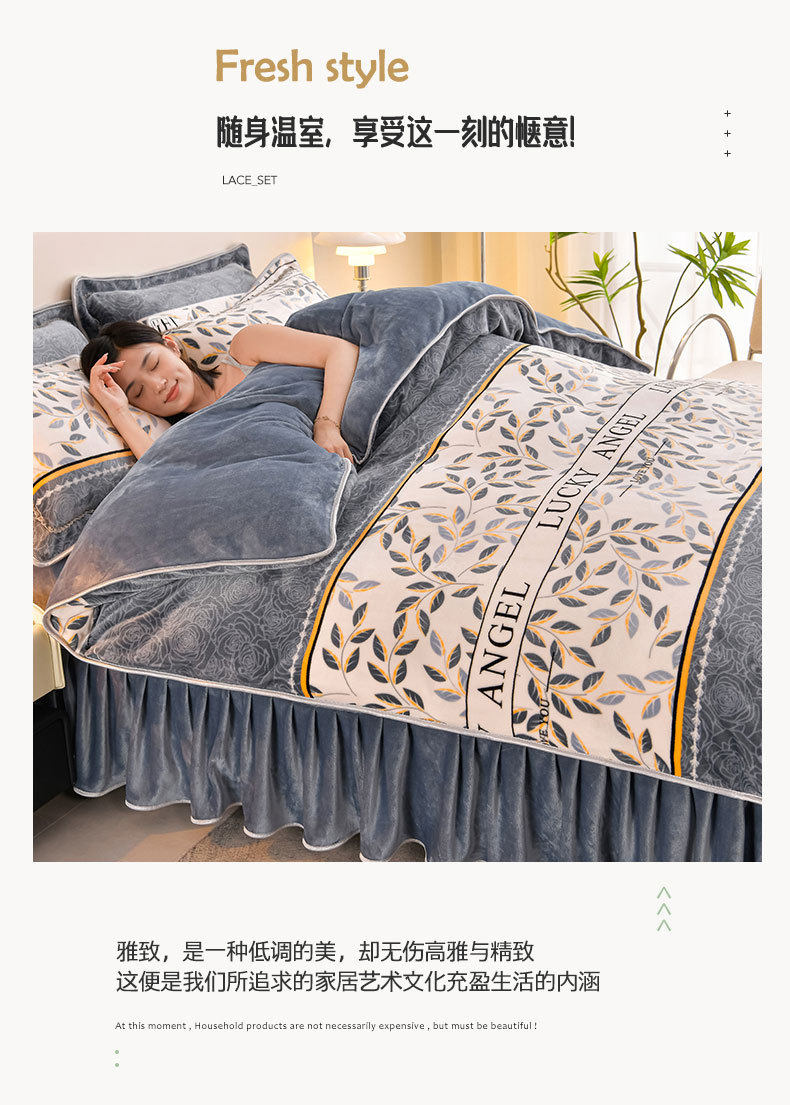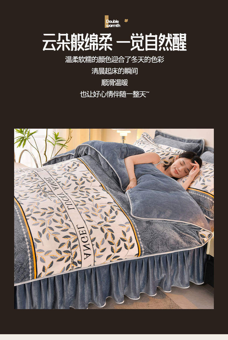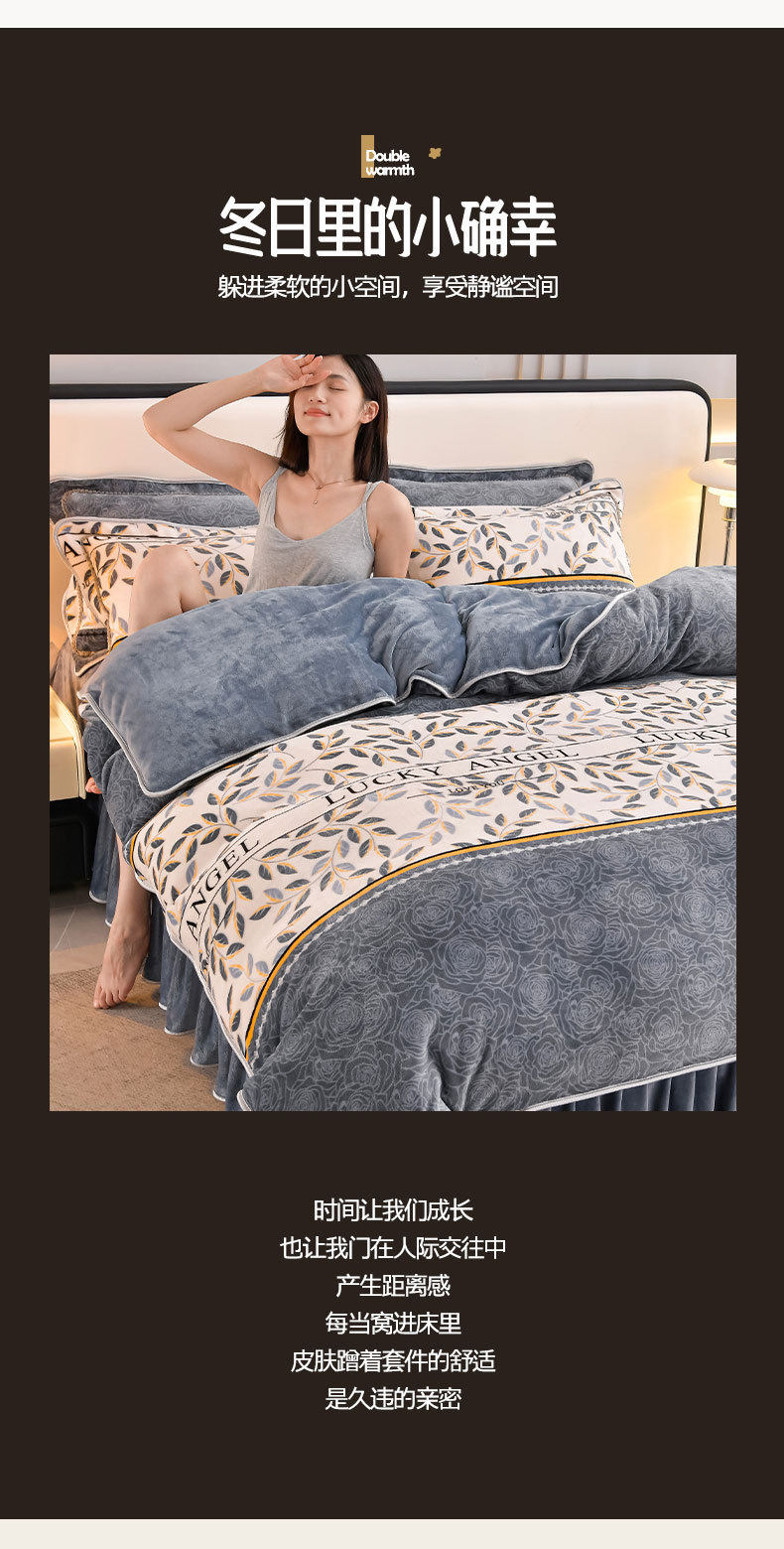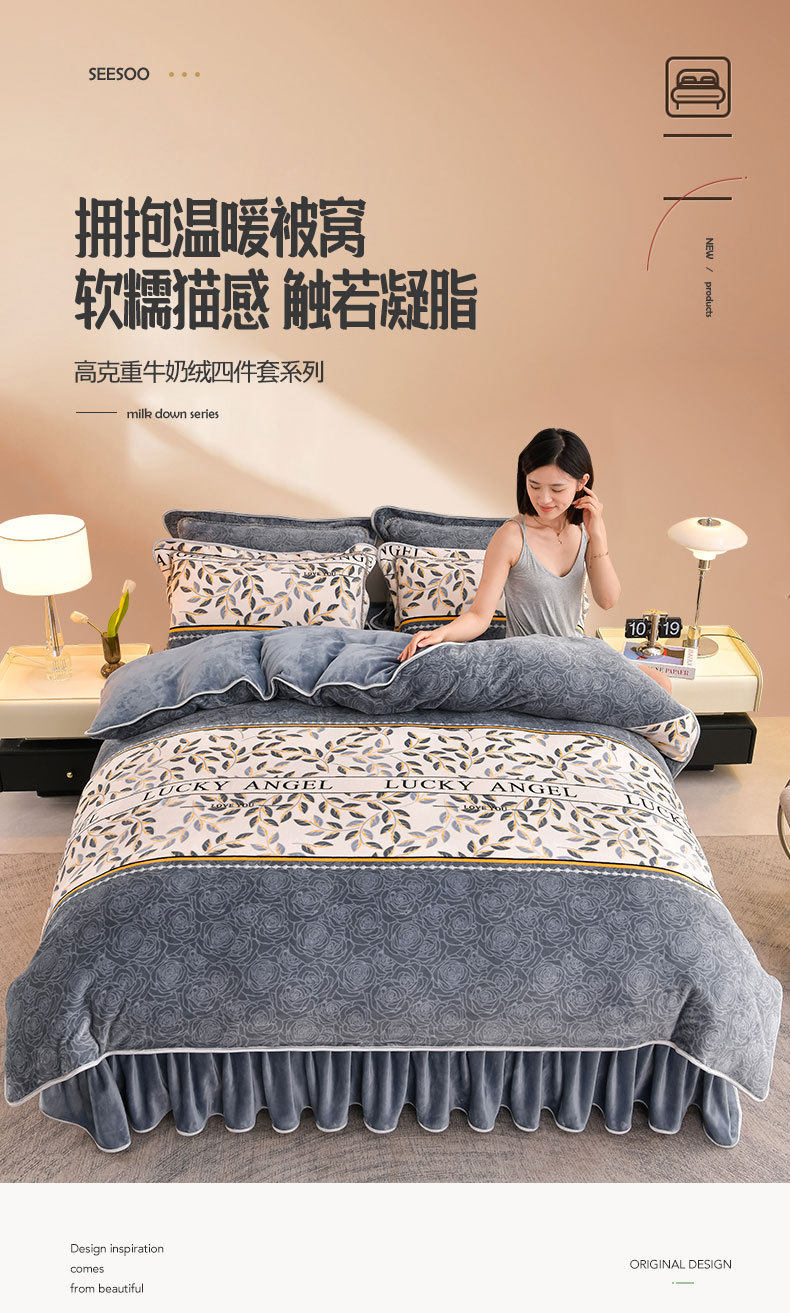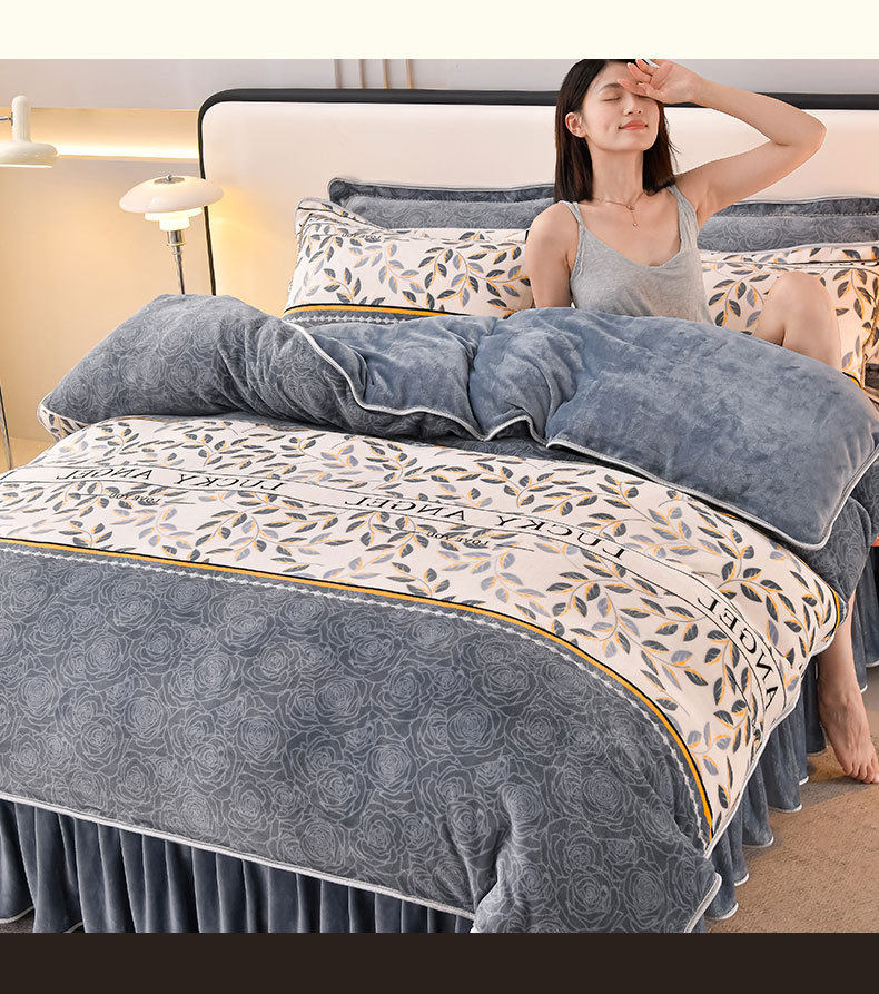 Winter Thickeneded Milk Velvet Four-Piece Bed Skirt Style Warm Quilt Cover Bed Sheets Double-Sided Velvet Three-Piece Set Fleece-Lined Four-Piece Set