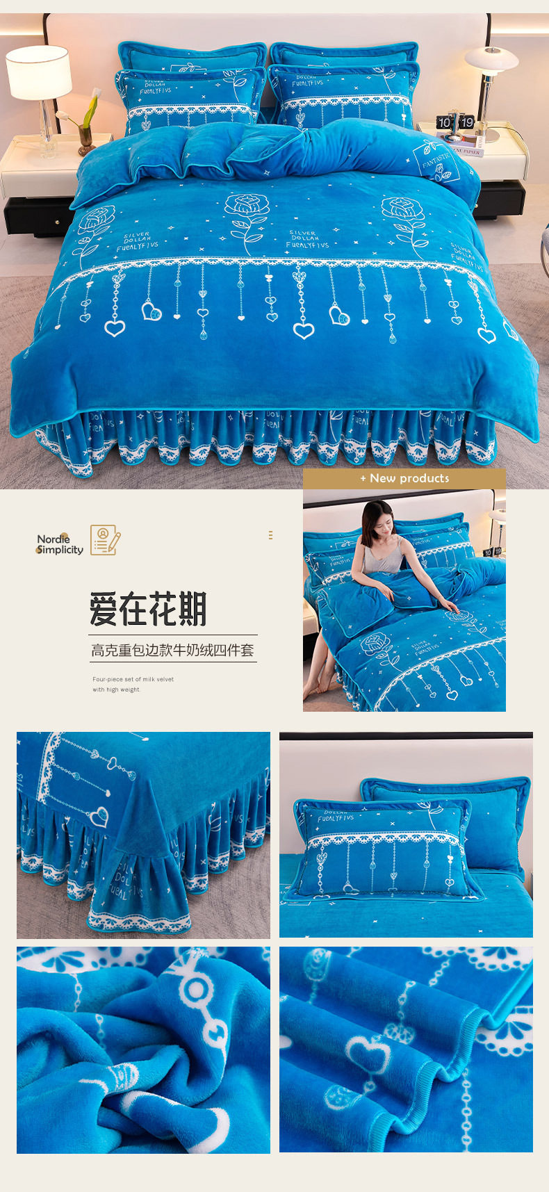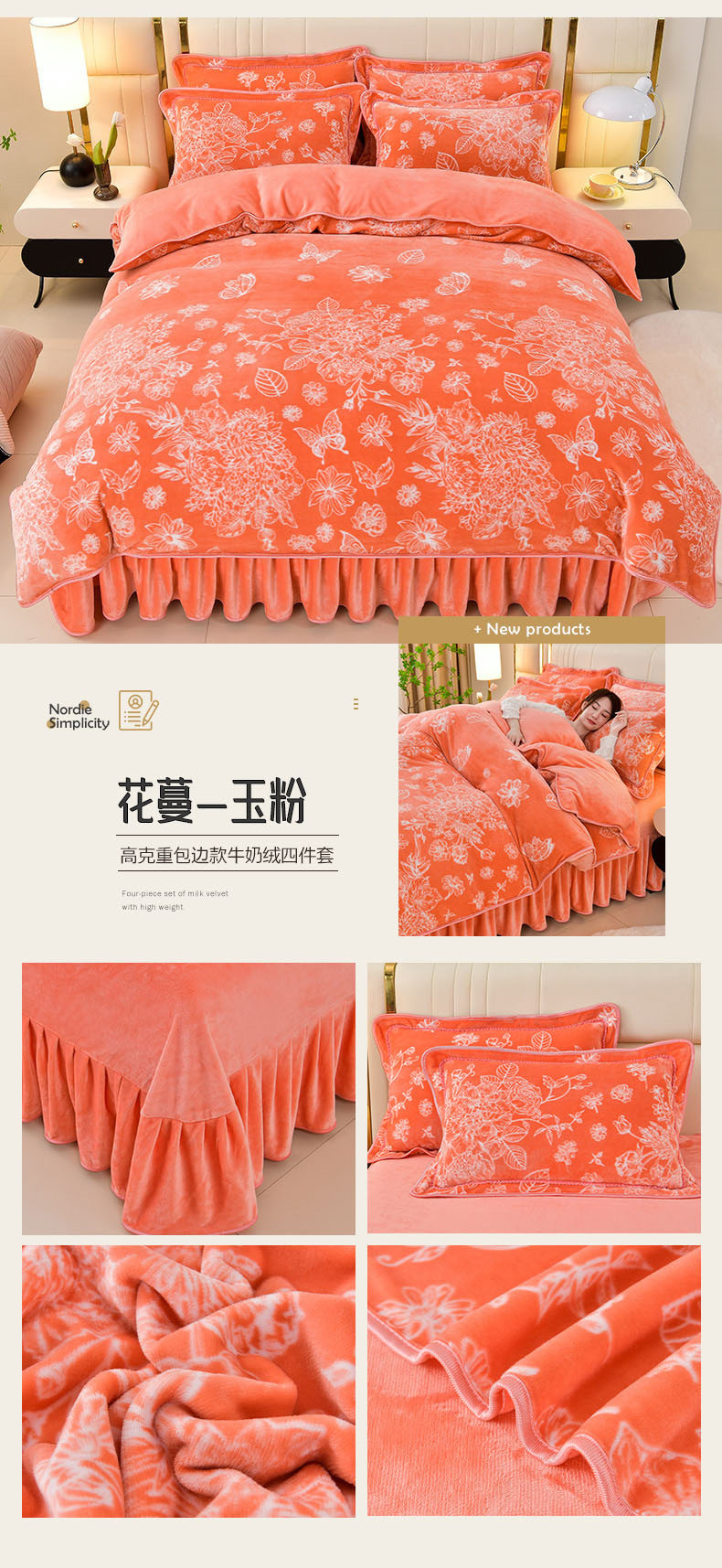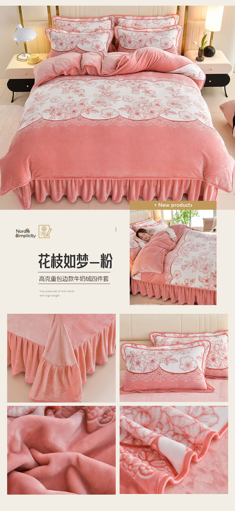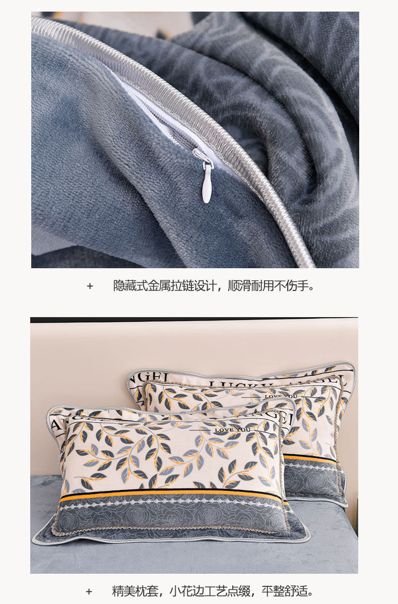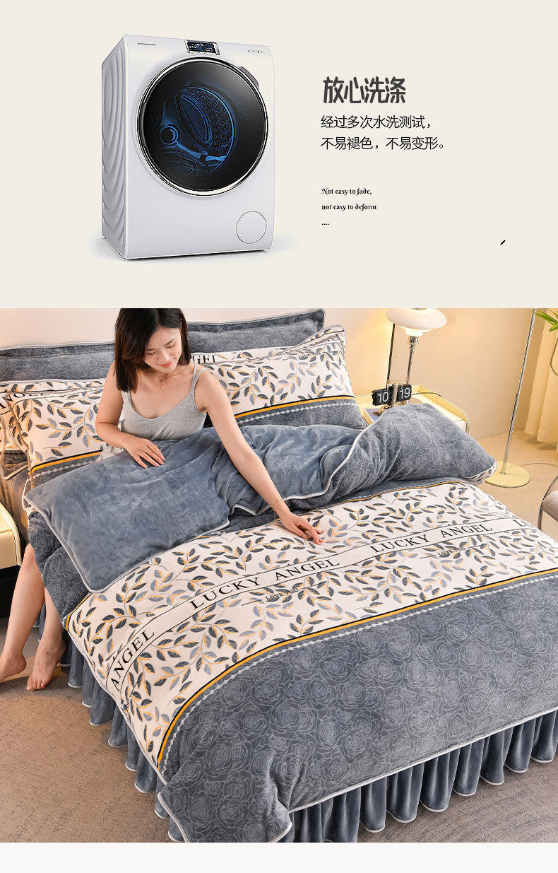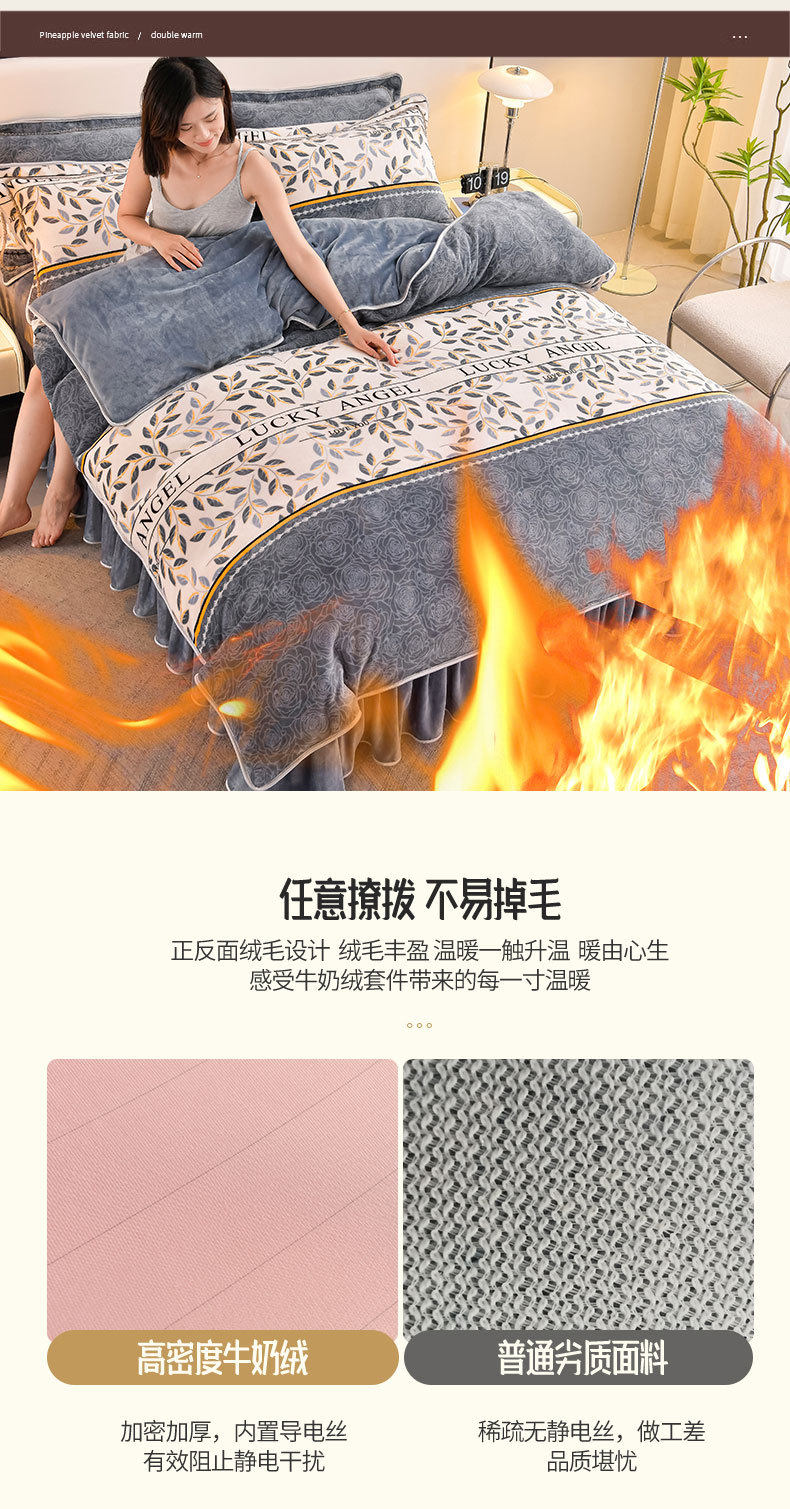 Winter Thickeneded Milk Velvet Four-Piece Bed Skirt Style Warm Quilt Cover Bed Sheets Double-Sided Velvet Three-Piece Set Fleece-Lined Four-Piece Set