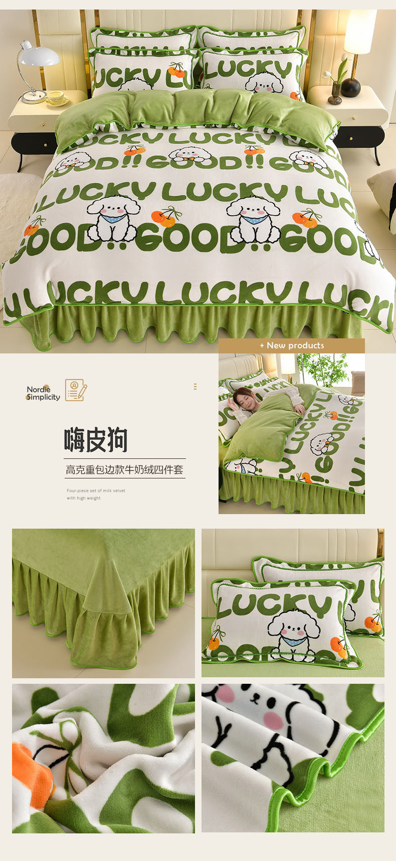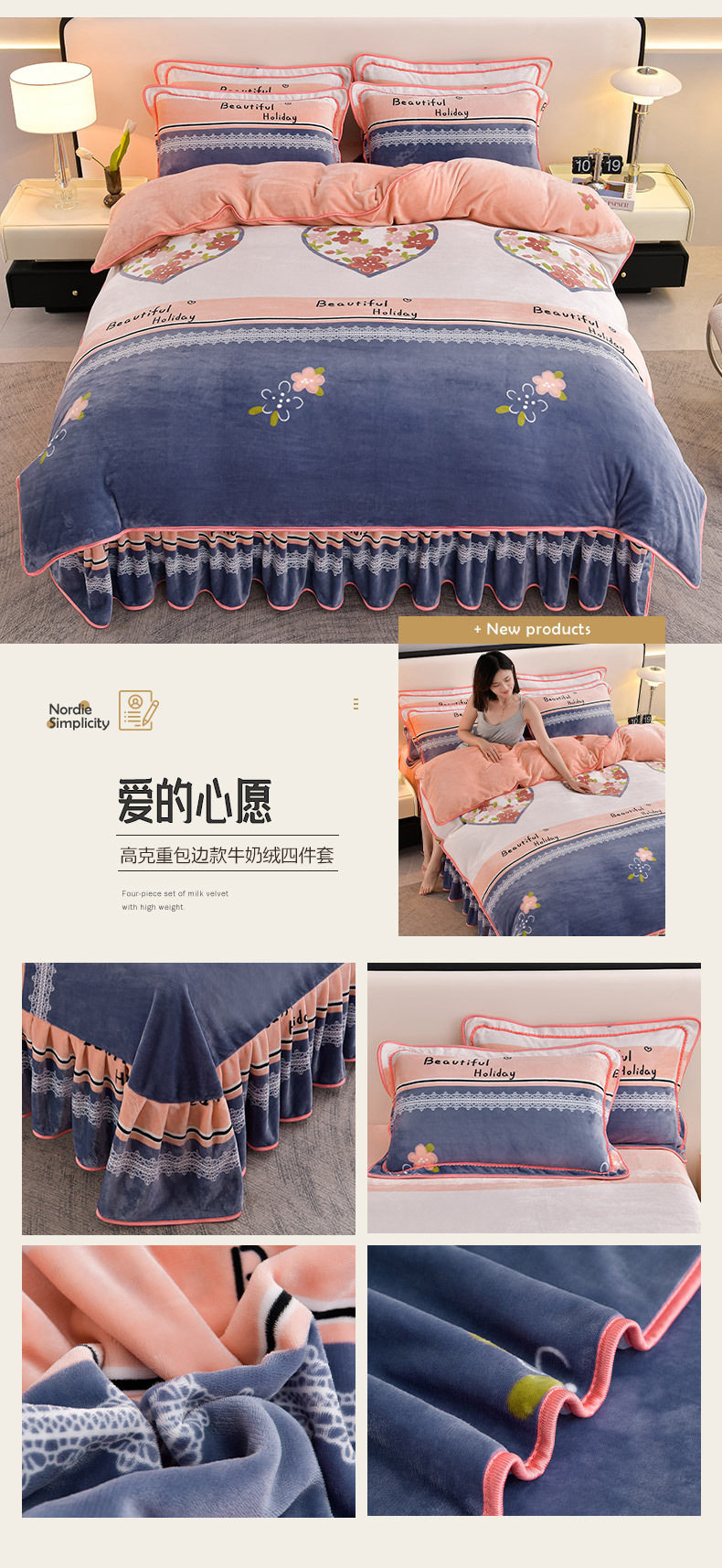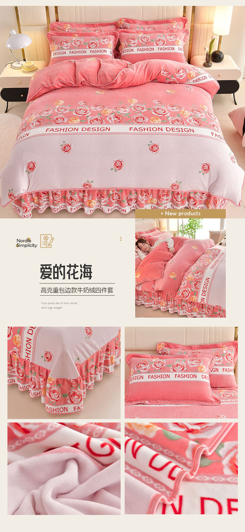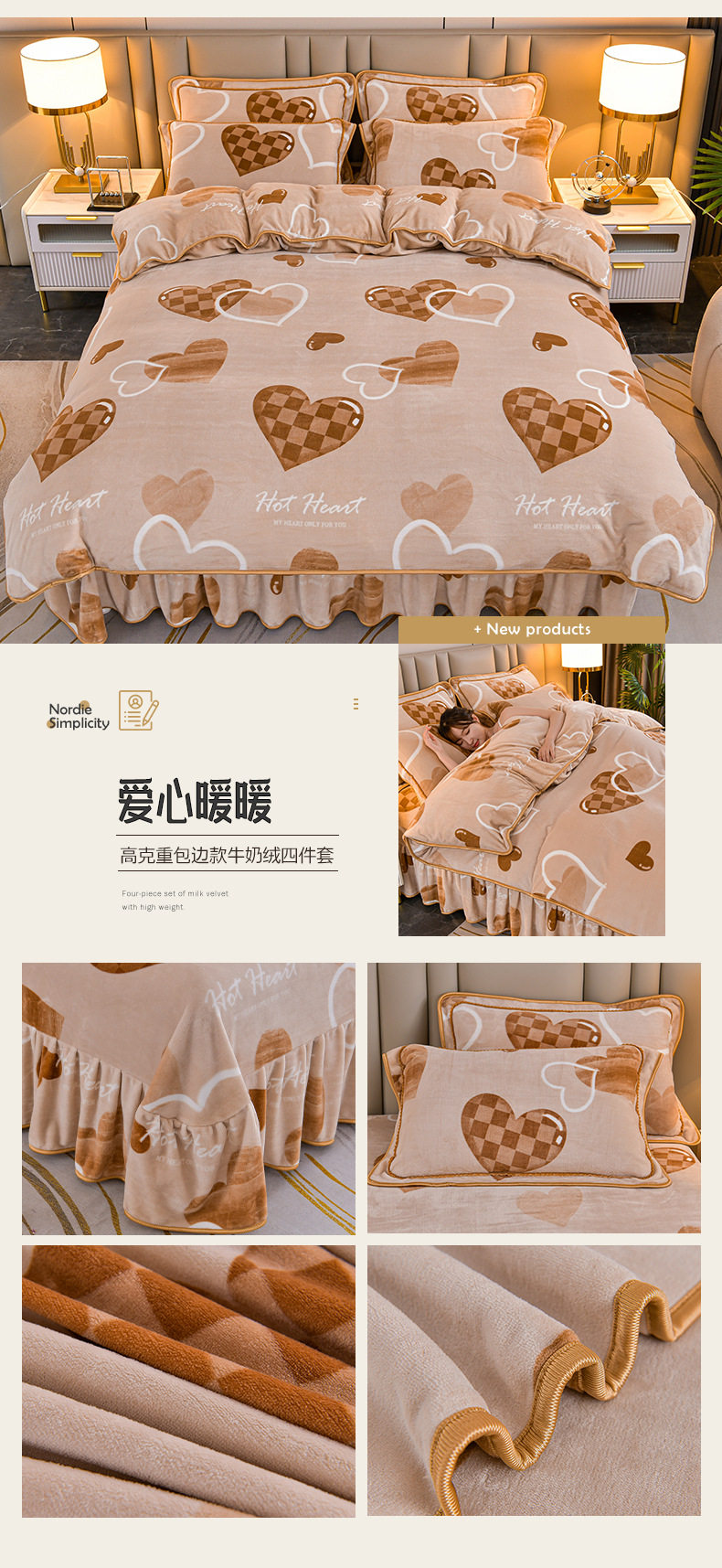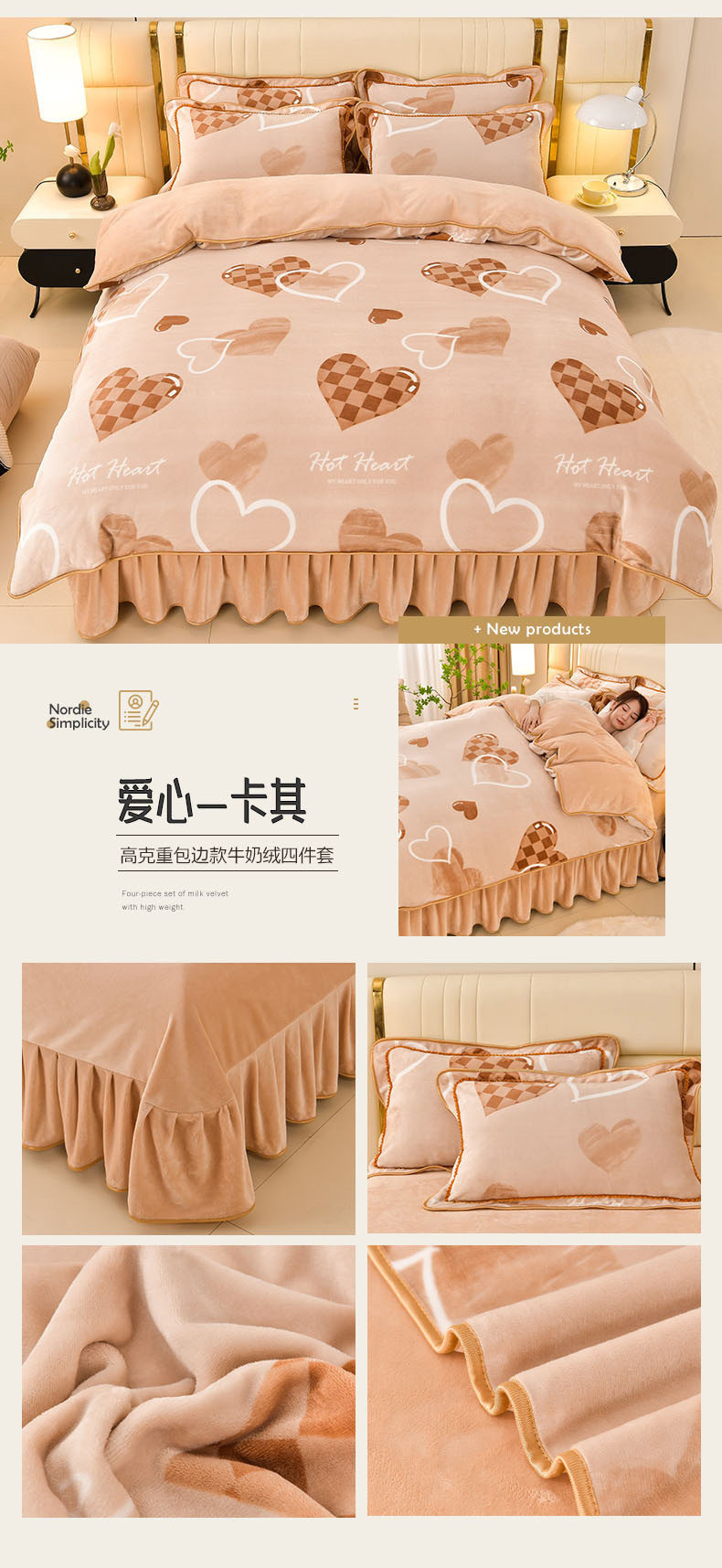 Winter Thickeneded Milk Velvet Four-Piece Bed Skirt Style Warm Quilt Cover Bed Sheets Double-Sided Velvet Three-Piece Set Fleece-Lined Four-Piece Set