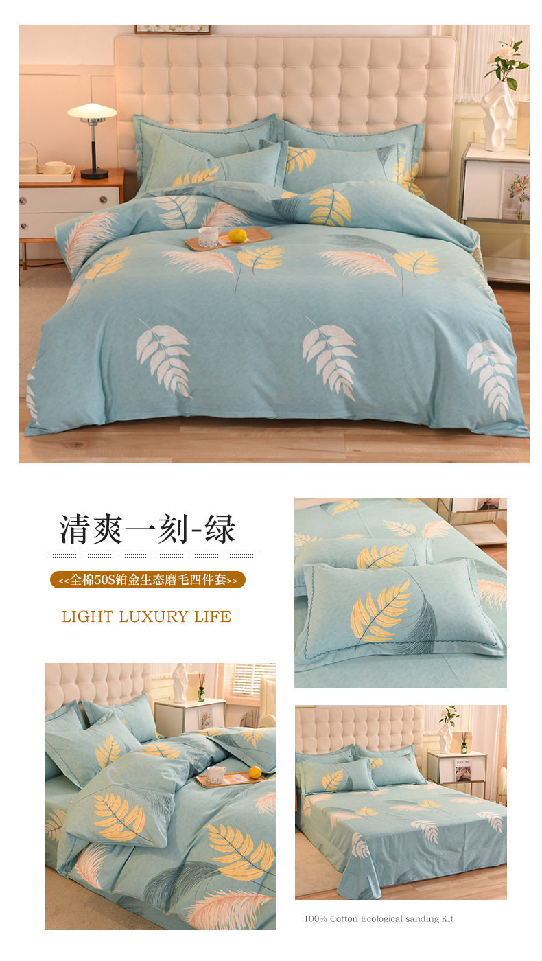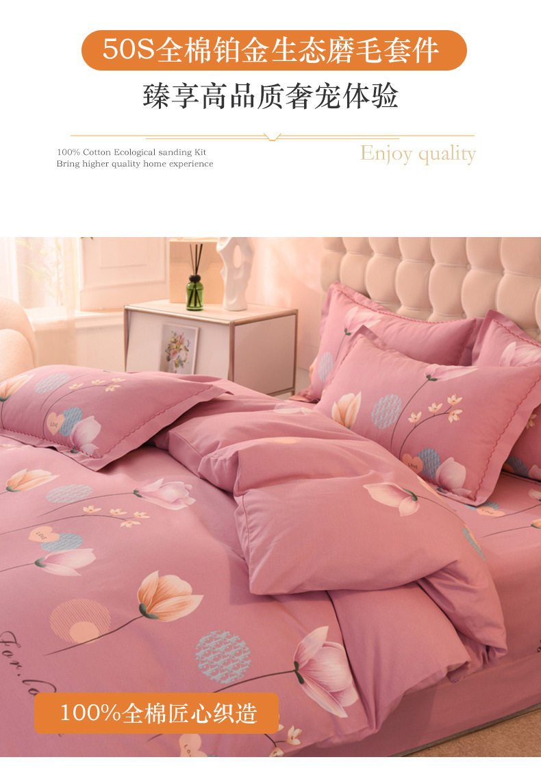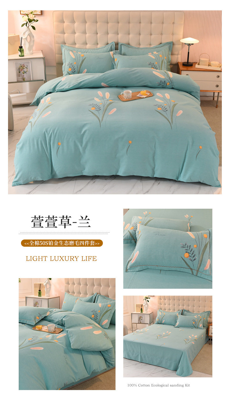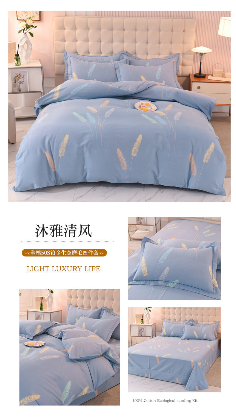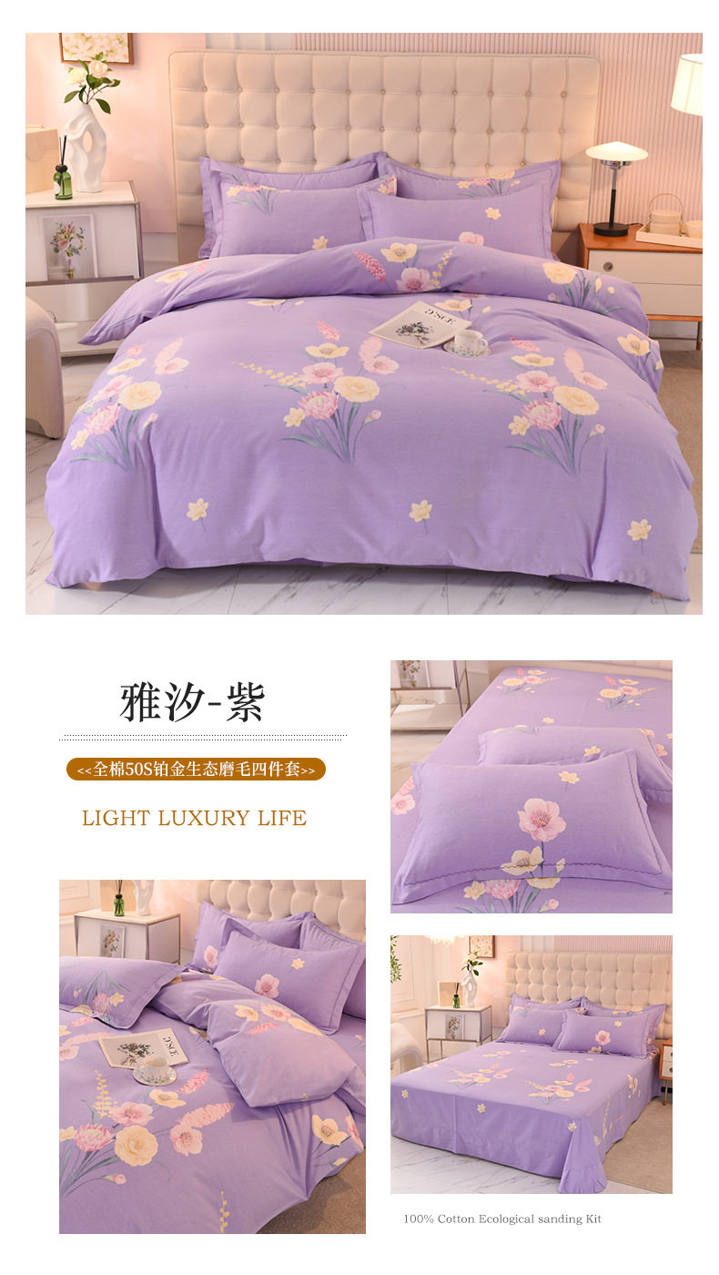 50-Count Pure Cotton Four-Piece Set, Skin-Friendly Brushed Quilt Cover, Soft, Non-Fading, Non-Pilling, Pure Color Bed Bed Sheets Style Set
