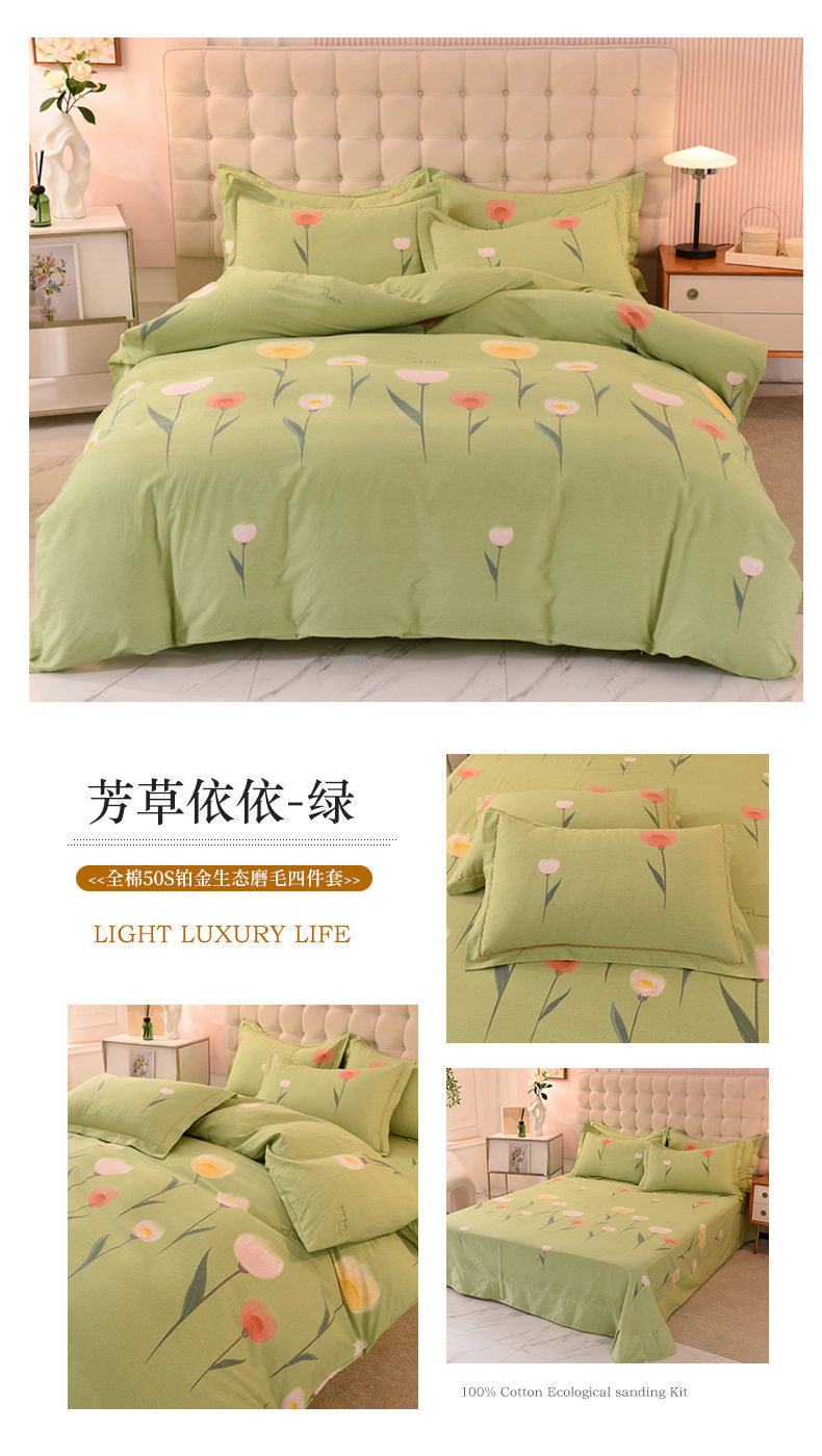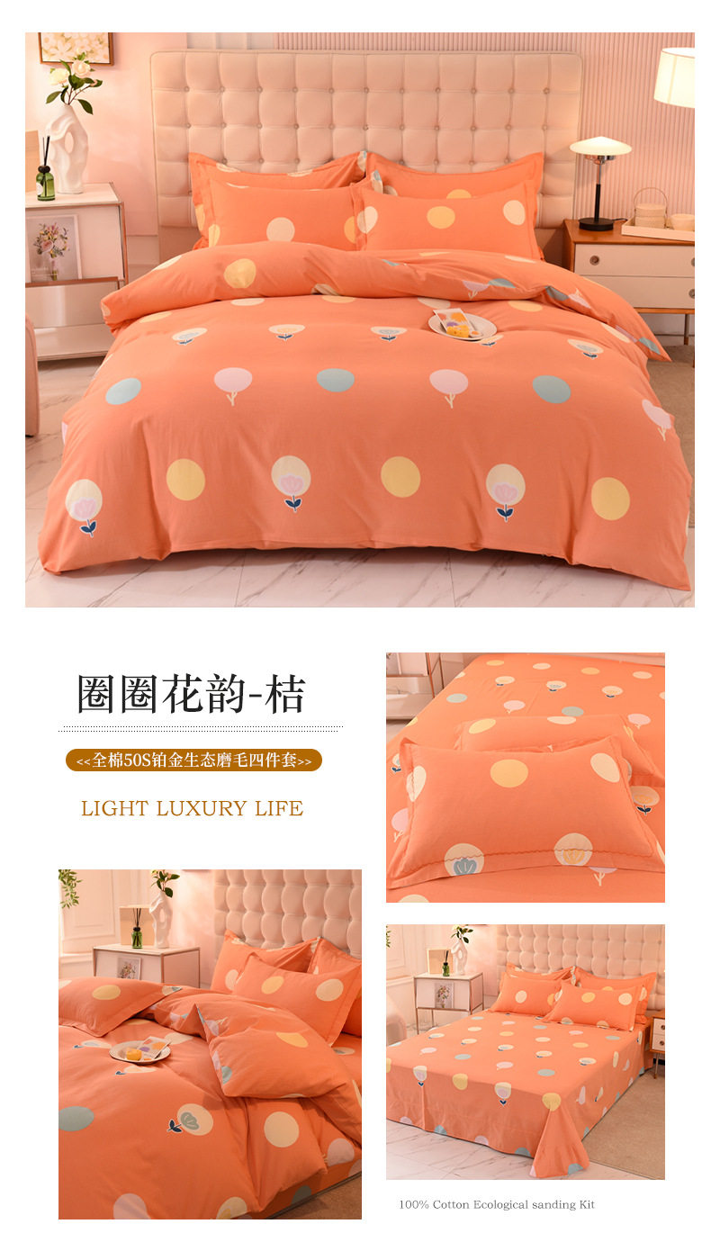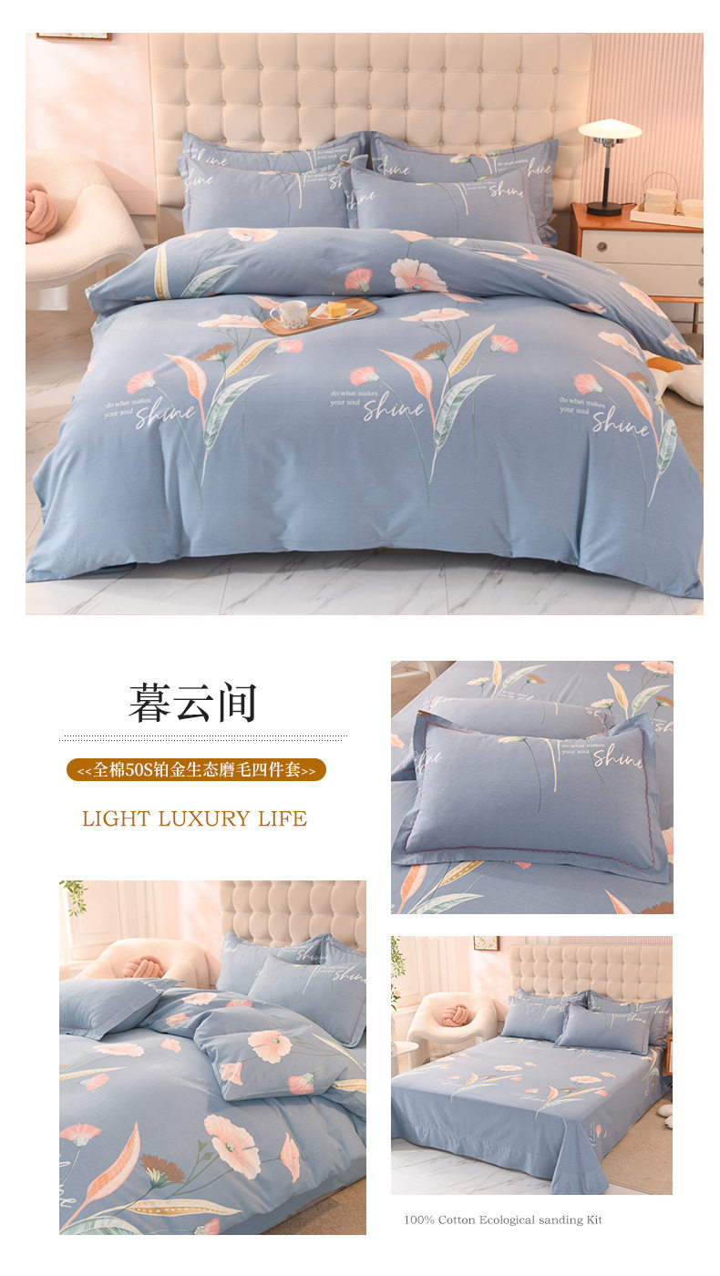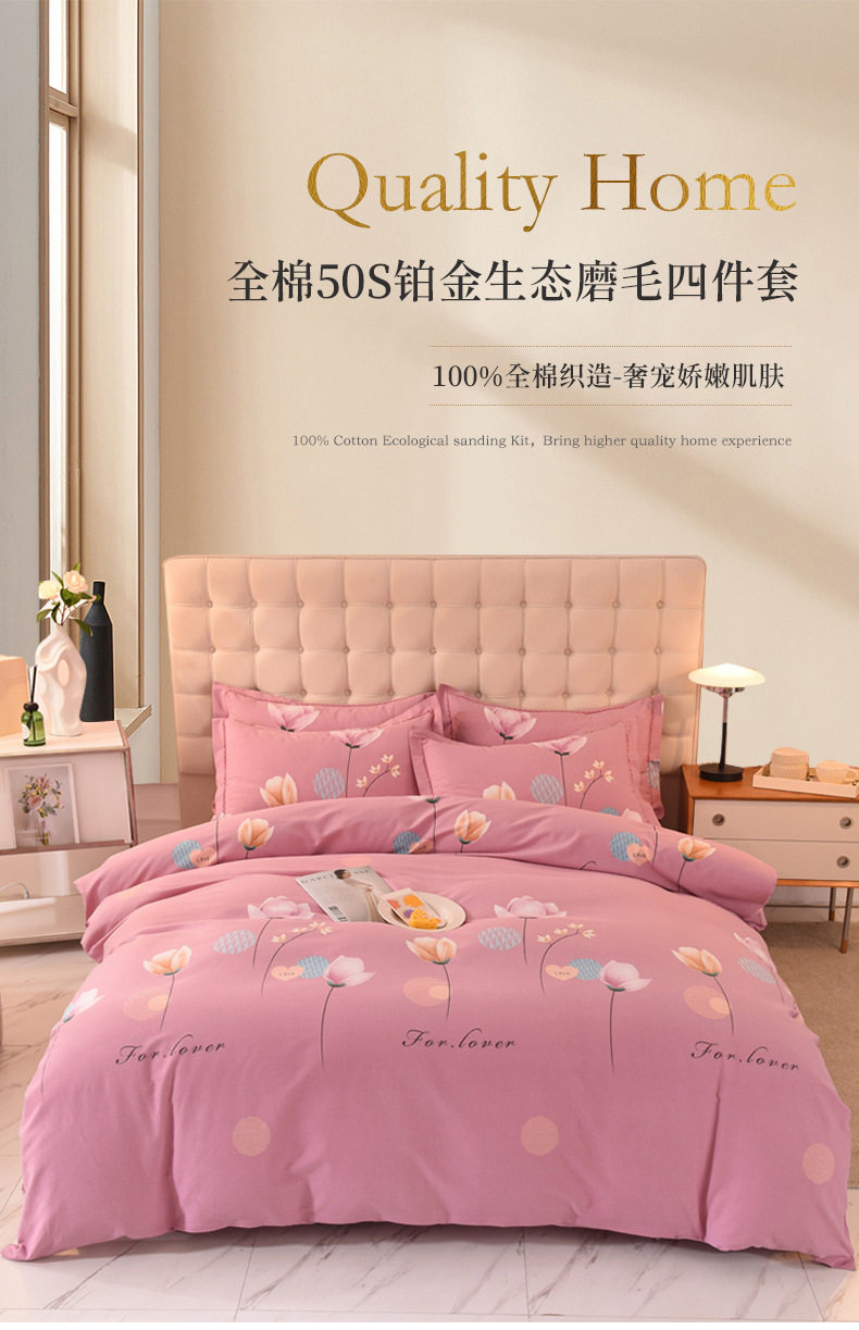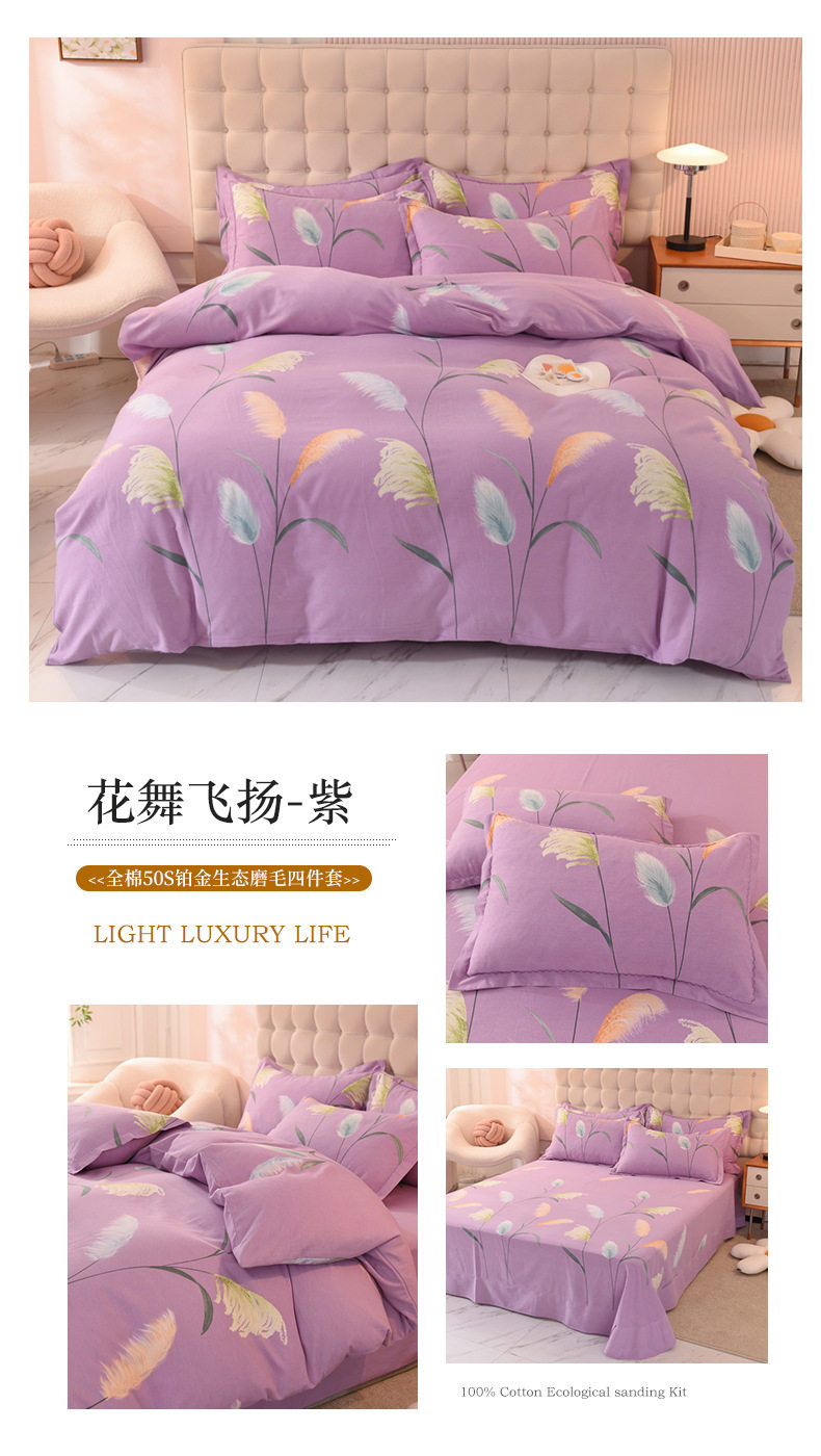 50-Count Pure Cotton Four-Piece Set, Skin-Friendly Brushed Quilt Cover, Soft, Non-Fading, Non-Pilling, Pure Color Bed Bed Sheets Style Set