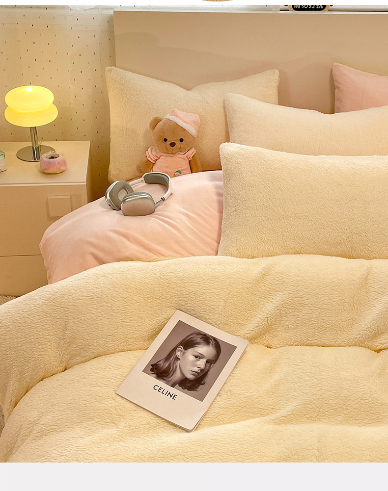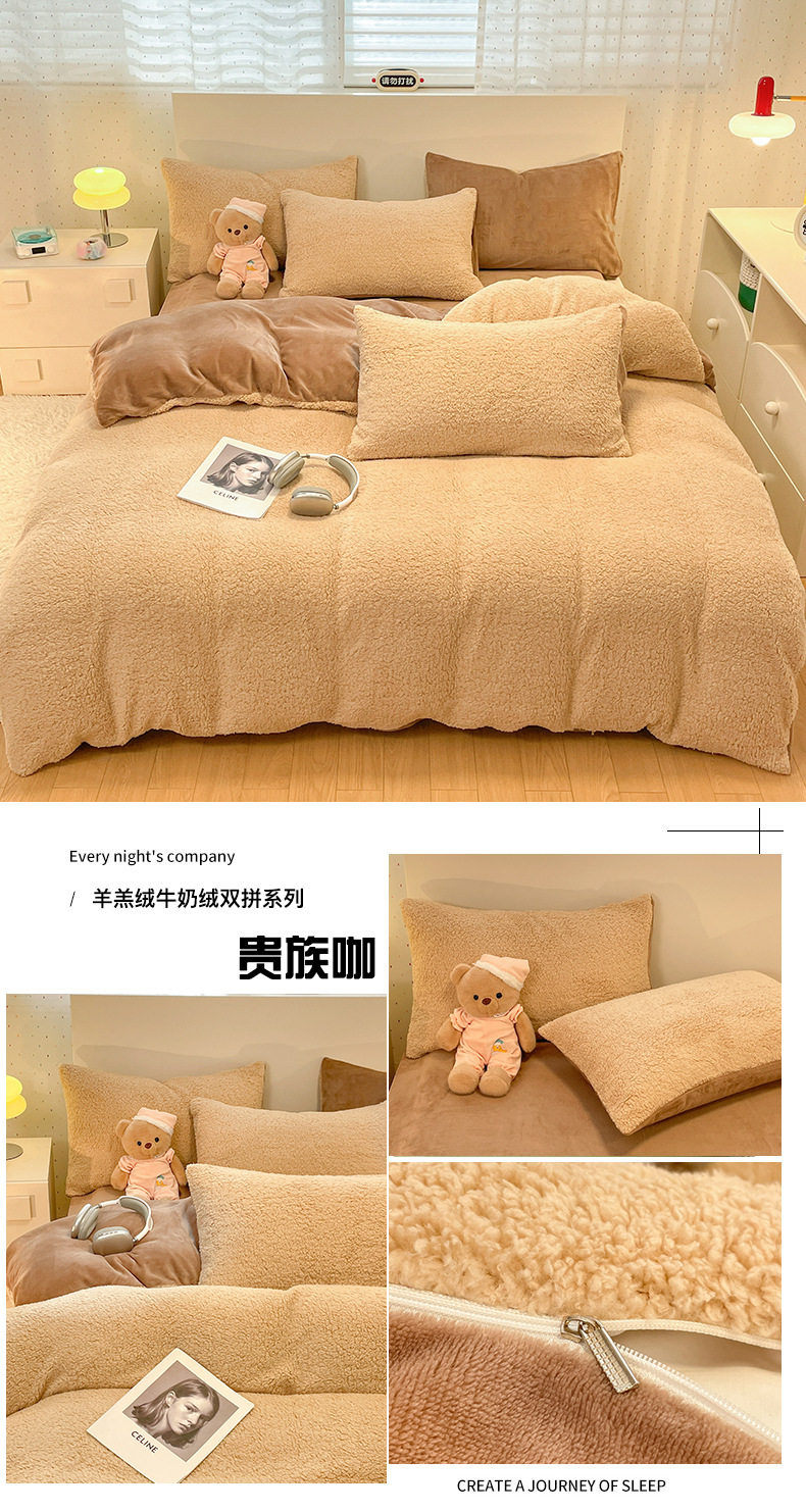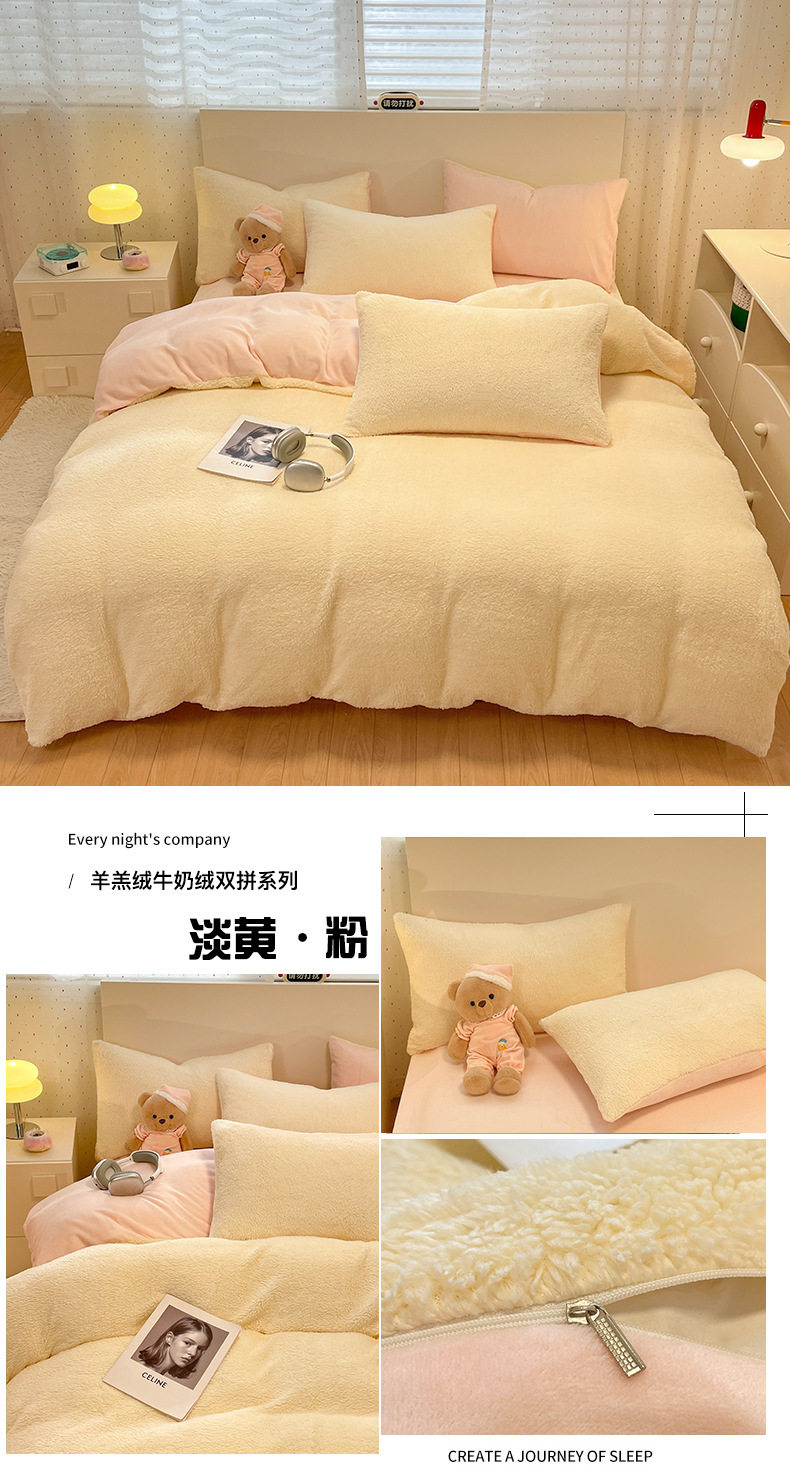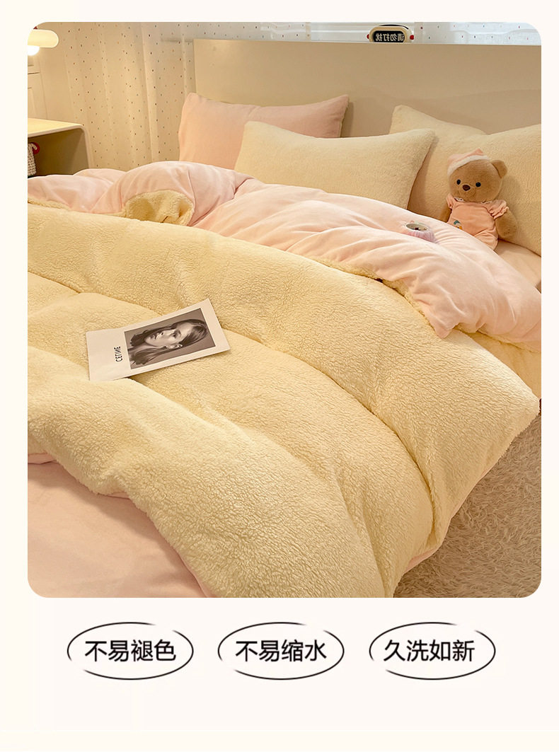 2025 New Lamb Velvet Milk Velvet Double Three or Four Piece Set Winter Thickeneded Warm Pure Color Bed Bed Sheets Quilt Cover