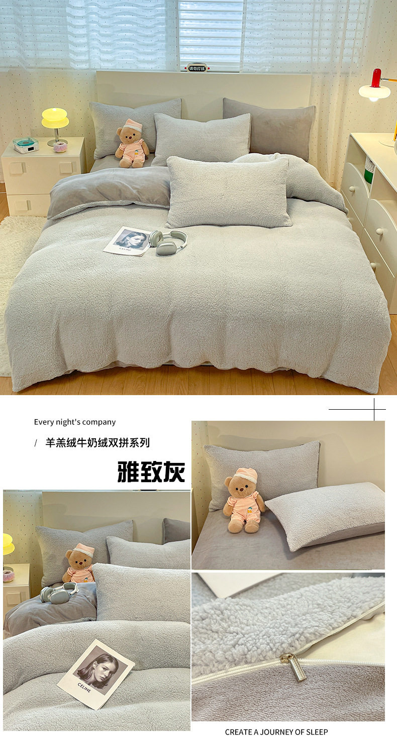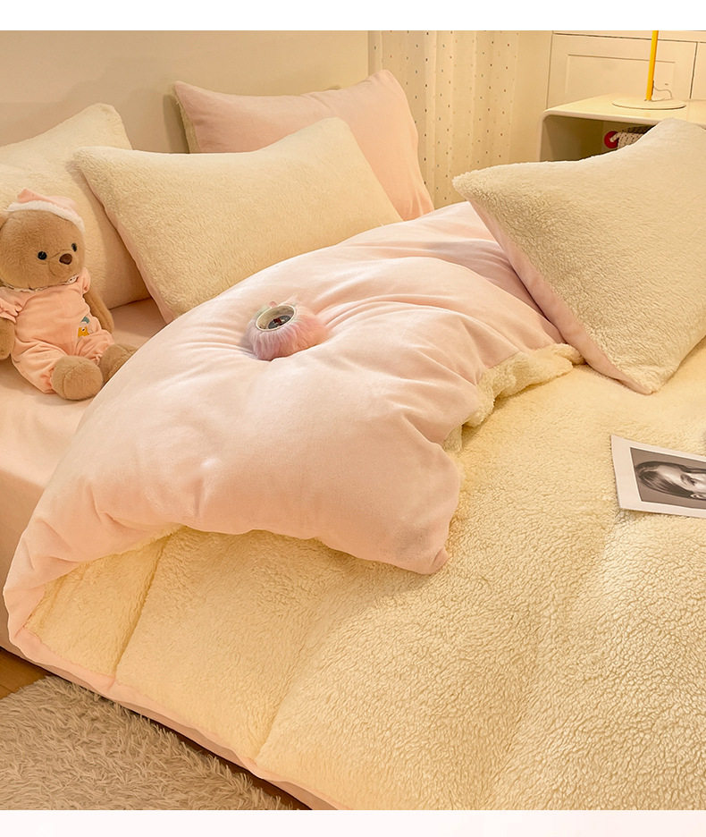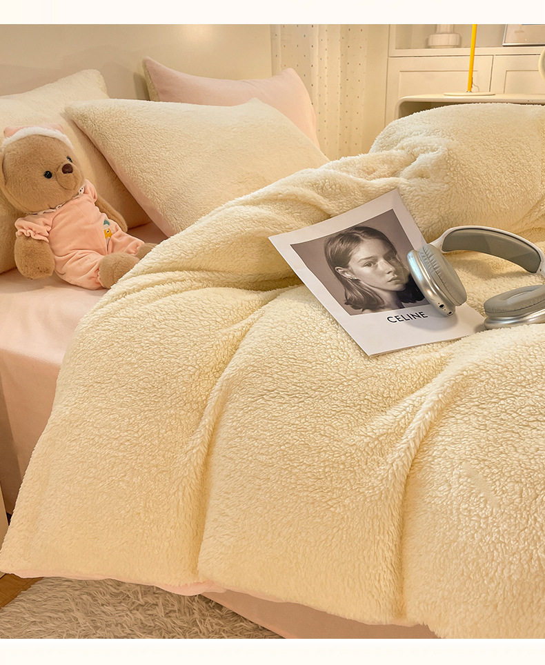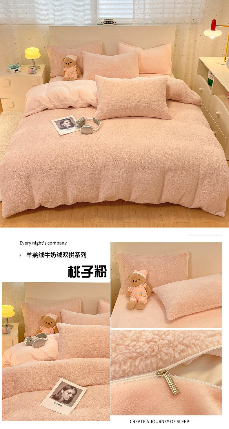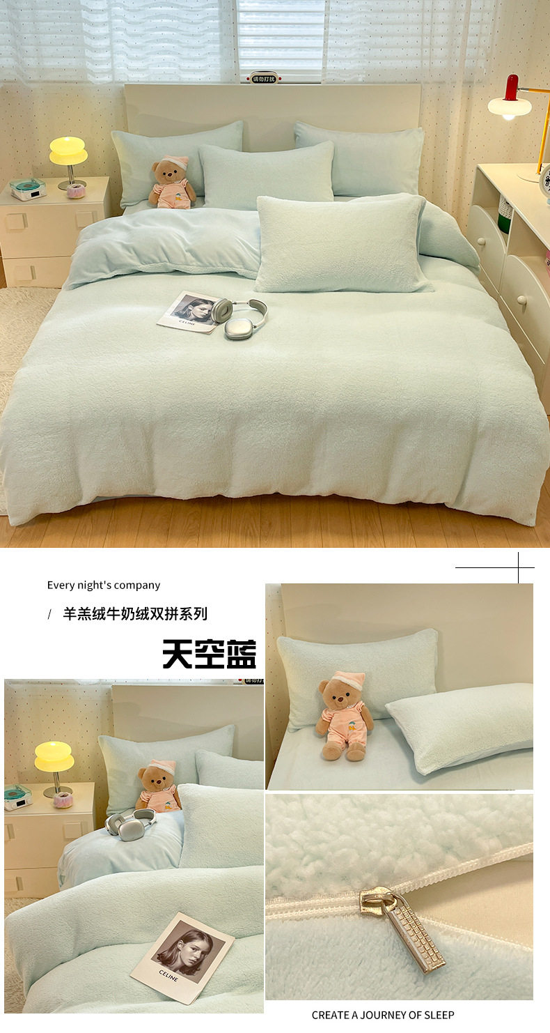 2025 New Lamb Velvet Milk Velvet Double Three or Four Piece Set Winter Thickeneded Warm Pure Color Bed Bed Sheets Quilt Cover