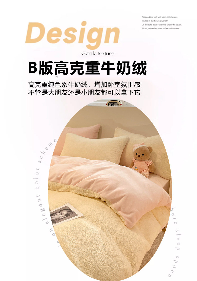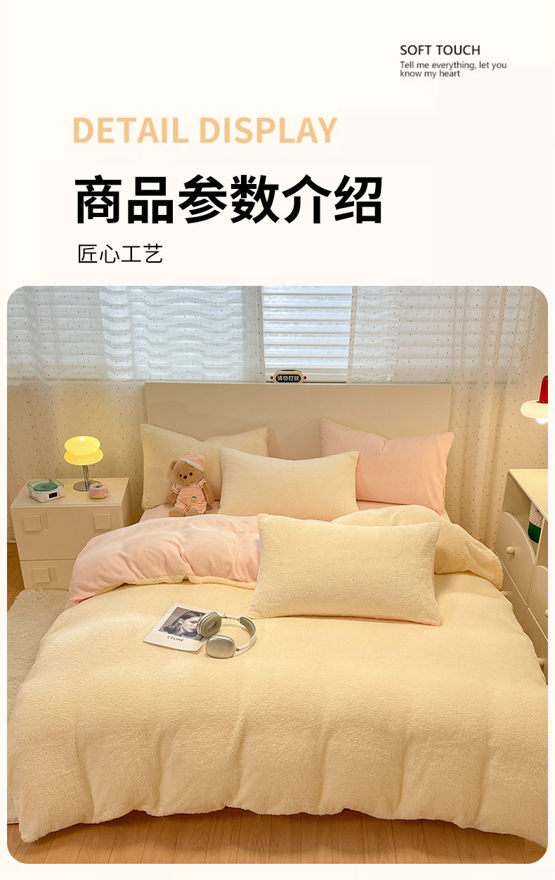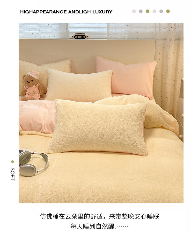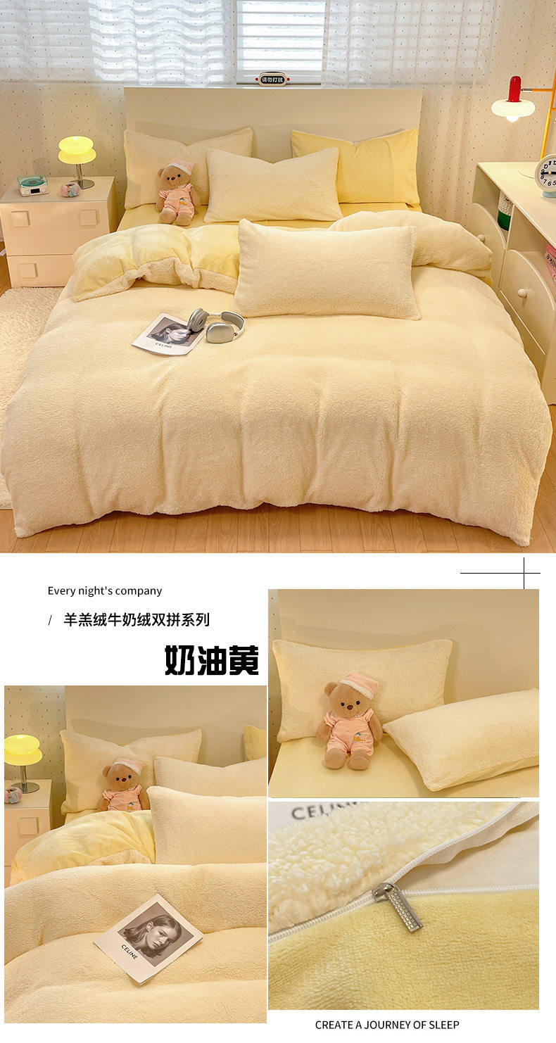 2025 New Lamb Velvet Milk Velvet Double Three or Four Piece Set Winter Thickeneded Warm Pure Color Bed Bed Sheets Quilt Cover