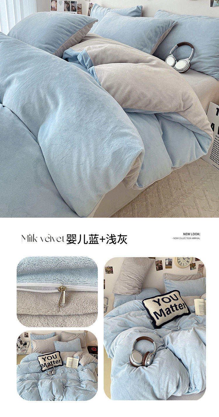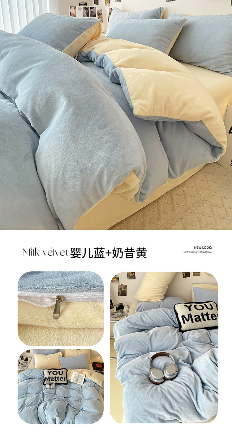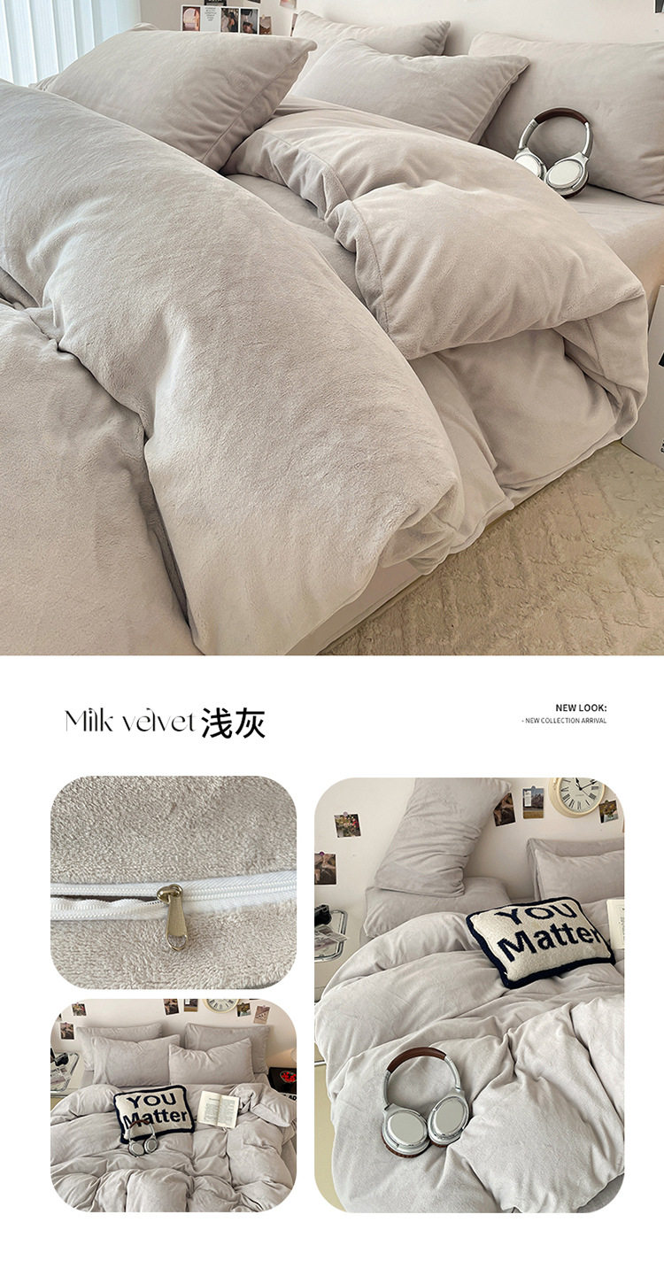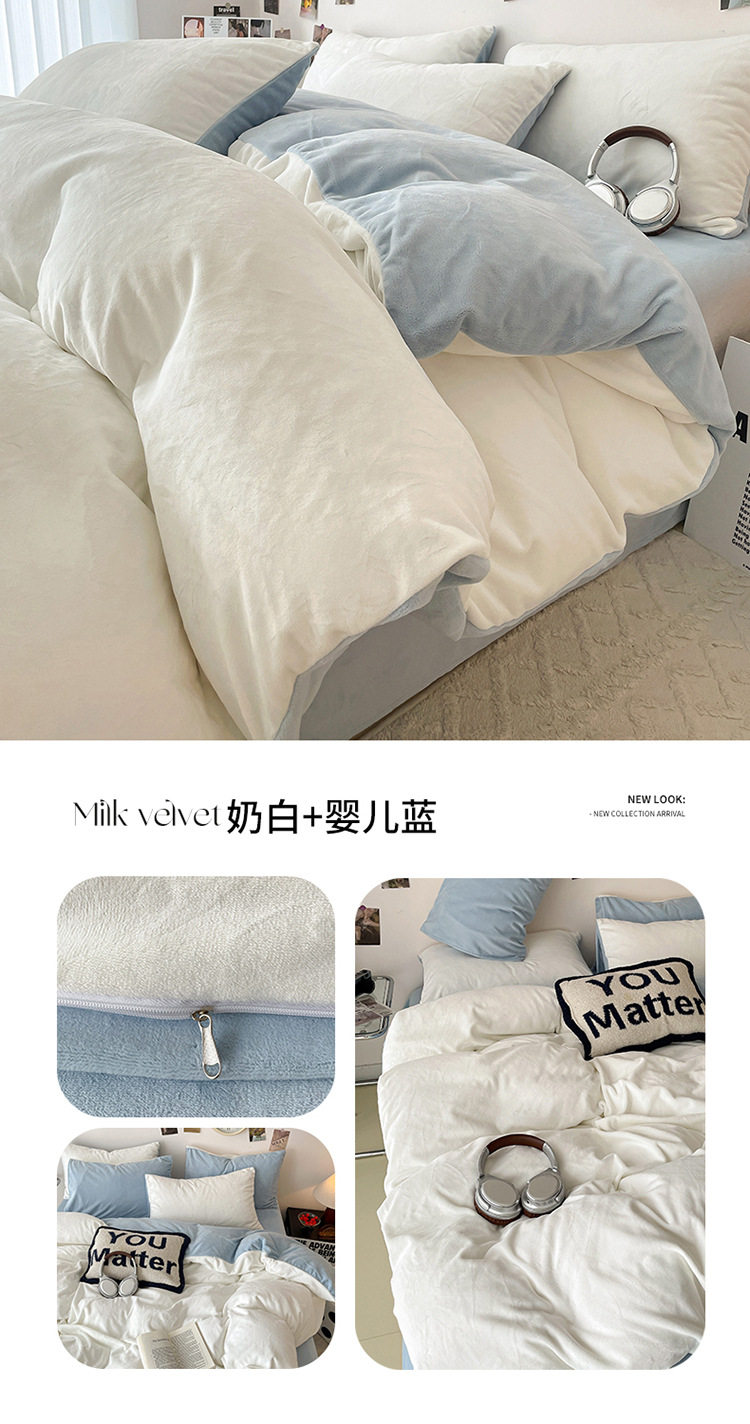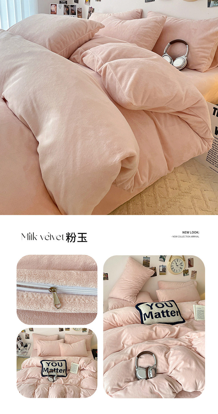 5 New Milk Velvet Four-Piece Winter Thickeneded Coral Flannel Bed Bed Sheets Quilt Cover Bed Three-Piece Fitted Bed Sheets Set 1.8