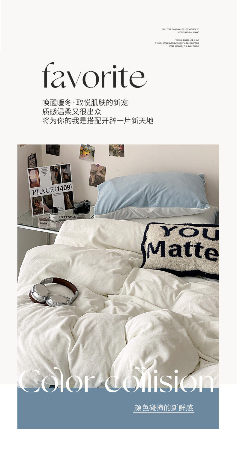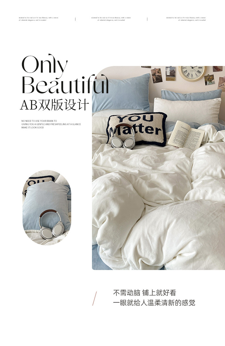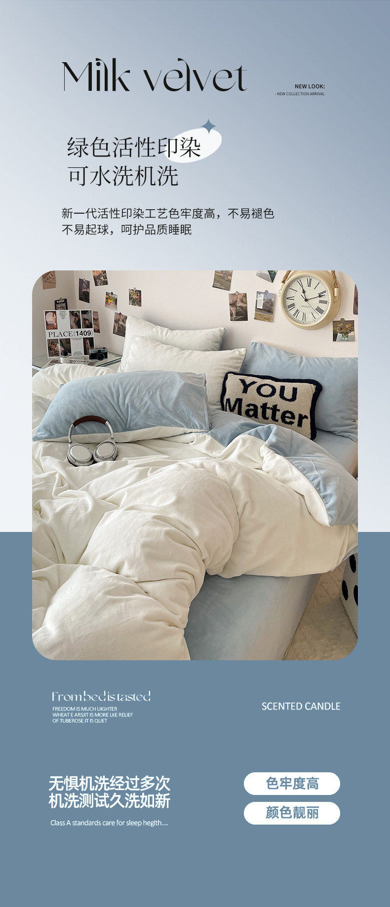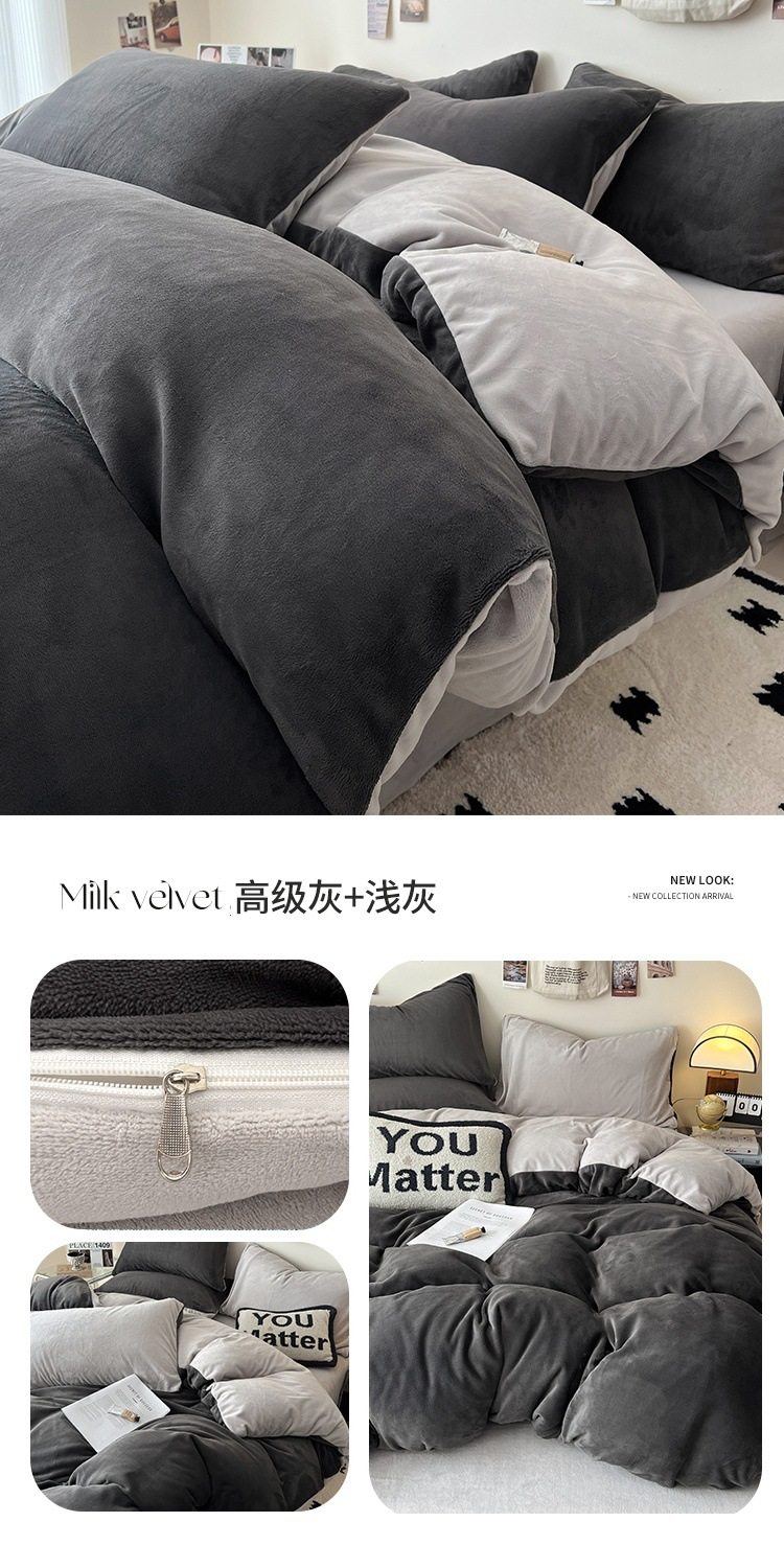 5 New Milk Velvet Four-Piece Winter Thickeneded Coral Flannel Bed Bed Sheets Quilt Cover Bed Three-Piece Fitted Bed Sheets Set 1.8