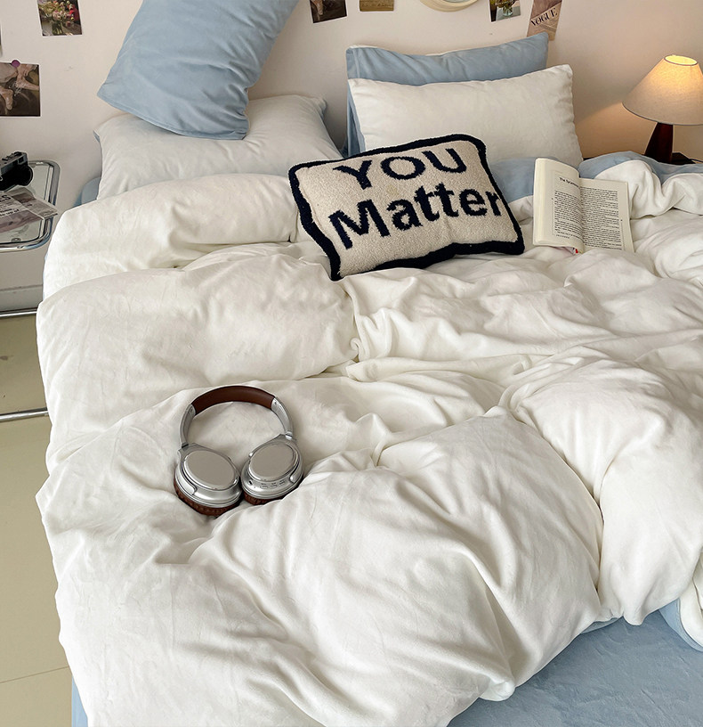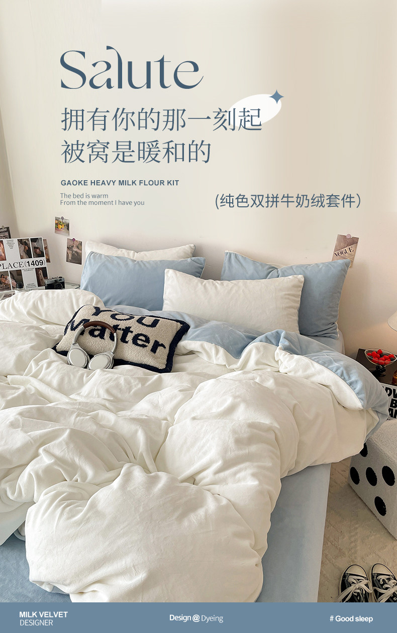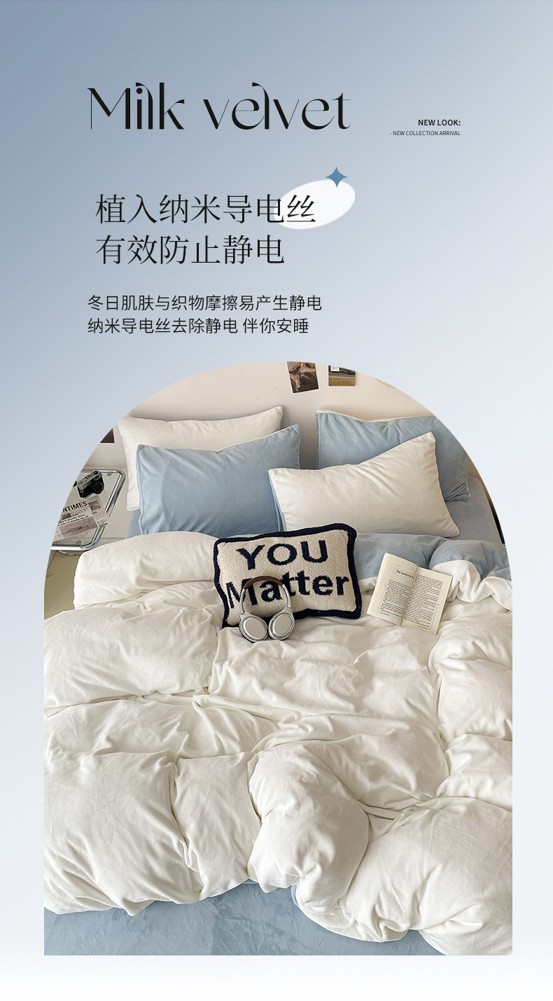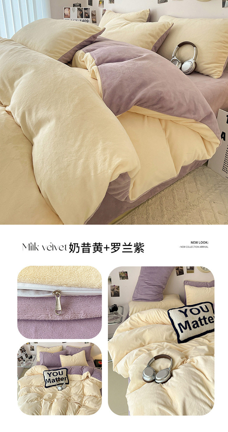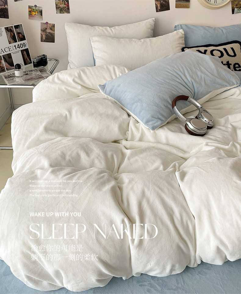 5 New Milk Velvet Four-Piece Winter Thickeneded Coral Flannel Bed Bed Sheets Quilt Cover Bed Three-Piece Fitted Bed Sheets Set 1.8