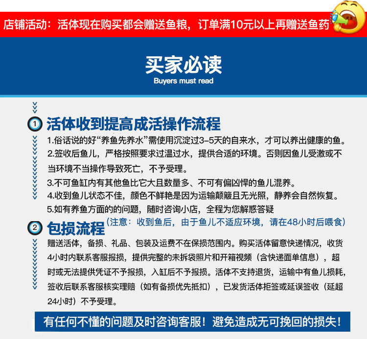 | Specifications | Today’s special offer: 5 random peacocks in total. buy 4 and get 1 free as a spare. buy 2 pieces 10% off,Premium peacocks are randomly offered. 10 pieces in total. buy 8 pieces and get 2 pieces as spares. buy 2 pieces 10% off,Premium peacocks are randomly offered for sale. there are 24 items in total. 20 items will give you 4 spares,Premium peacocks are randomly offered for sale. a total of 36 pieces. 30 pieces will give you 6 spare parts,Premium peacocks are randomly offered for sale. a total of 48 pieces are available for 40 pieces and 8 spares are included,Premium peacocks are randomly offered for sale. a total of 60 pieces. 50 pieces will give you 10 pieces as spare parts,[profit impulse] peacock value package 1, 8 pieces in total [3-4cm],[profit impulse] peacock value package 2, 8 pieces in total [3-4cm],[profit impulse] peacock value package 3, 8 pieces in total [3-4cm],[store manager recommendation] three guppies gathering on top, 8 pieces in total [3-4cm],[recommended by aquarists for good-looking species] colorful peacock set, 10 pieces in total [3-4cm],Color [mix and match 10 zebras],10 mickey fish, 5 free as spares, 15 in total,Recommended for mixed culture--- rat fish cleaning team cleans algae, moss and absorbs residue,White, 5 pairs of high-quality products [sent in pairs],[random pairs of fish] 15 random pairs of guppies will give you 2 pairs as backup, a total of 17 pairs of 34 fish,[discount] peacock value package a, 8 pieces in total, 3 pairs, get 1 pair free [3-4cm],[discount] peacock value package b, 8 pieces in total, 3 pairs, get 1 pair free [3-4cm],[discount] peacock value package c, 8 pieces in total, 3 pairs, get 1 pair free [3-4cm],【3-4cm】peacock value package d, 8 pieces in total, 3 pairs, get 1 pair as spare,[discount] peacock colorful tail set, 8 pieces in total, 3 pairs, get 1 pair as spare,【3-4cm】peacock value package a+ 16 pieces in total, 6 pairs, get 2 pairs as spare,[3-4cm] peacock value package b+ 16 pieces in total, 6 pairs, get 2 pairs as spare,【3-4cm】peacock value package c+ 16 pieces in total, 6 pairs, get 2 pairs as spare,【3-4cm】peacock value package e, 10 pieces in total, 4 pairs, get 1 pair as spare,【3-4cm】peacock value package f, 10 pieces in total, 4 pairs, get 1 pair as spare,【3-4cm】peacock value package g, 12 pieces in total, 5 pairs, get 1 pair as spare,【3-4cm】peacock value package h, 12 pieces in total, 5 pairs, get 1 pair as spare,【3-4cm】peacock value package j, 16 pieces in total, 6 pairs, get 2 pairs as spare,【3-4cm】peacock value package k, 20 pieces in total, 8 pairs, 2 pairs free for spare,【3-4cm】peacock value package y, 22 pieces in total, 9 pairs, get 2 pairs as spare,【3-4cm】peacock value package i 16 pieces in total, 6 pairs, get 2 pairs as spare,[reproduction recommendation] random female fish, 6 in total, buy 5 and get 1 free as a spare,Single selection: 1 pair of moscow blue + 2 random pieces, 4 pieces in total, 1 pair will give you 2 pieces as spare,Single choice: american all red, buy 1 pair, get 1 pair free as a spare, 4 items in total,Single choice: american all red 2 pairs get 2 pieces, total 6 pieces,Single choice: brazil red 2 pairs will give you 2 spares, a total of 6 pieces,Single choice moscow blue 2 pairs, free 2 spares, 6 pieces in total,Single choice: 2 pairs of yellow tigers will give you 2 spares, a total of 6 pieces,Red lucky head 1 pair,Single choice: 2 pairs of lucky head will give you 2 spares, a total of 6 pieces,Light blue sky blue 2 pairs get 2 spares,Single choice: 2 pairs of yellow dresses, 2 pairs will be given as spares, 6 pieces in total,Deep sea nobles 2 pairs will give you 2 spares, a total of 6 pieces,Single choice: 2 pairs of thai big ears will give you 2 spares, 6 pieces in total,Single choice: 2 pairs of platinum red tail will give you 2 spares, 6 pieces in total,Peacock fish set 1, 6 pieces in total, 3 pairs, 5cm big fish,Species fish: 1 pair of moscow blue species fish (5cm large fish),Species fish: 1 pair of brazilian red species fish (5cm large fish),Species fish yellow dress species fish level 1 pair (5cm big fish),1 pair of breeding fish orchid grass tail breeding fish (5cm large fish),Fish species platinum dress fish species 1 pair (5cm big fish),Species fish sky blue species fish level 1 pair (5cm big fish),Large zebra, buy 4 and get 1 free, total 5,Large zebra, buy 10 and get 5 free, total 15,[recommendations from aquarists for good-looking species] peacock rare and colorful set, 10 pieces in total [3-4cm],Little yellow tiger 5 get 1 free, a total of 6 items,Little yellow tiger 8 get 2 free, total 10 items,Our store offers free shipping for orders over 58 sf express,Sky blue sky blue 1 pair,Single selection japanese blue 2 pairs get 2 spares, 6 pieces in total |