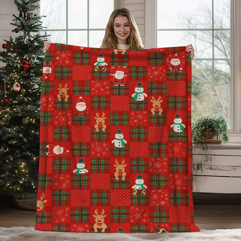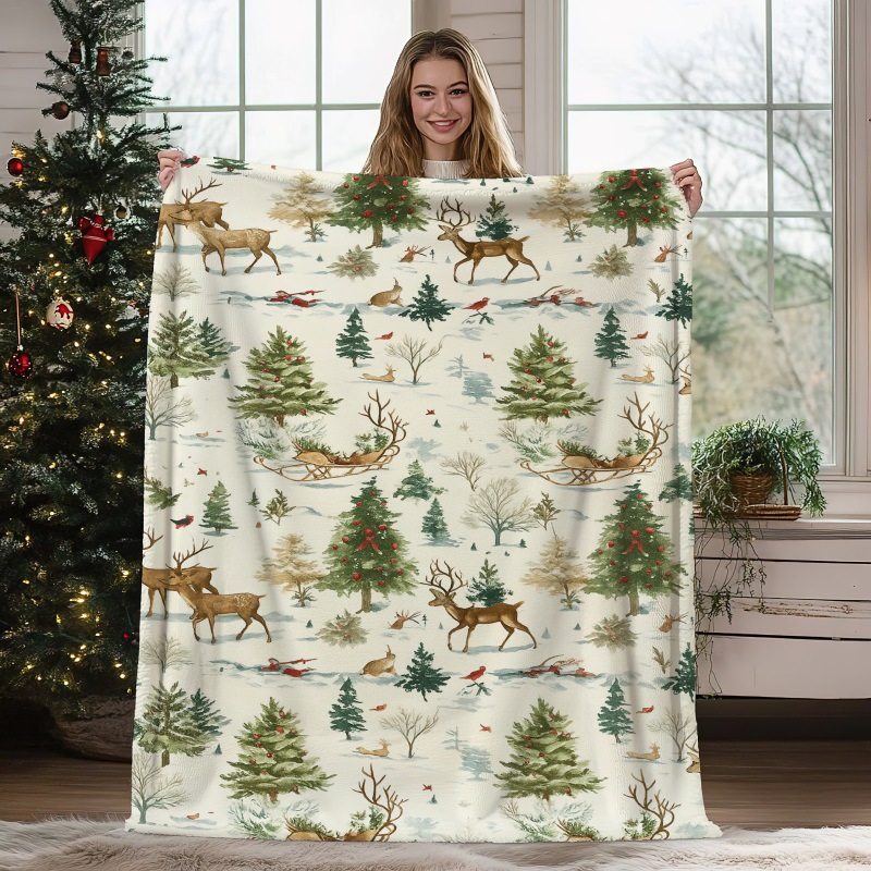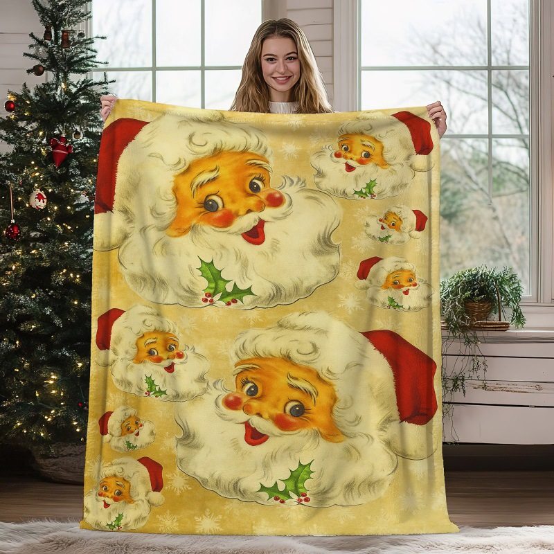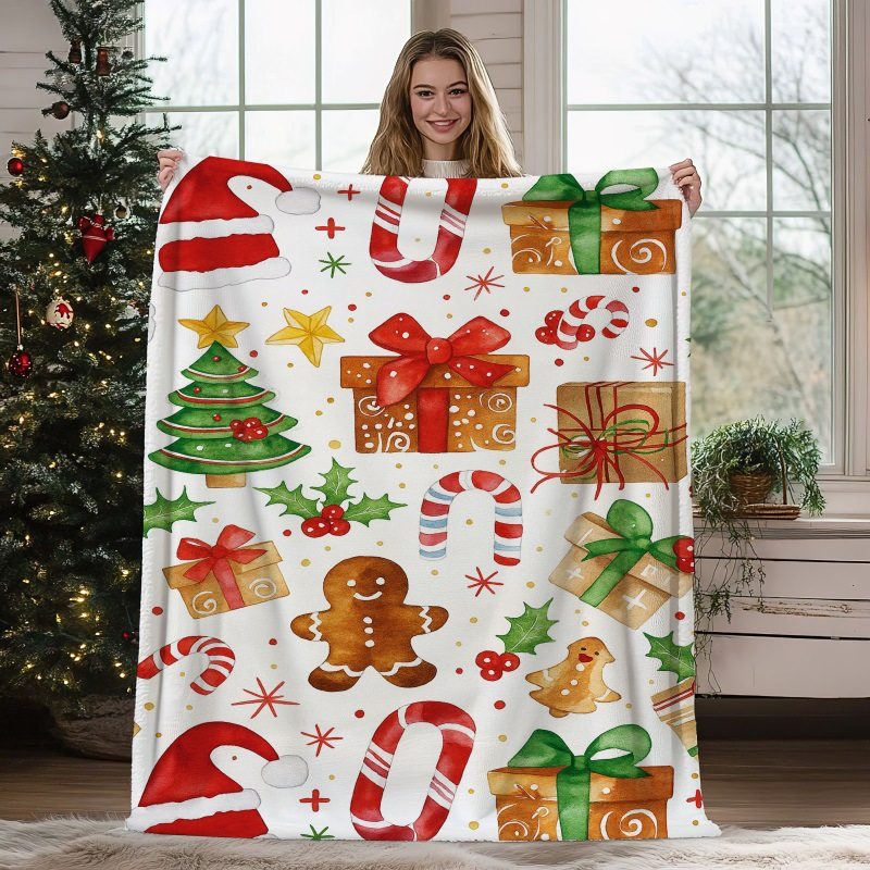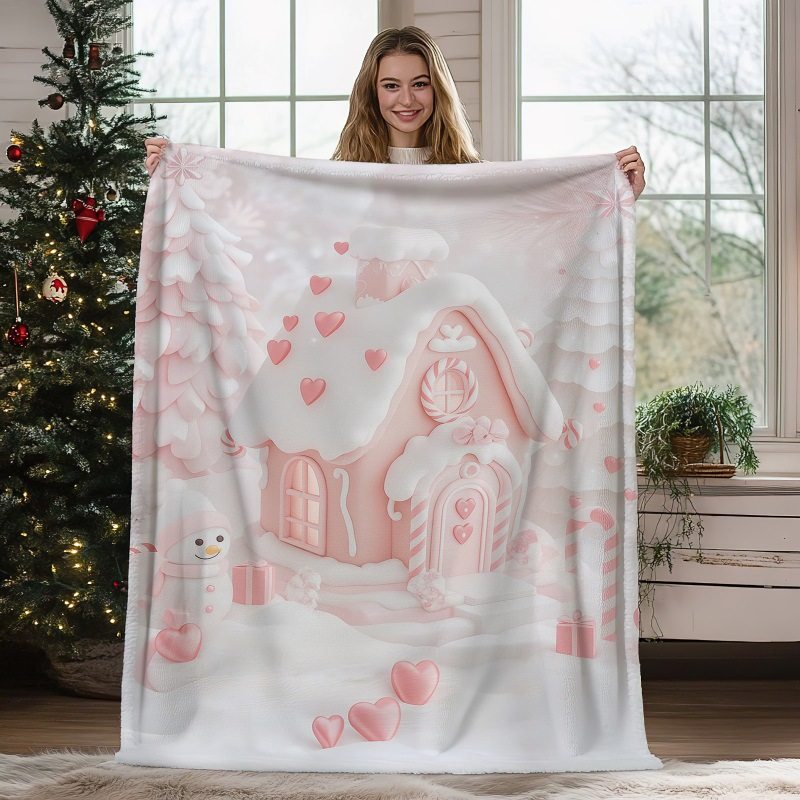 2025 New Amazon Christmas Blanket Cross-Border Santa Claus Christmas Tree Flannel Blanket Pink Throw Blanket