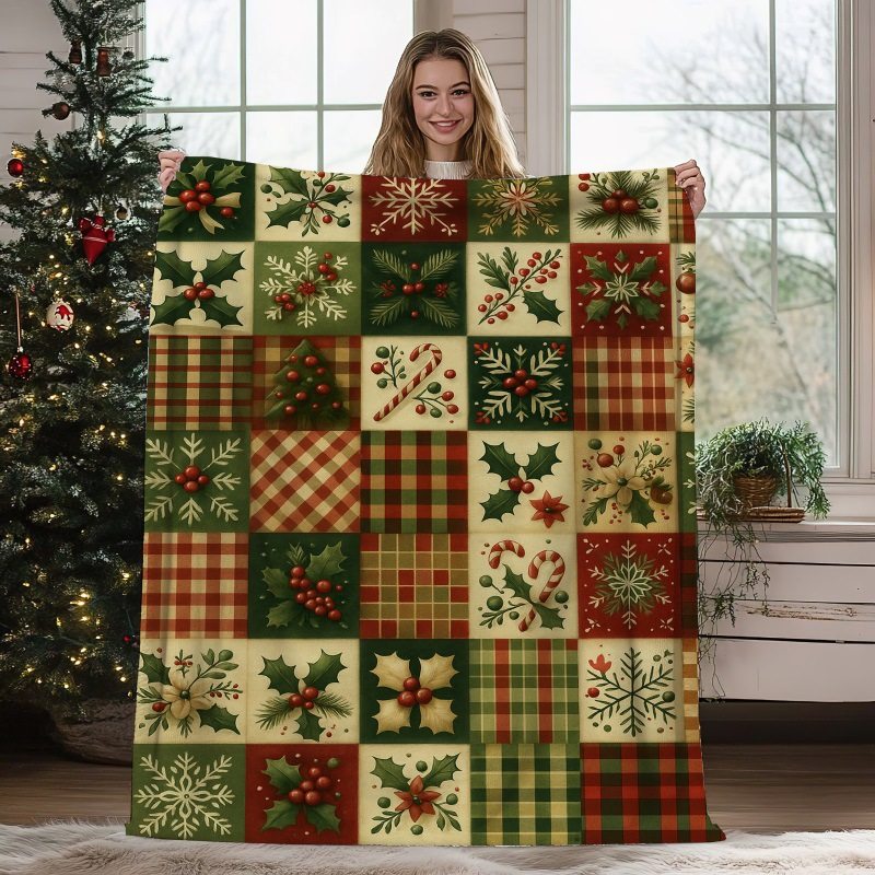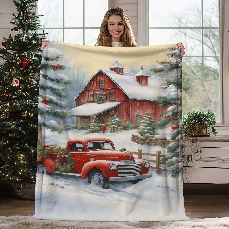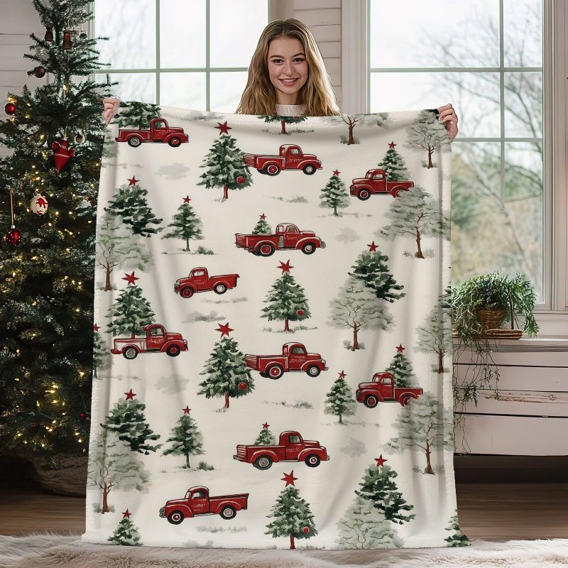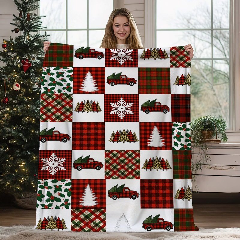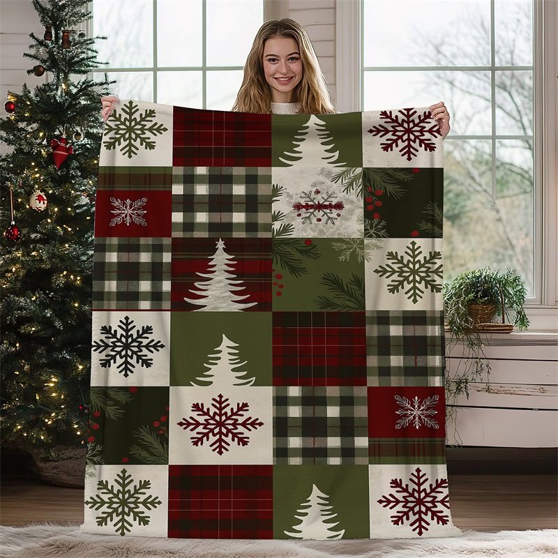2025 New Amazon Christmas Blanket Cross-Border Santa Claus Christmas Tree Flannel Blanket Pink Throw Blanket