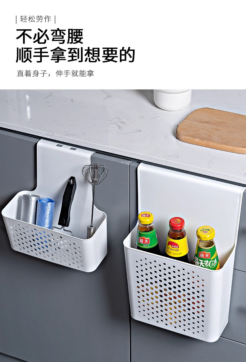 Wall-Mounted Storage Box Kitchen Cabinet Door Inner Shelf Hook Cling Film Cabinet Door Hanging Basket Organizer Storage Rack