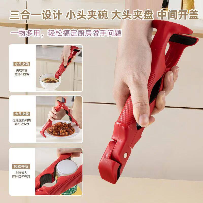 Three-In-One Anti-Scalding Bowl Clamp Kitchen Silicone Plate Clamp Bowl Dual-Purpose Anti-Slip Bowl Clamp Household Creative Plate Lifter